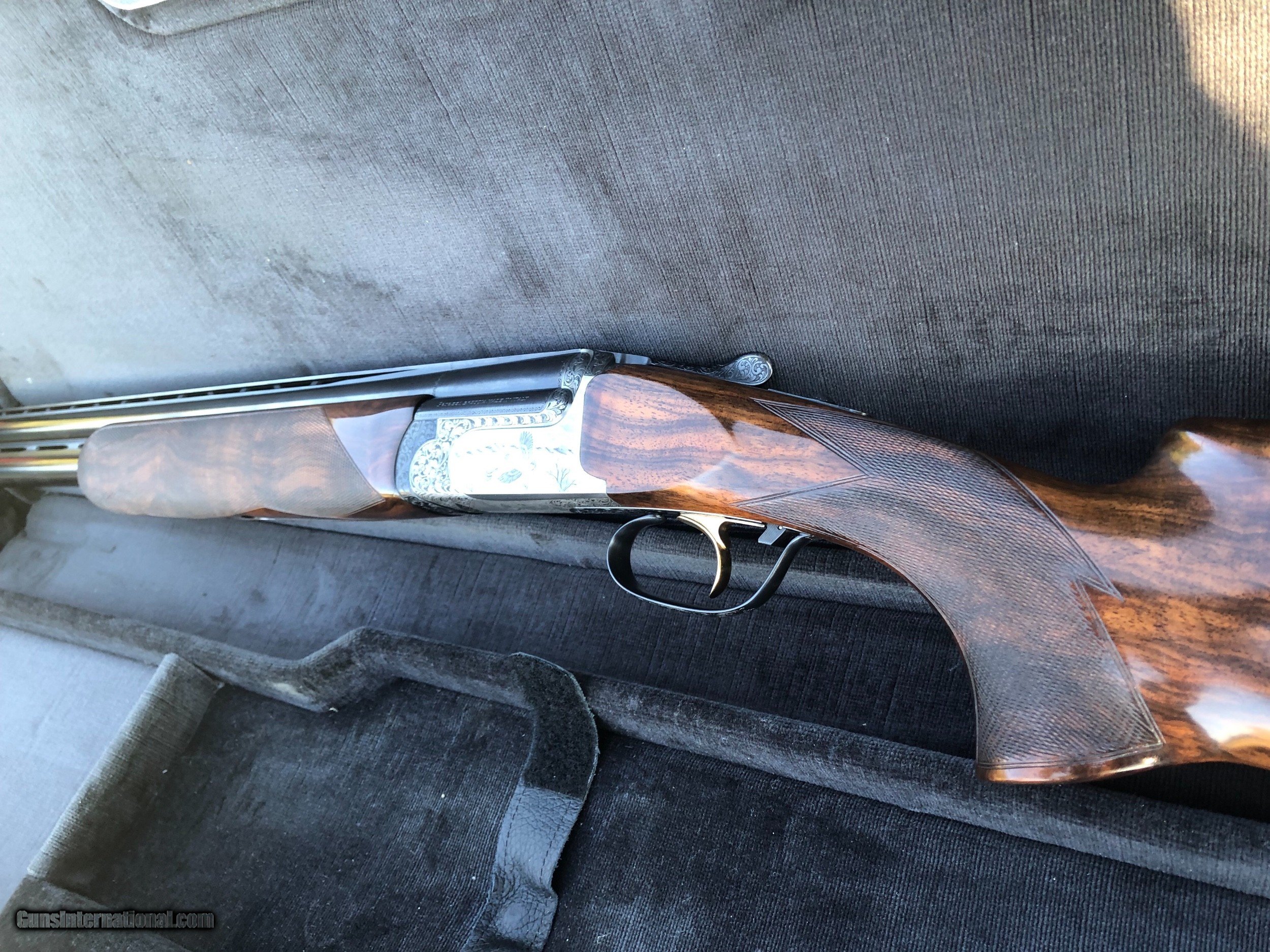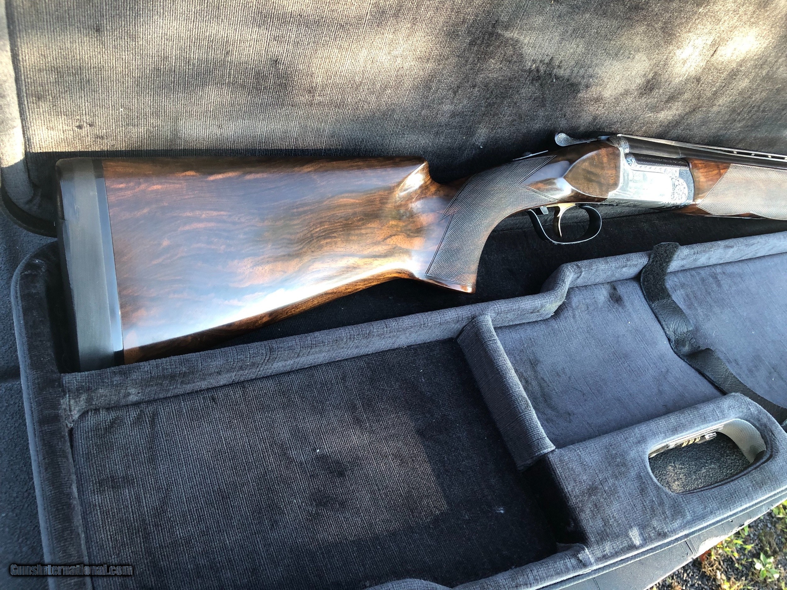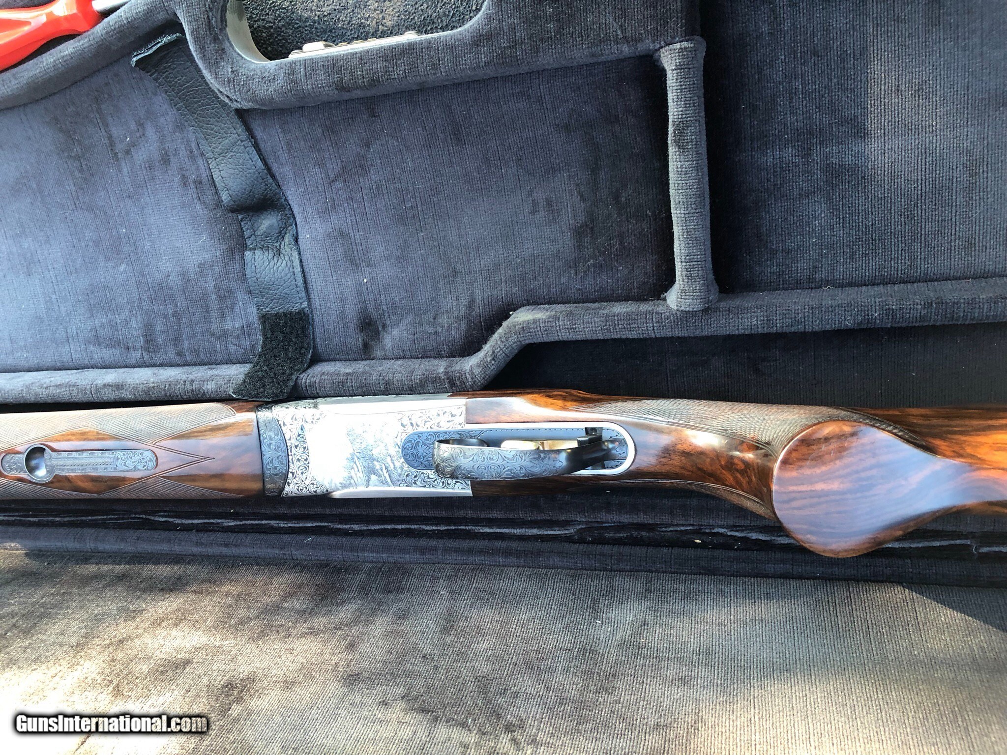 Description: This is a gorgeous late 90's SC3 Sporter that rings the bell in all areas. A Badalini game scene engraved gun with 29 1/2" 12 gauge barrels that are factory choked and include a boatload of extended chokes. It features the popular tramline vent rib and selective detachable trigger group. All numbers match! The wood is extra nice and the forend is a non-schnabel that is fully checkered-a nice bonus. The stock dimensions are 14 3/4 x 1 3/8 x 2 1/8 with a small right hand palm swell. Included with this gun are a set of 20ga SC3 barrels that are 31 1/2 inches long and are factory screw choked. This set is perfectly fitted and the serial number is about 1800 numbers higher. This barrel set also has the tramline rib. The gun weighs 8-7 with the 12 ga Barrels and gives you great versatility with the 12/20 gauge combination. Use buy now and I'll insure and ship it in the lower 48. A lotta gun for a very reasonable price! SOLD |