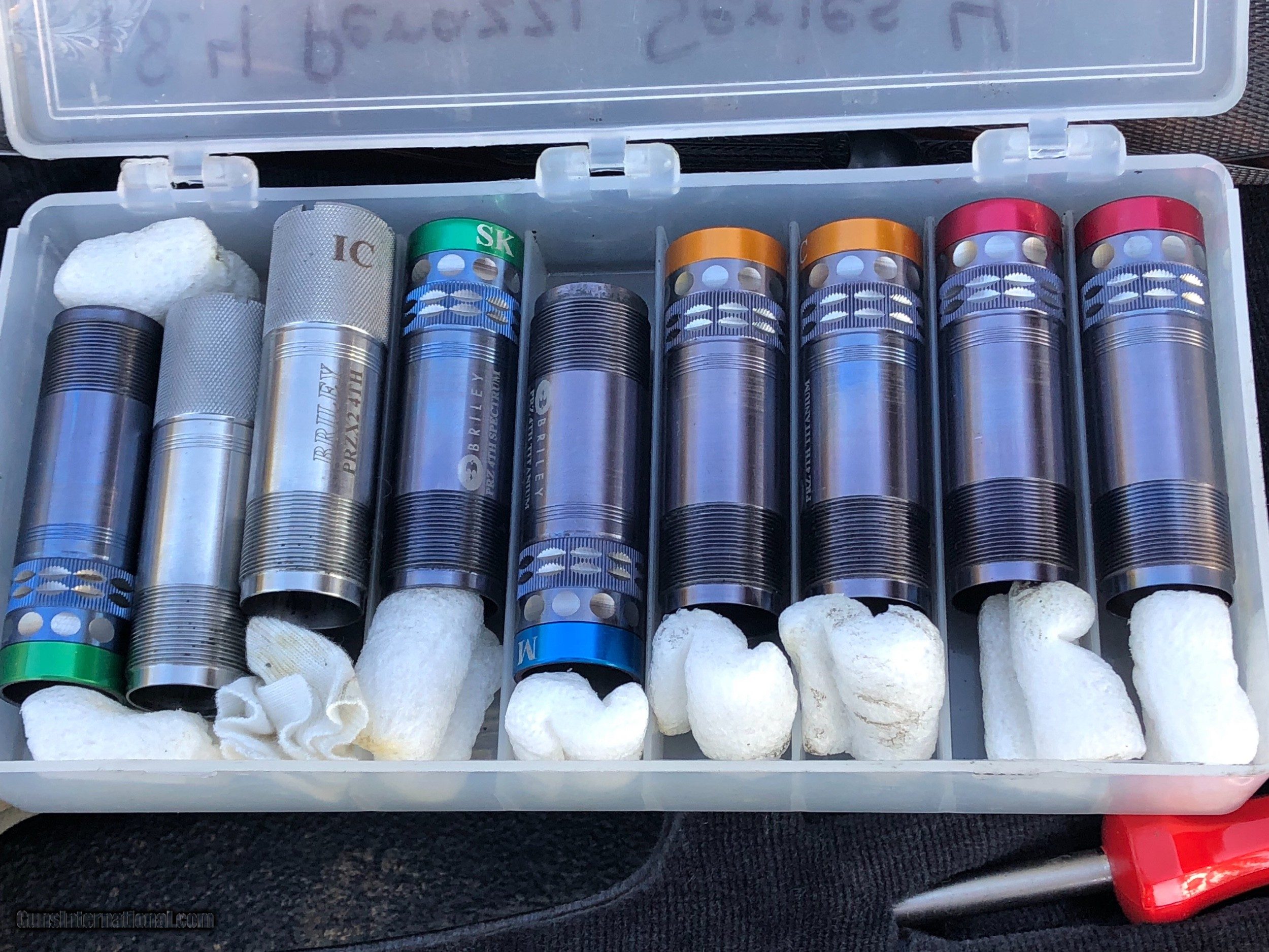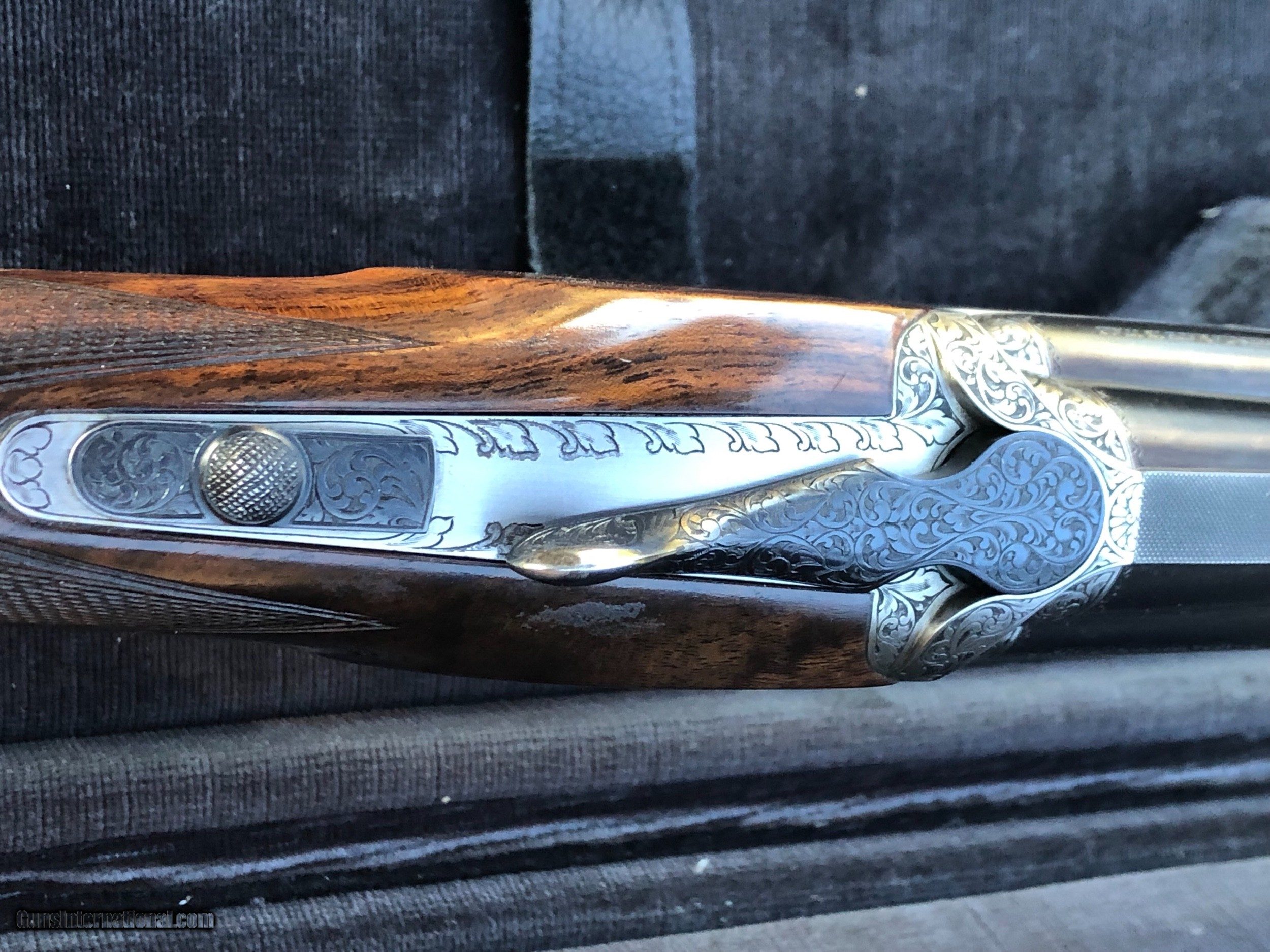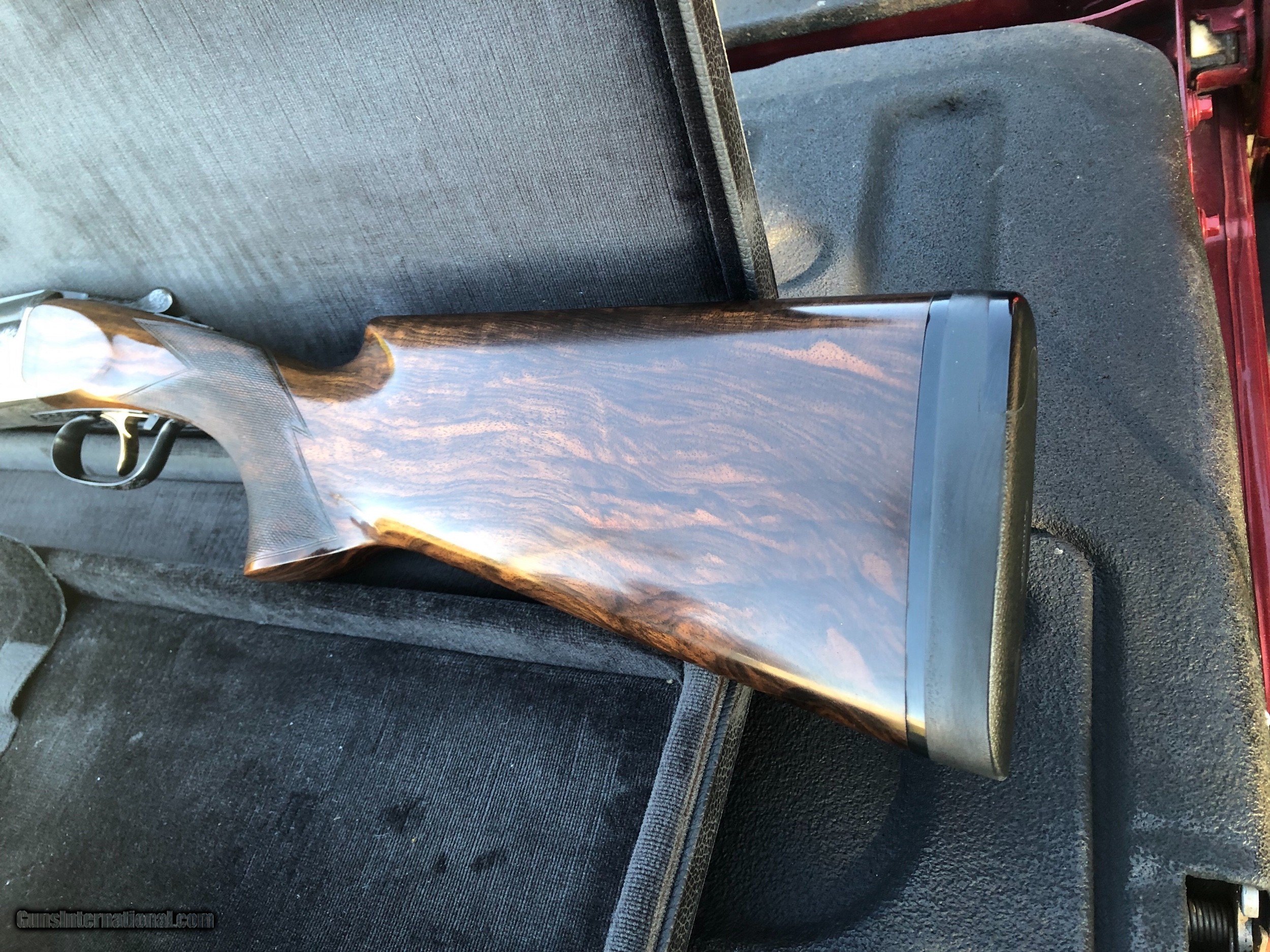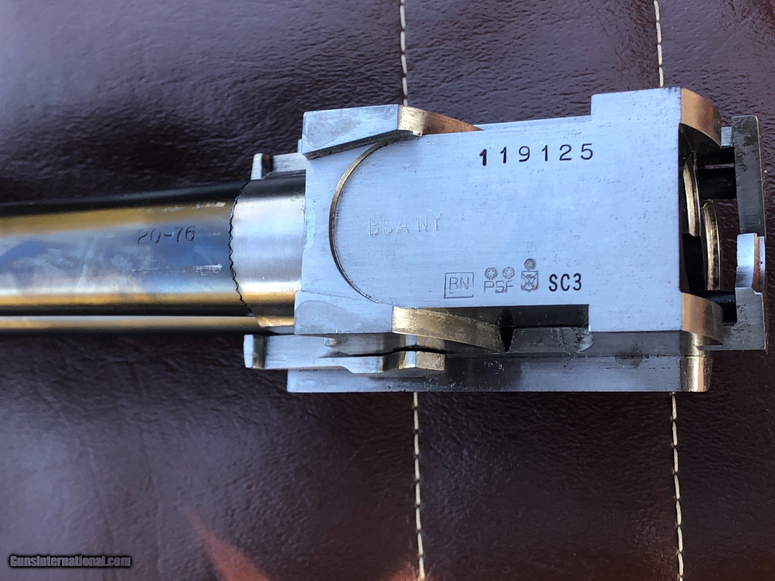 Description: This is a gorgeous late 90's SC3 Sporter that rings the bell in all areas. A Badalini game scene engraved gun with 29 1/2" 12 gauge barrels that are factory choked and include a boatload of extended chokes. It features the popular tramline vent rib and selective detachable trigger group. All numbers match! The wood is extra nice and the forend is a non-schnabel that is fully checkered-a nice bonus. The stock dimensions are 14 3/4 x 1 3/8 x 2 1/8 with a small right hand palm swell. Included with this gun are a set of 20ga SC3 barrels that are 31 1/2 inches long and are factory screw choked. This set is perfectly fitted and the serial number is about 1800 numbers higher. This barrel set also has the tramline rib. The gun weighs 8-7 with the 12 ga Barrels and gives you great versatility with the 12/20 gauge combination. Use buy now and I'll insure and ship it in the lower 48. A lotta gun for a very reasonable price! SOLD |