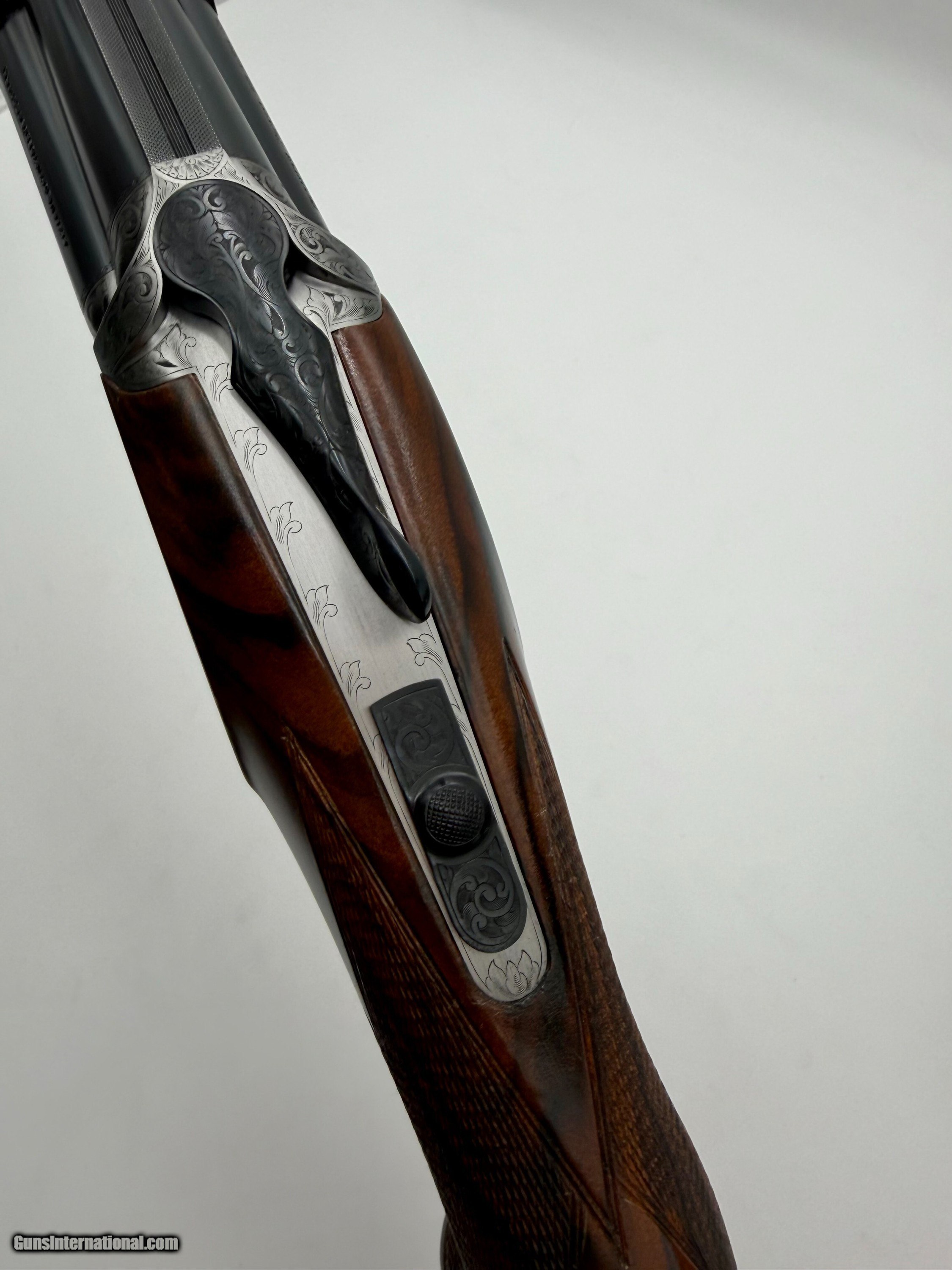 Description: Perazzi SC3 Grade MX8 all serial numbers matching at 126XXX. Dropout leaf spring trigger with external barrel selector. Engraved and signed by Patelli. Beautiful bulino game scene. Compare this engraving to the new Perazzi’s coming out of the factory today and there’s no comparison. Complete gun weighs 8 lbs 6 ounces Barrel specs: 32 inch 11x7 tapered flat rib 18.4 bore Stamped 1.690kg on my scale with chokes installed weighs 1.674kg Comes with full set of factory chokes in 0/0/2/4/6/8/10 Stock dimensions: 1.57 x 2.10 x 2.79 Right hand palm swell Neutral cast Length of pull 14.50 Comes complete with case, tools, parts kit, original manuals Shotgun Gauge: 12 Gauge Price: $14,999.00 Contact Seller |