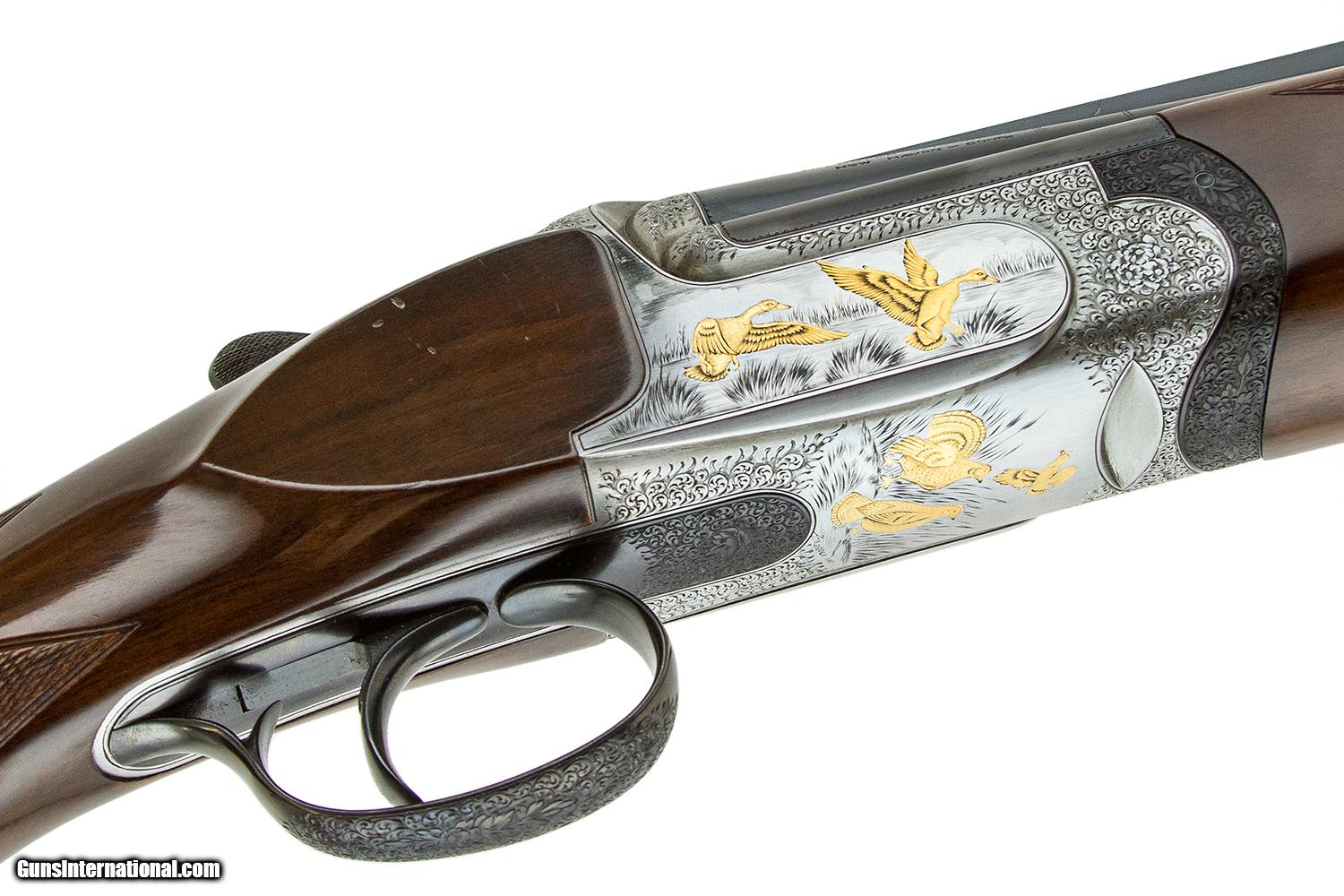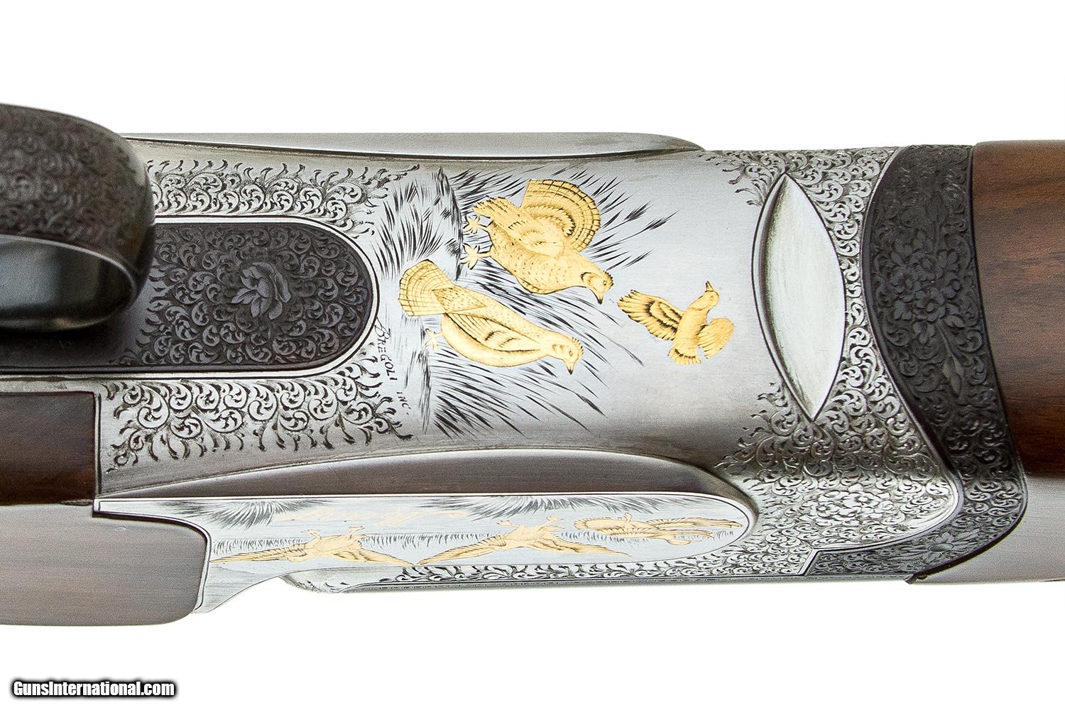 Description: #55XXX THIS IS THE 1ST UPGRADE THAT WE HAVE SEEN BY A FACTORY ENGRAVER WHO IS ONE OF THE BEST ENGRAVED BY BREGOLI ALL BARRELS ARE 27 1/2" VENT RIB SKEET CHOKES SIN GLE DROP OUT TRIGGER EJECTORS FIELD FOREARM PISTOL GRIP EXCELLENT CONDITION CASED 7LBS 14 OZ X 2 1/4 X 1 1/2 X 14 SOLD |