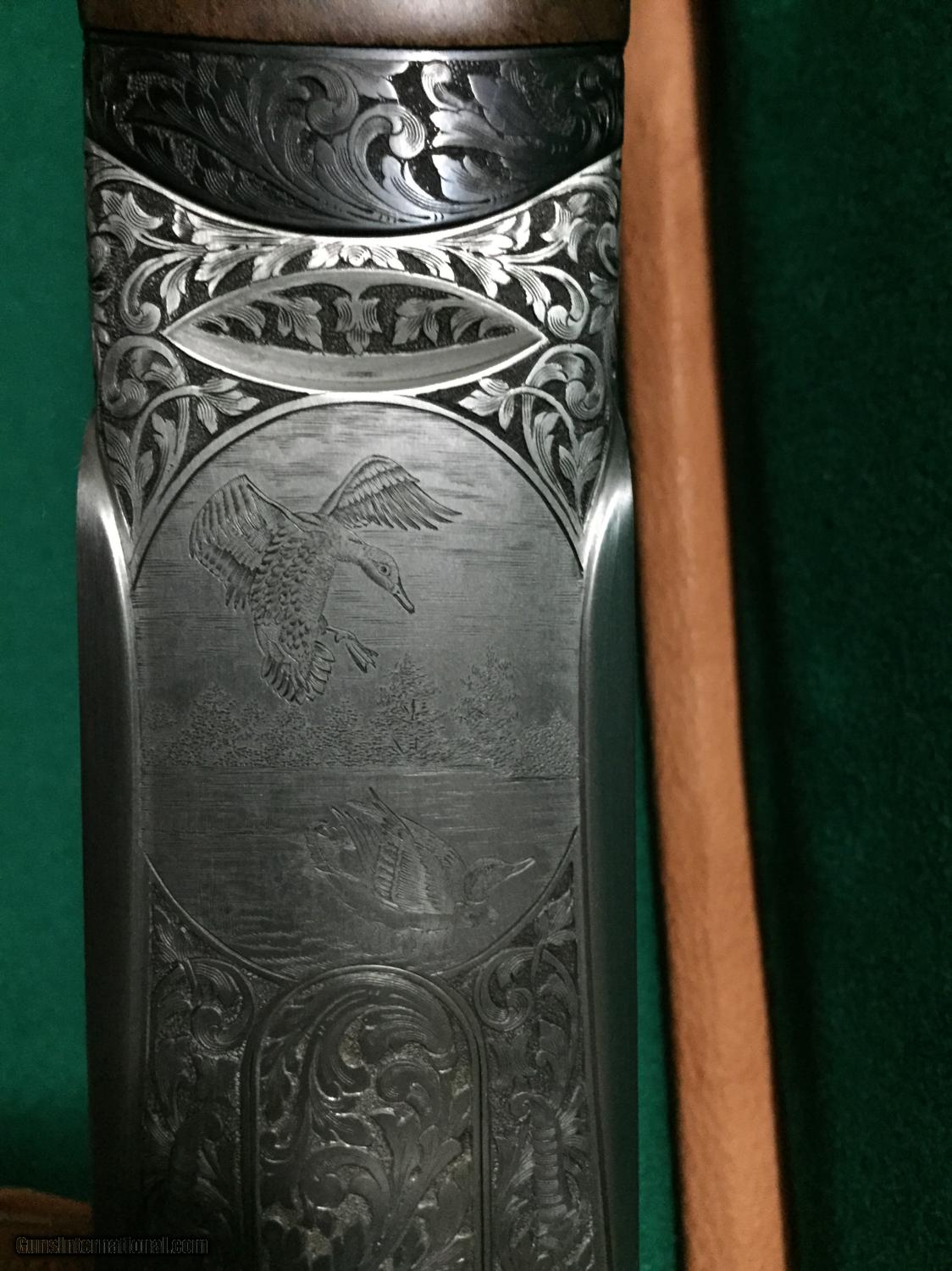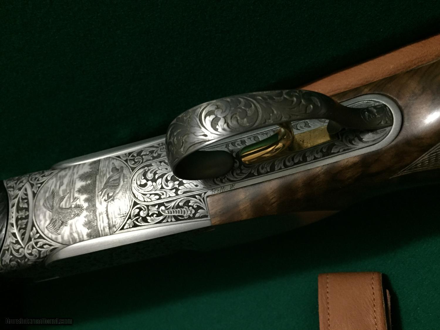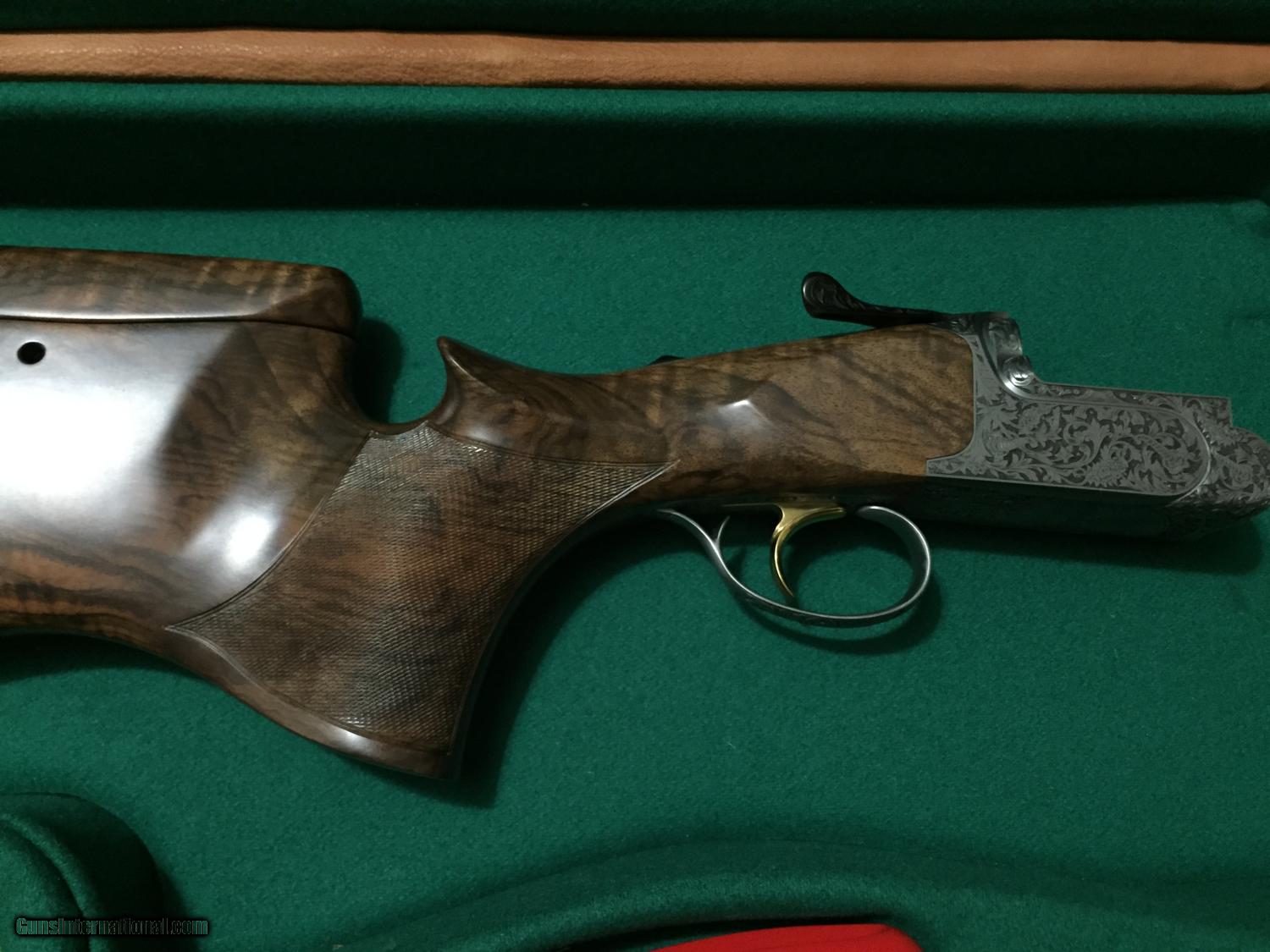 Description: Perazzi SCO MX-2005 Exceptional condition, used only once when purchased, collector piece, 29 1/2" barrel length, 14 5/8" length of pull, RH cast, beaver tail forend, montecarlo-adjustable stock, rubber butt pad, engraving by Potelli W./ RH - LH 136, Bottom engraving 138, comes with screw in factory chokes, leather case. $19400US plus shipping. NO TRADES Sam 416 220 5848 SOLD Manufacturer: Perazzi Model: MX-2005 Trap Bore: 18.7 Chambers: 2 3/4 Condition: Exceptional Metal Condition: Exceptional Wood Condition: Exceptional Bore Condition: Exceptional Barrels: 2 Triggers: Coil springs Gauge Info: 12 Stock: Montecarlo Adjustable Stock Drop: 55 Stock Comb: 30 Stock Heel: 40 Stock Cast: RH Fore End: BT Butt Pad: Rubber LOP: 14 5/8 Rib: 11x7 Chokes: Factory chokes Choke Left: 10 Choke Right: Screw choke Engraving: LH & RH - 136 Bottom - 138 Case: Leather Item Location: Canada |