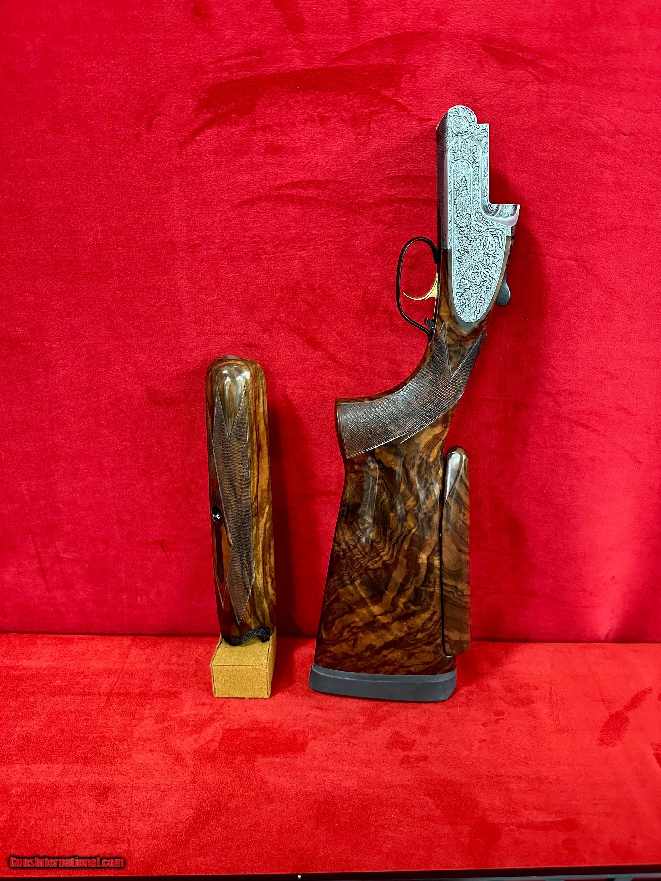 Description: Here is a rare factory Perazzi SCO sideplate Trap Combo. All serial number matching #118XXX. This gun is PRISTINE and in LIKE NEW condition. Signed and engraved by Badillini. Getting very hard to find guns like this especially in this condition Barrel Specs Top Single: 34 inch 1.730kg 18.4 bore 11x7 tapered rib 4mm ramp rib Factory interchangeable choke tubes Barrel Specs Over/Under: 31.5 inch 1.790kg 18.4 bore 4mm ramp rib 11x7 tapered rib Factory interchangeable choke tubes Stock Dimensions: 1.50 x 1.50 x 2.08 Length of pull 14.50 Neutral cast No Palm swell SOLD Shotgun Gauge: 12 Gauge |