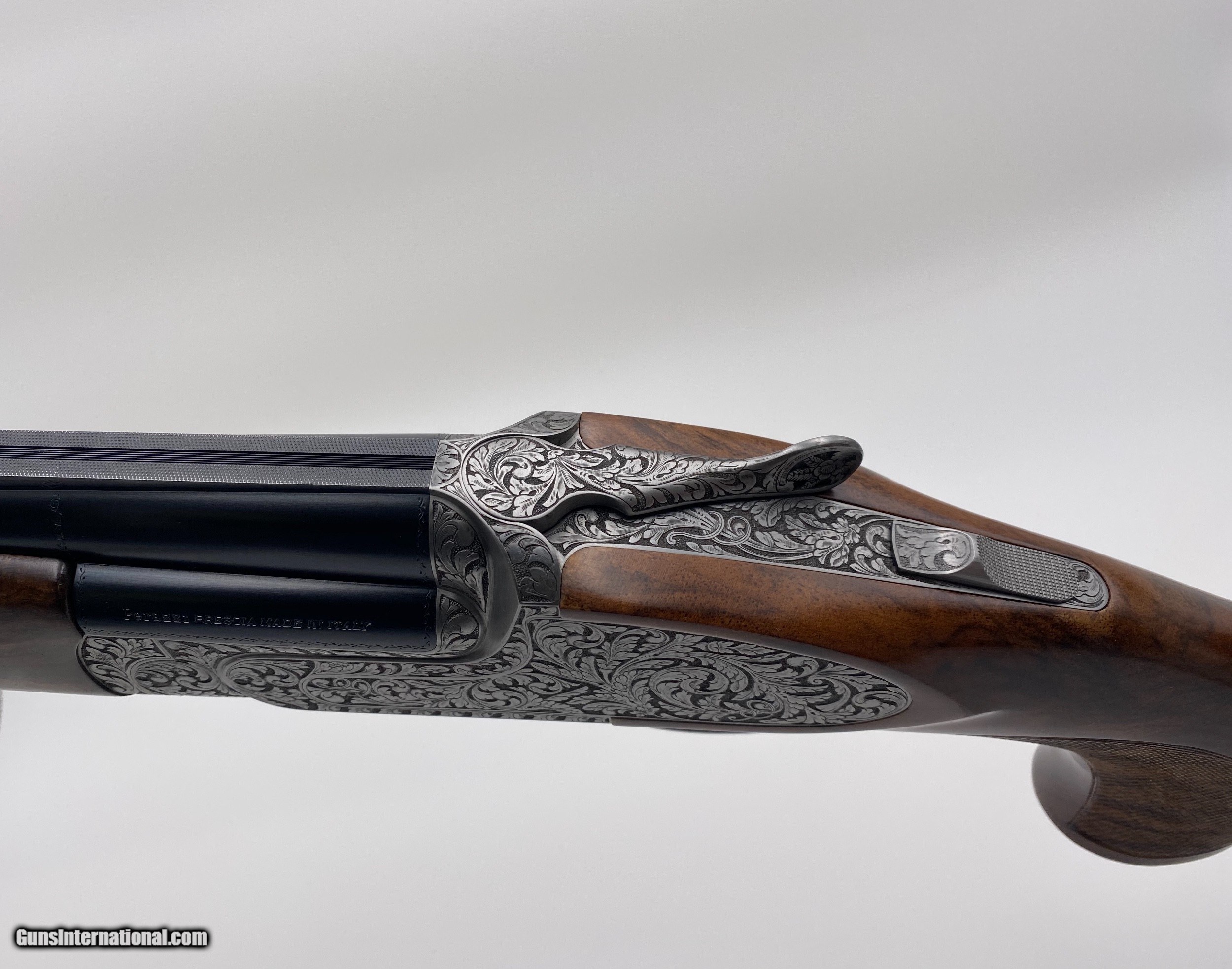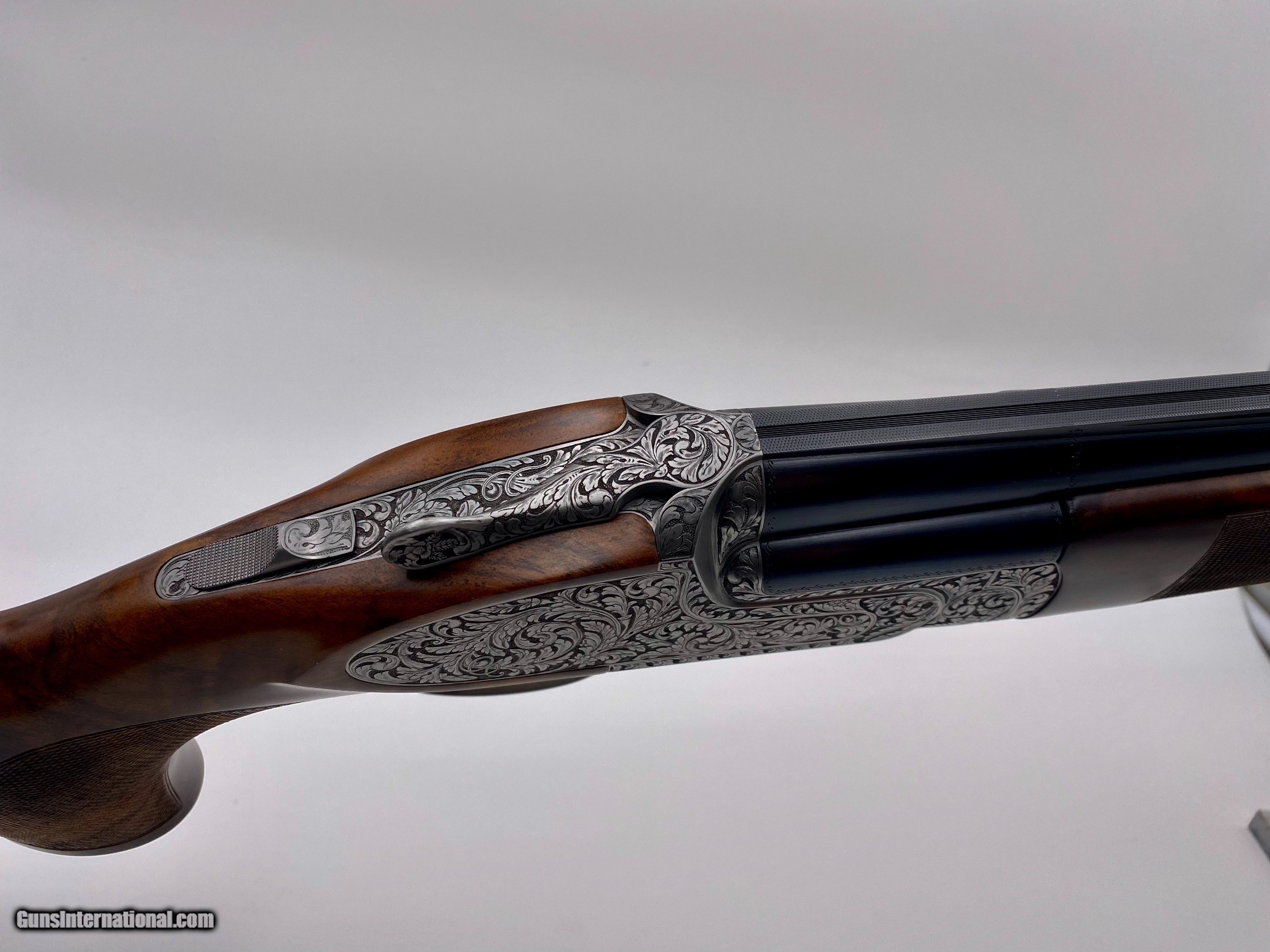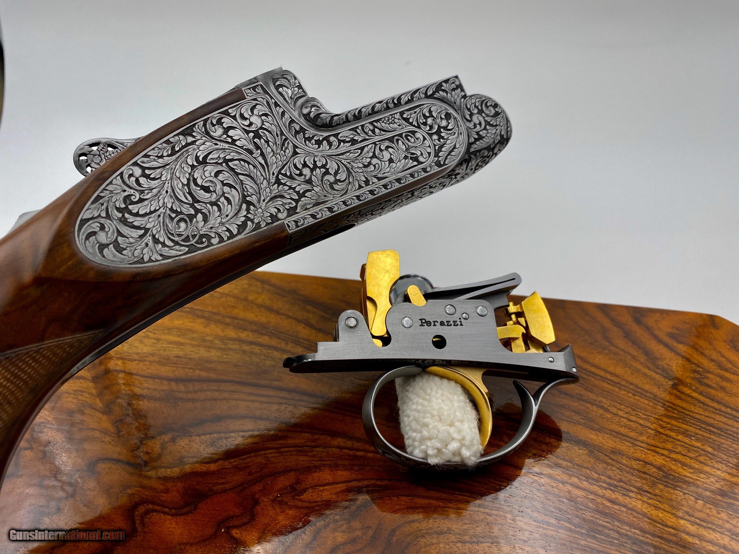 Description: Perazzi SCO sideplate in pristine MINT condition. All serial numbers matching #141XXX. Gun has hardly been shot and remains in original condition Stock dimensions: 1.25 x 1.41 x 1.93 Length of pull 14.75 Right hand palm swell Cast off at the toe 3/8 Barrel specs: 29.5 inch 1.580KG 18.4 bore 11x11 Tramline rib (very rare) Fixed choke .032 bottom and .040 top Comes with original factory leather SCO case, books, tools $34999 SOLD |