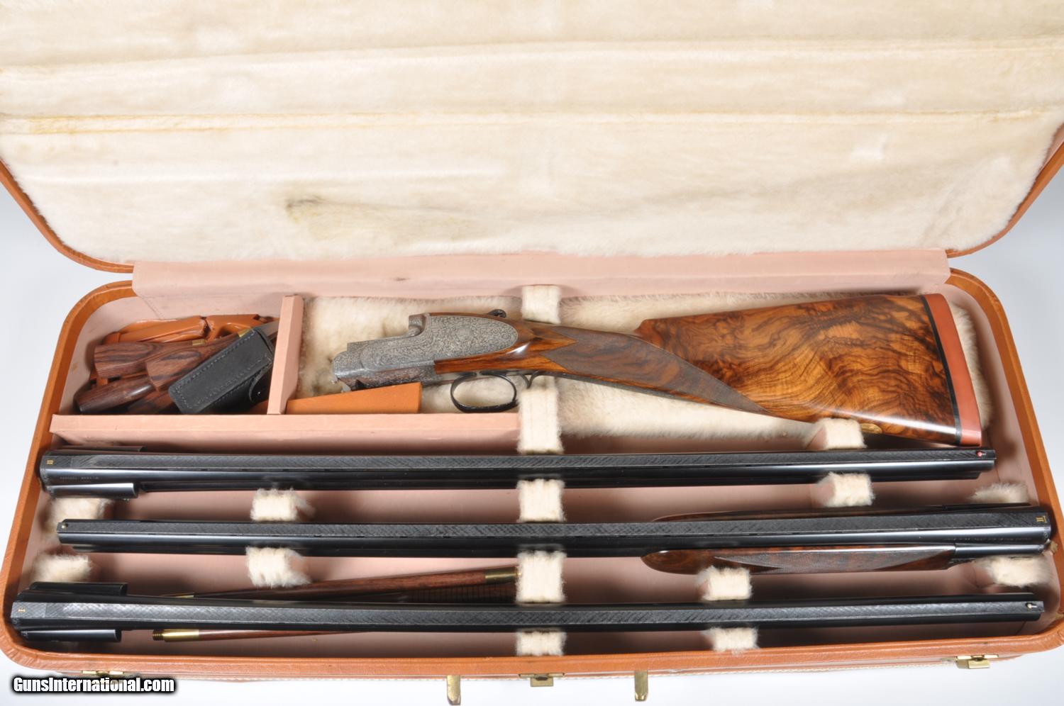 Perazzi Sho “Extra Lusso” Three Barrel Set Galeazzi Engraved 12 Gauge Over Under High Grade Walnut Straight Stock SALE PENDING