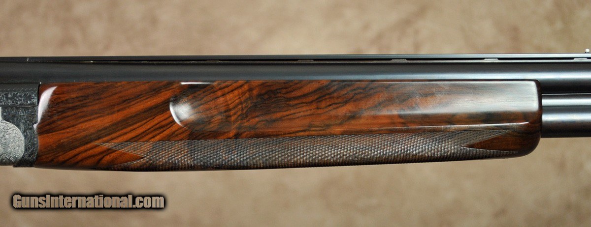 Description: Pre owned in excellent condition Perazzi SHO Sidel Lock Pigeon 2 barrel set. Extremely Rare Perazzi sidelock, includes 29″ fixed choke (.016/.020) and 29″ thin wall chokes pigeon barrels. 11 mm x 7 mm flat tapered, hand filed rib. Highly figure sprting stock, dimensions are; 1 3/8x 1 3/4″. LOP 14 1/2″. Presentation case included SOLD |