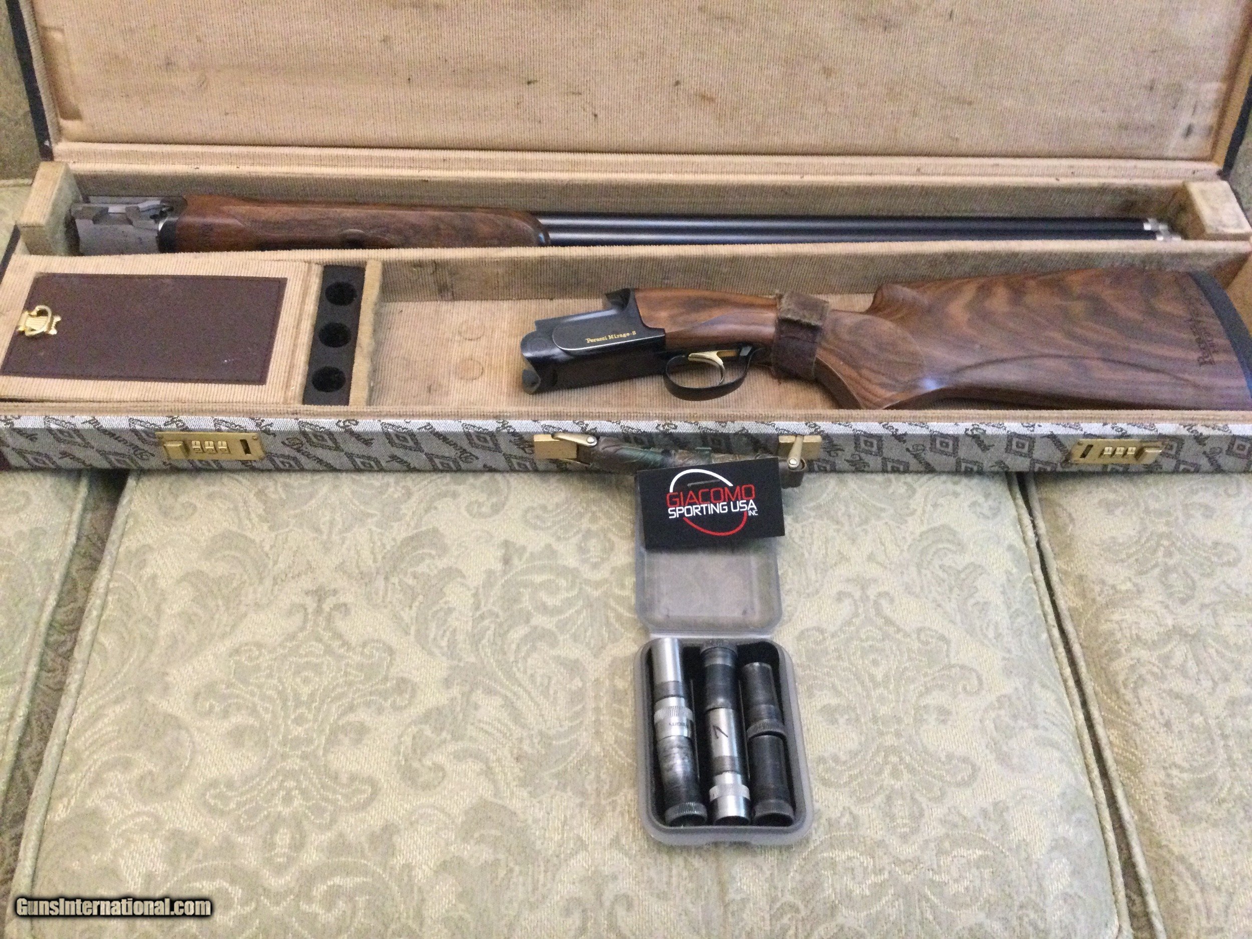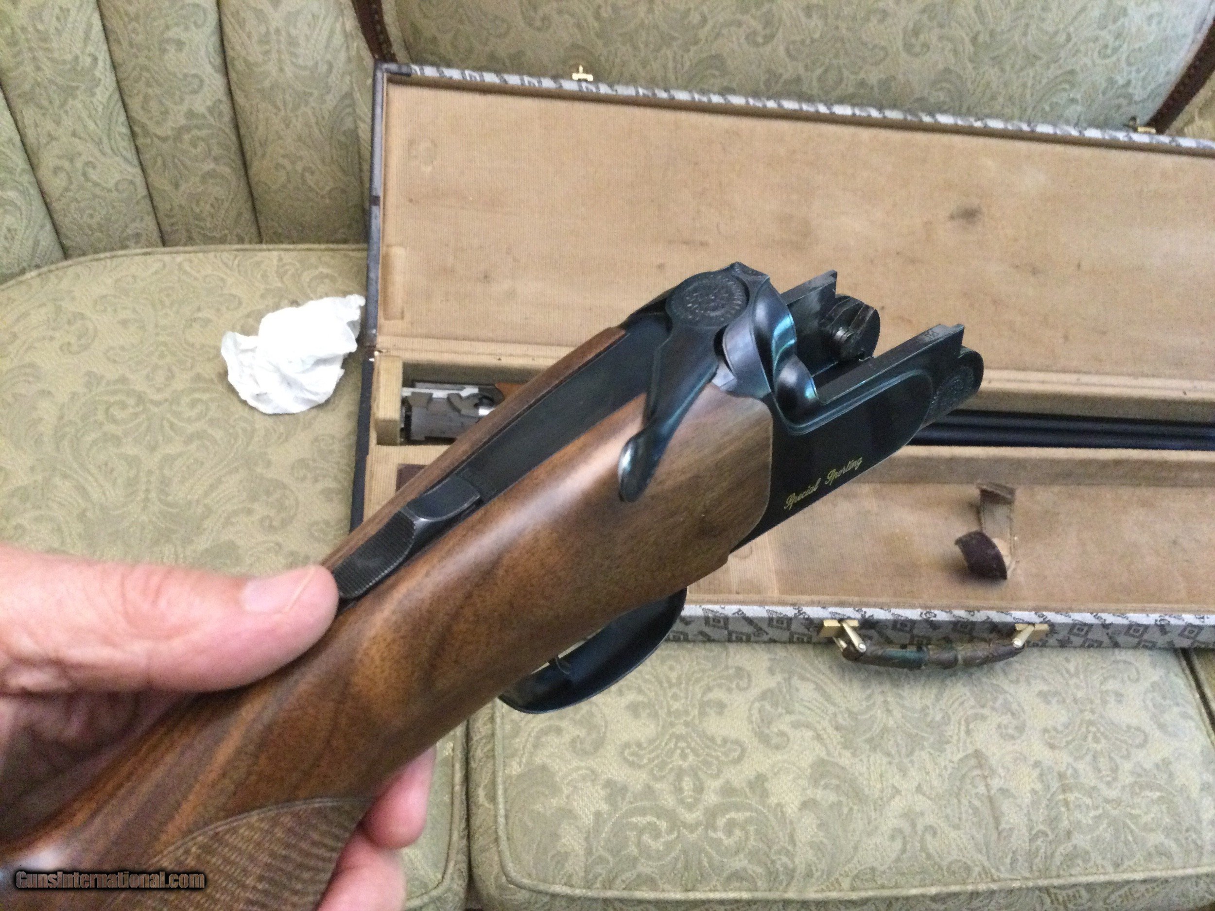 Description: This Perazzi Special sporting (same as MX8) was just overalled, had a brand new 32" type 4 barrel with removable chokes (four factory and four Wrights) installed, removable external selective trigger, a brand new High Tech SC3 wood set fitted (original wood set in eccelet condition also available at a discount) all the work was done by Giacomo in New York. Test fired only since overall SOLD SOLD Manufacturer: Perazzi Model: Special Sporting Barrel Length: 32” Ejectors: Yes Condition: 99% Metal Condition: 99% Wood Condition: 100% Bore Condition: 100% Barrel Type: Sporting tapered rib Triggers: Removable Stock Cast: Right hand Butt Pad: Original LOP: 14-5/8” Weight: 15.5 Kg. Chokes: Removable factory plus Wrights Engraving: Gold lettering Item Location: North Carolina |