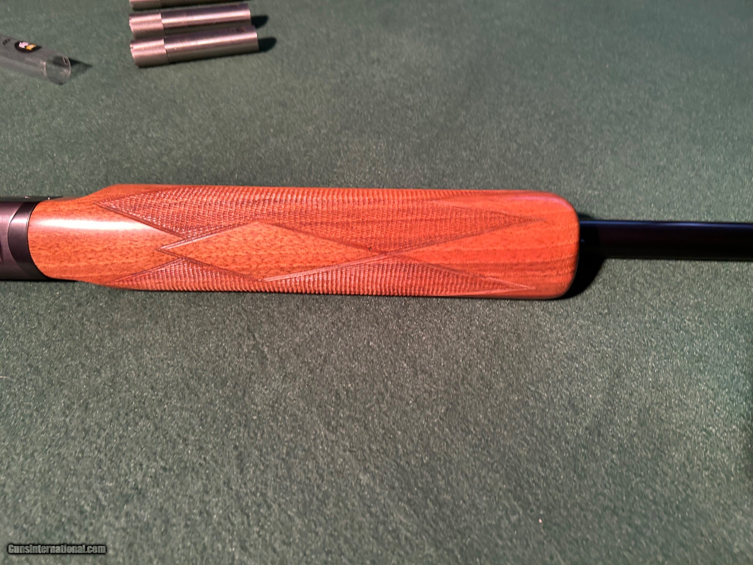 Description: Perazzi factory authorized restoration by Perazzi Dealer, Rome N.Y. This TM 1 was originally a Ithaca N.Y. Gun. Restoration is a top quality unit. 34" barrel with 3 Briley choke tubes. Removable pull trigger , straight stock, kickeez recoil pad Shotgun Gauge: 12 Gauge Manufacturer: Perazzi Model: TM 1 Barrel Length: 34” Chambers: 2/34 Ejectors: Yes Condition: Excellent Metal Condition: As new Wood Condition: As new with a couple small scratches Bore Condition: As new Barrels: Single Barrel Type: Mid rib with 2 beads Action: Single shot Triggers: Removable pull trigger Stock: Straight Stock Cast: Slight cast off Butt Pad: Kickeez LOP: 14.50” Rib: Mid Finish: Polished oil Chokes: Briley Engraving: None Extras: 3 chokes total Case: No Item Location: Fl. Optic: None Price: $3,995.00 Shipping: $65.00 Buy Now Contact Seller |