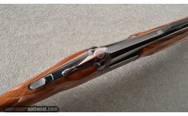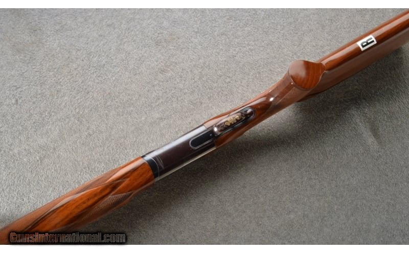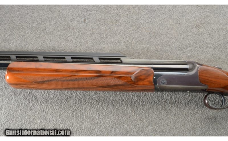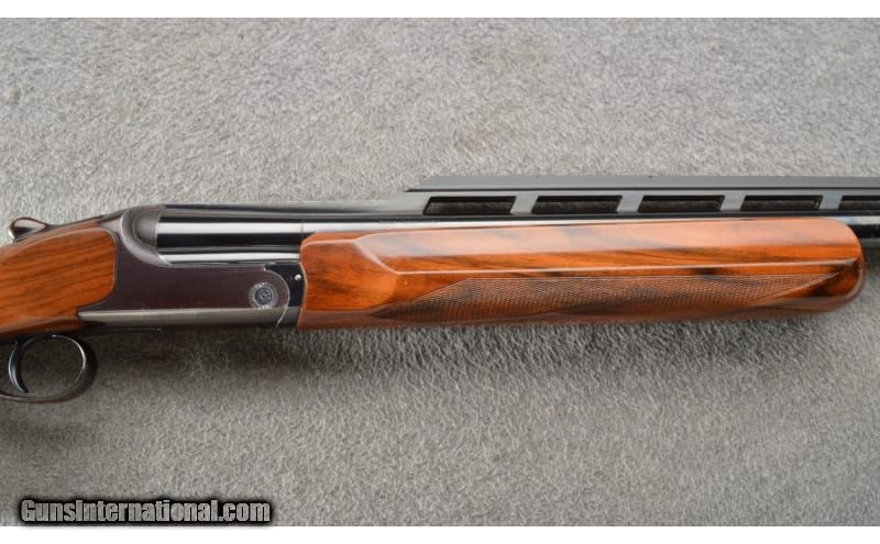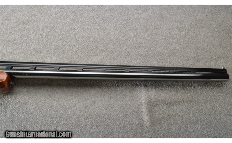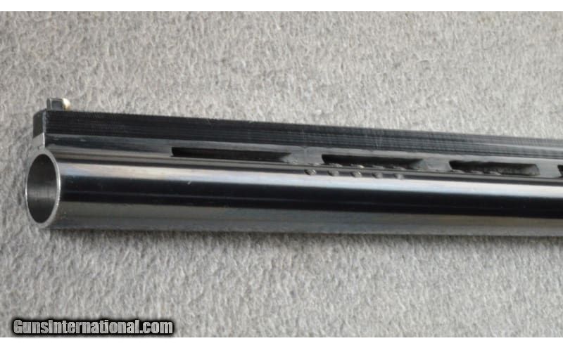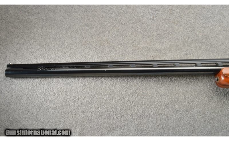 Description: (1) The attached 34" barrel has a white bead front sight and a gold mid-bead, raised vent rib. This barrel is ported and does have an ejector, 2 3/4" chamber marked on the side of the barrel, choke tube system (Fixed - IC), standard Italian proofs on the bottom side of the barrel by the lug, manufactured by Perazzi in Italy. This barrel shows fore end contact wear with scattered finish scratches around the same area. (2) The second 34" barrel has a gold bead front sight and a gold mid-bead, raised vent rib, ejector, 2 3/4" chamber marked on the left side of the barrel, choke tube system (Fixed - MOD), standard Italian proofs on the bottom side of the barrel by the lug, manufactured by Ithaca in Italy. This barrel shows fore end contact wear with minor scuffing on the left side muzzle. The blued receiver has no making except light engraving on the break lever, removable trigger group, second trigger kit is found in the case. The right hand cast pistol grip stock has an adjustable comb and vented Perazzi recoil pad. Checkered walnut fore end. The stock shows signs of scattered scuffs, scratches and dings from normal use. Comes with the Perazzi takedown case, stock components and recoil weight. 12 Gauge SOLD Chambers: 2 3/4" chambers. Wood Condition: "Light scattered scuffs, ding, scratches. Bore Condition: Smooth bright bores. Barrels: 34" barrel. Triggers: Single (release trigger). Stock Dimensions: LOP 14 7/8". Fore End: Checkered walnut. Butt Pad: Vented rubber. Weight: 10 Lbs Sights: Bead. Chokes: Fixed. Item Location: Owatonna, MN |