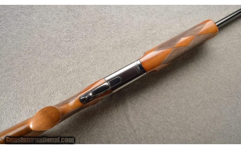 Description: Perazzi TM1 single barrel target shotgun chambered in 12 gauge for 2 3/4" shells. Both barrels are blued 32" barrel with ejectors and choked "FULL". They both have a 0.425" wide target rib with white front bead and a silver mid-bead. The stocks are two pieced checkered walnut with finger groove forend, fixed comb, adjustable LOP, and a ventilated ADS recoil pad. 12 Gauge Chambers: 2 3/4" chamber on both barrels. Metal Condition: 85% remaining. Wood Condition: The normal expected trap gun wear. Rates about 85% remaining. Bore Condition: Both bore s have bright surfaces. Barrels: Both are 32". Triggers: Removable trigger group. Stock Dimensions: Adjustable. Fore End: Checkered with finger groove. Butt Pad: Rubber. Sights: Both have a white front bead and a mid-bead. Chokes: One is fixed and other is removable. Item Location: Owatonna, MN Price: $3,499.99 Contact Seller |