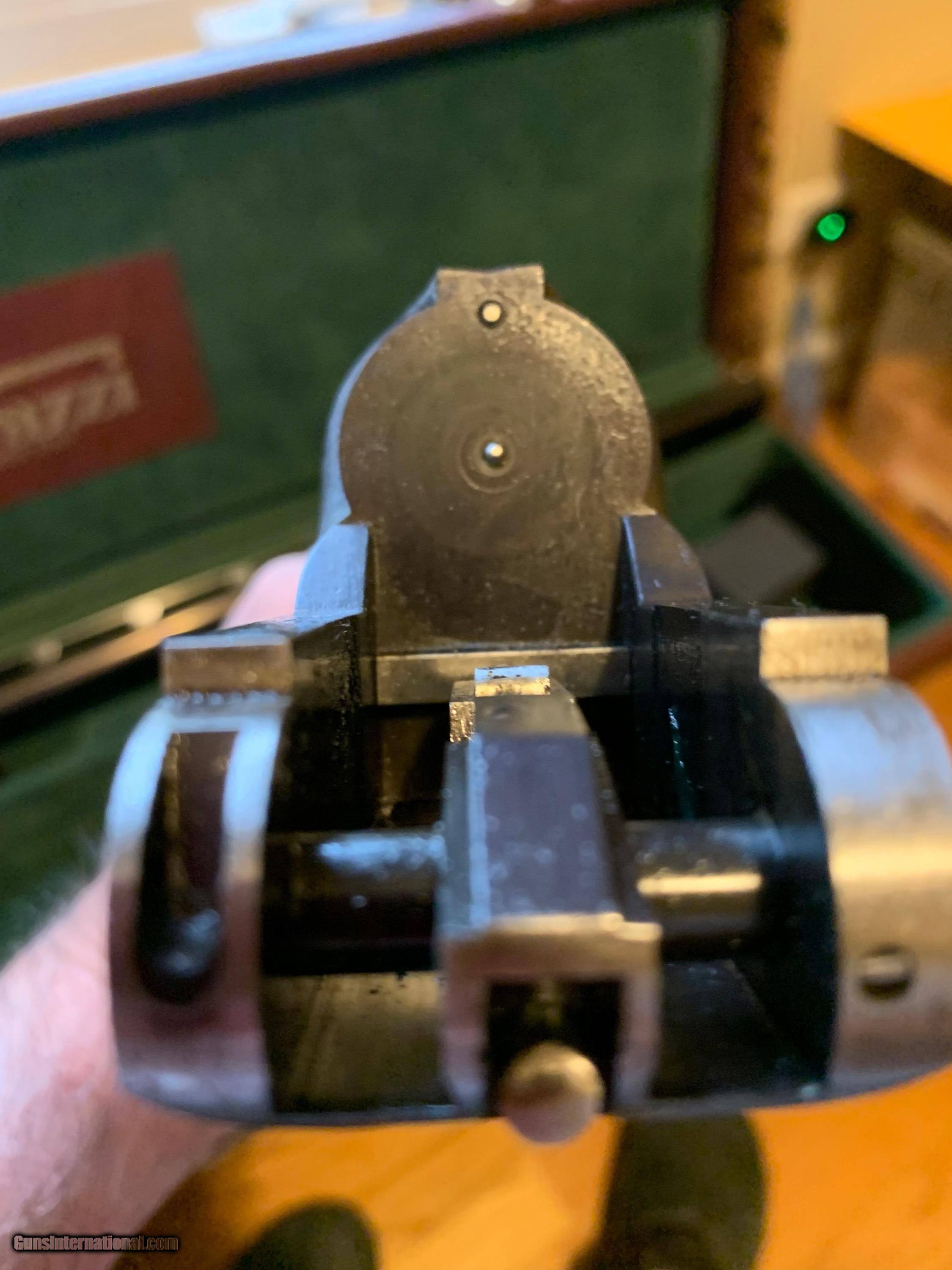 Description: Perazzi TM1 Winchester Import with (Tom Seitz Conversion Package) For those of you who do not know about Tom Seitz he was one of the best barrel tuners in the business. His package consisted of back boring. custom choke and porting. He would also do a 4-way adjustable comb with brass parts. 34" Barrel ported .740 Bore .032 Choke (Tapered Rib) Stock (Upgraded Wood) is Neutral with 4-way adjustable comb. 1874 Indian Princess Gold Dollar Coin ($400 value) embedded in grip cap Trigger is Pull Original Perazzi Case Excellent Condition (this is all factory finishes on metal and wood) $5,000 SOLD Shotgun Gauge: 12 Gauge Manufacturer: Perazzi Model: TM1 Barrel Length: 34 Condition: Excelent Metal Condition: Excellent Wood Condition: Excellent Bore Condition: Excellent |