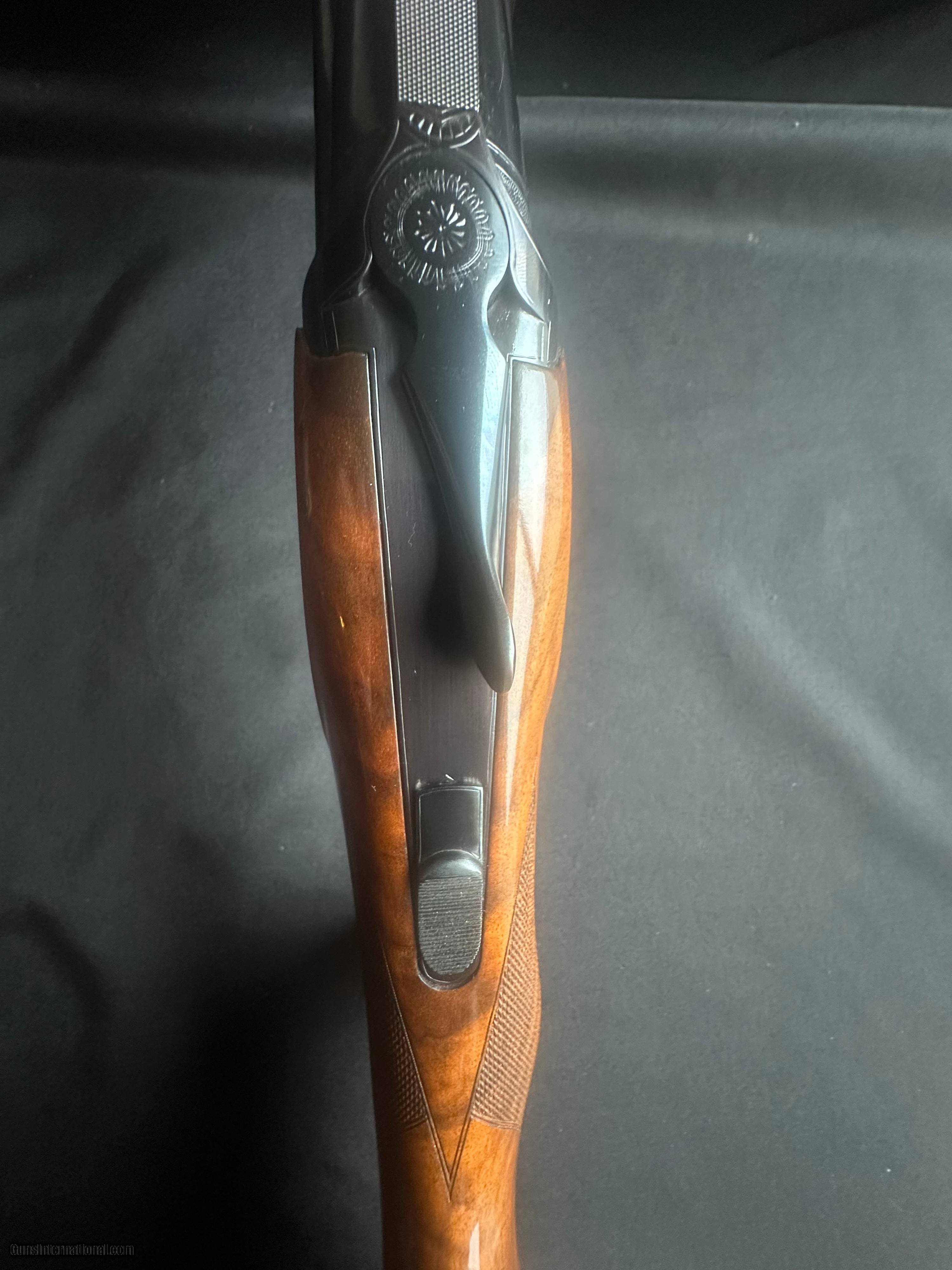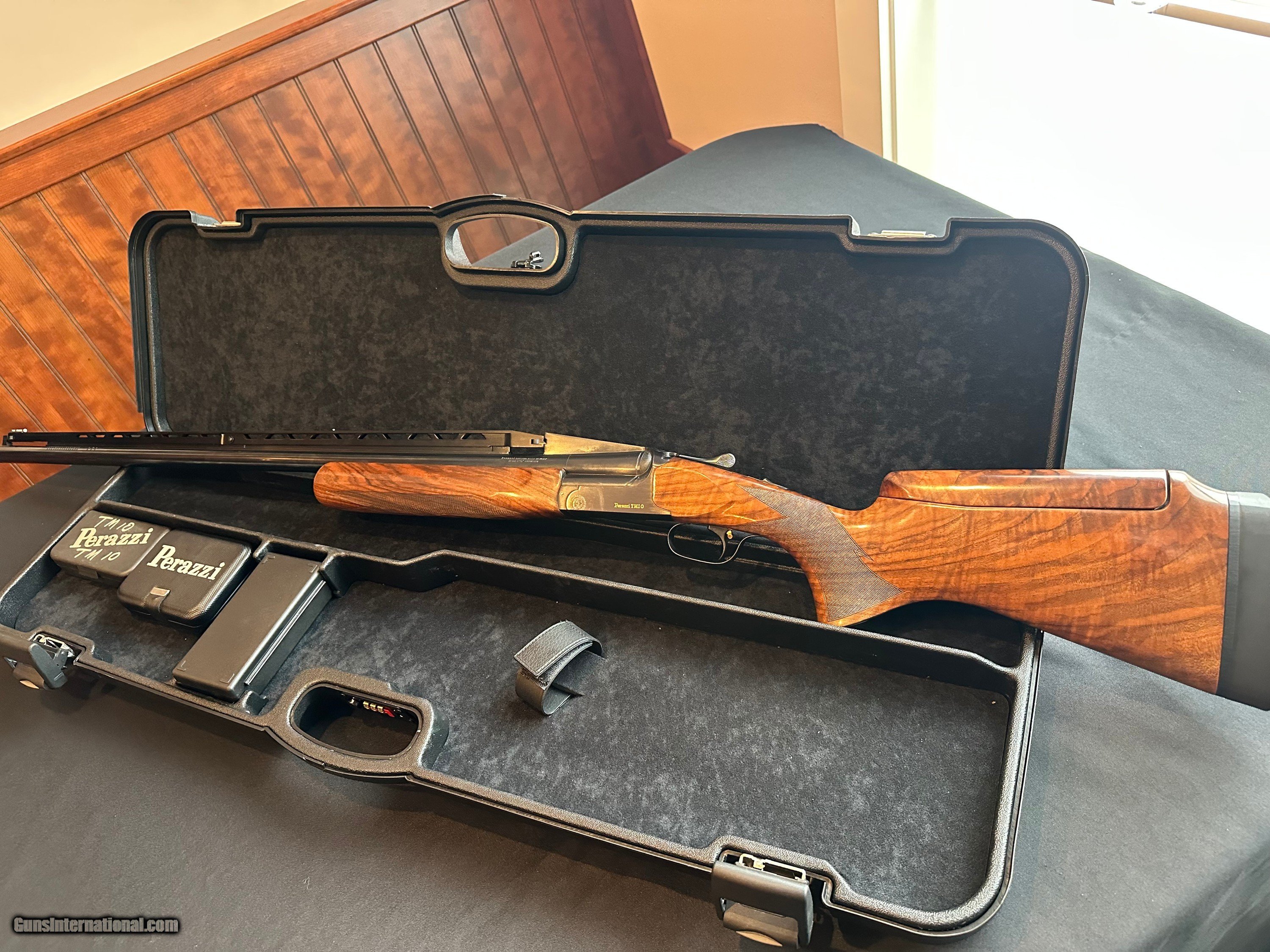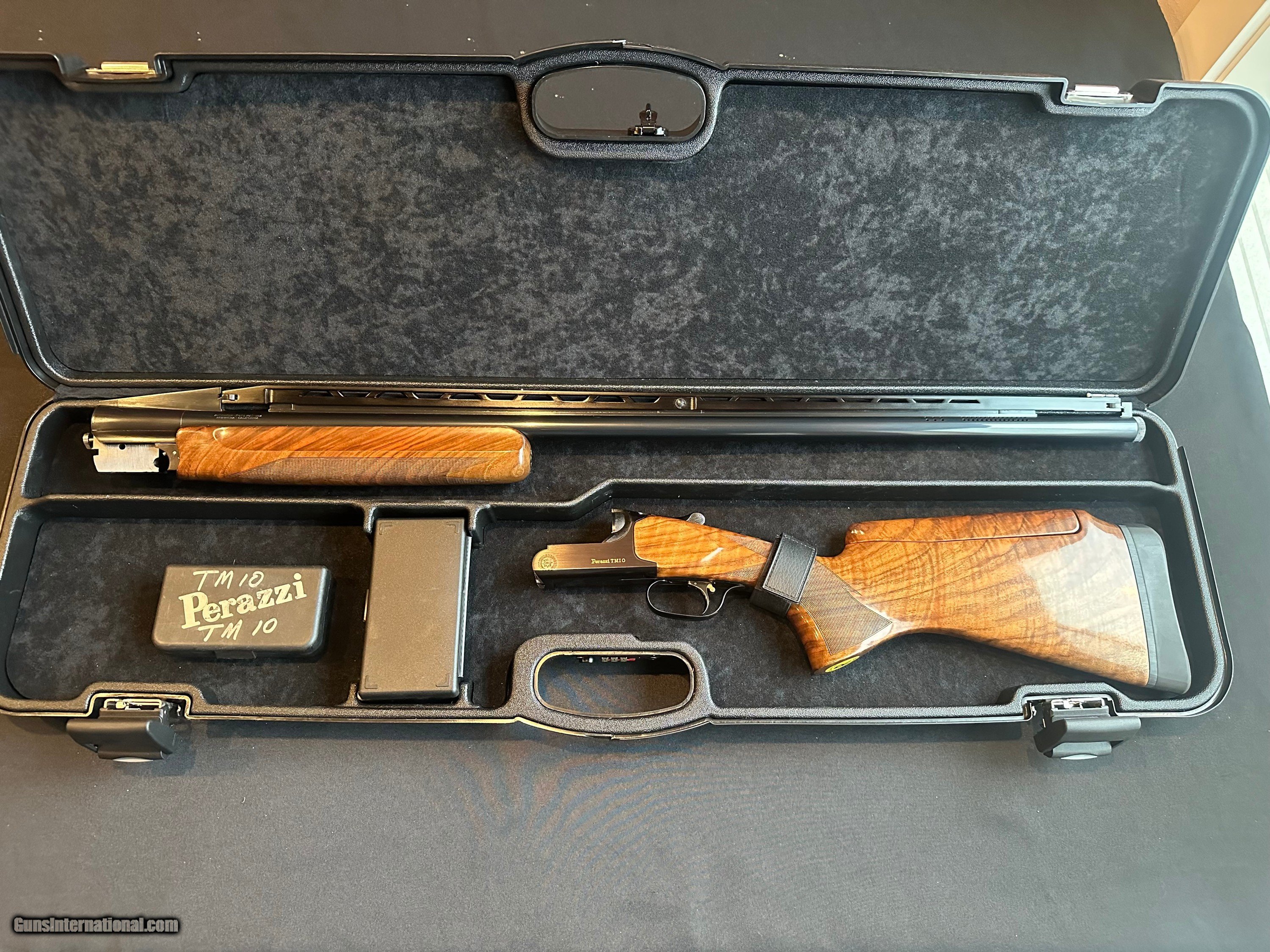 Description: Rare Perazzi TM 10 single barrel trap gun, one of only 50 built. These were the first guns Perazzi put on an adjustable 4 postition steel rib and this was later to become the Perazzi MX10. This gun has been rebuilt, reblued and has a RH factory highly figured stock which is difficult to find on TM guns. All numbers match on the metal including the trigger which is rare for these guns as the triggers usually have been seperated. The 34" barrel has ejectorrs with Seitz type porting and with five screw in choke tubes (4,6,7,8 & 10) and a hard to find factory Perazzi choke tube wrench. This is a removable trigger gun with seperate carry case for the trigger and includes a brand new Negrini case. Also included is a vintage custom weight system that can be put on the forend if desired - weights includes are 2, 4 and 6 ounce. The trigger is currently an adjustable release trigger but I can have it returned to a pull if desired. This gun was built in 1993 and is virtually like new. Shipping is $45 to your dealer. SOLD Shotgun Gauge: 12 Gauge Manufacturer: Perazzi Model: TM10 Serial Number: 88254 Barrel Length: 34 Ejectors: Yes Condition: Like New Triggers: Adjustable Butt Pad: 1 LOP: 14.5 Rib: Adjustable Steel Manufacture Date: 1993 Chokes: 5 Case: Negrini |