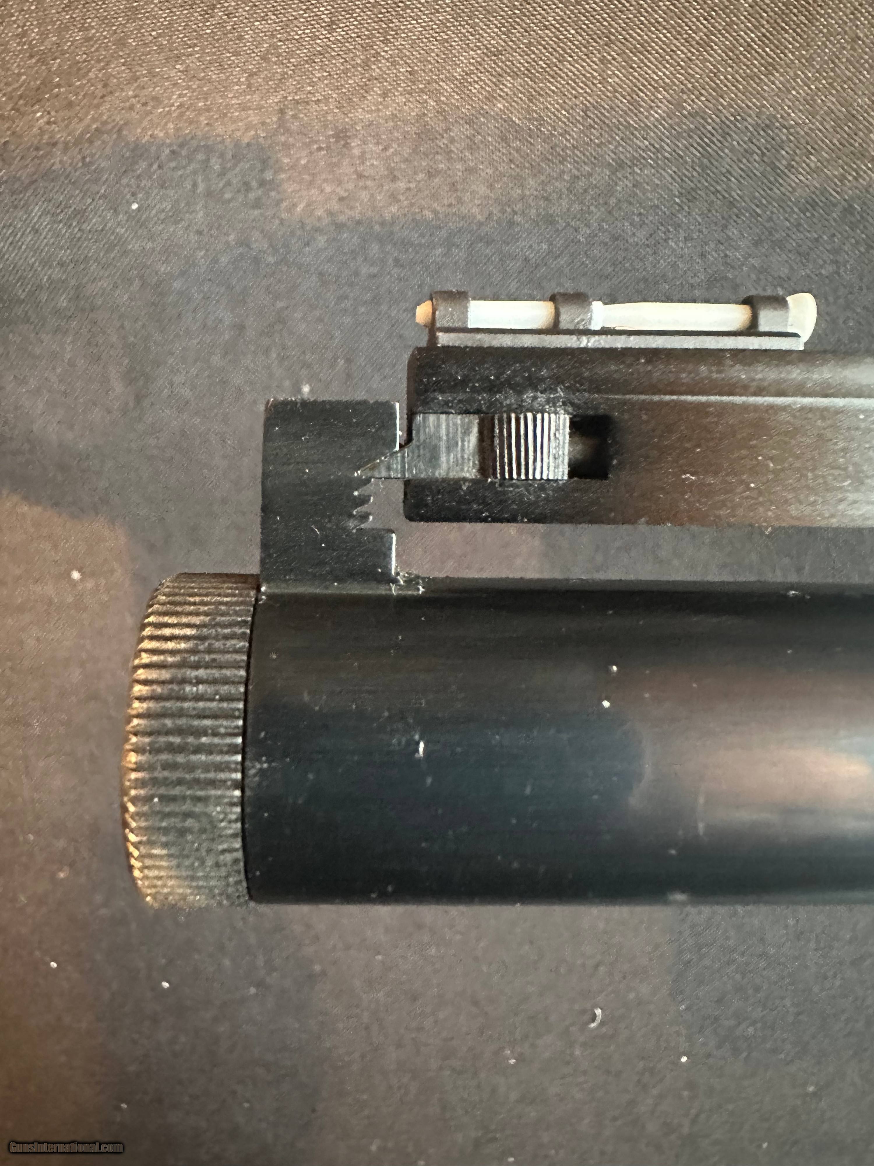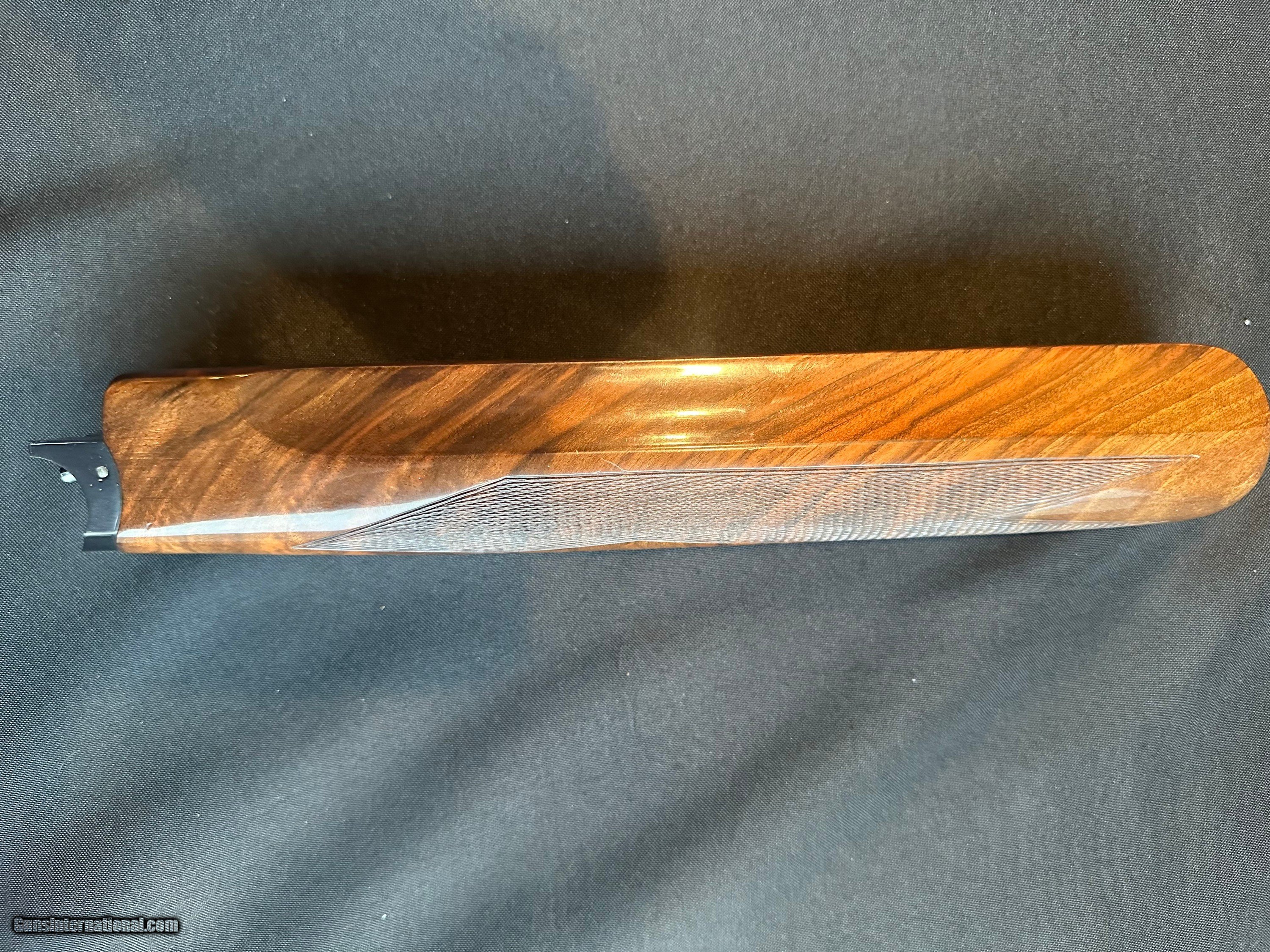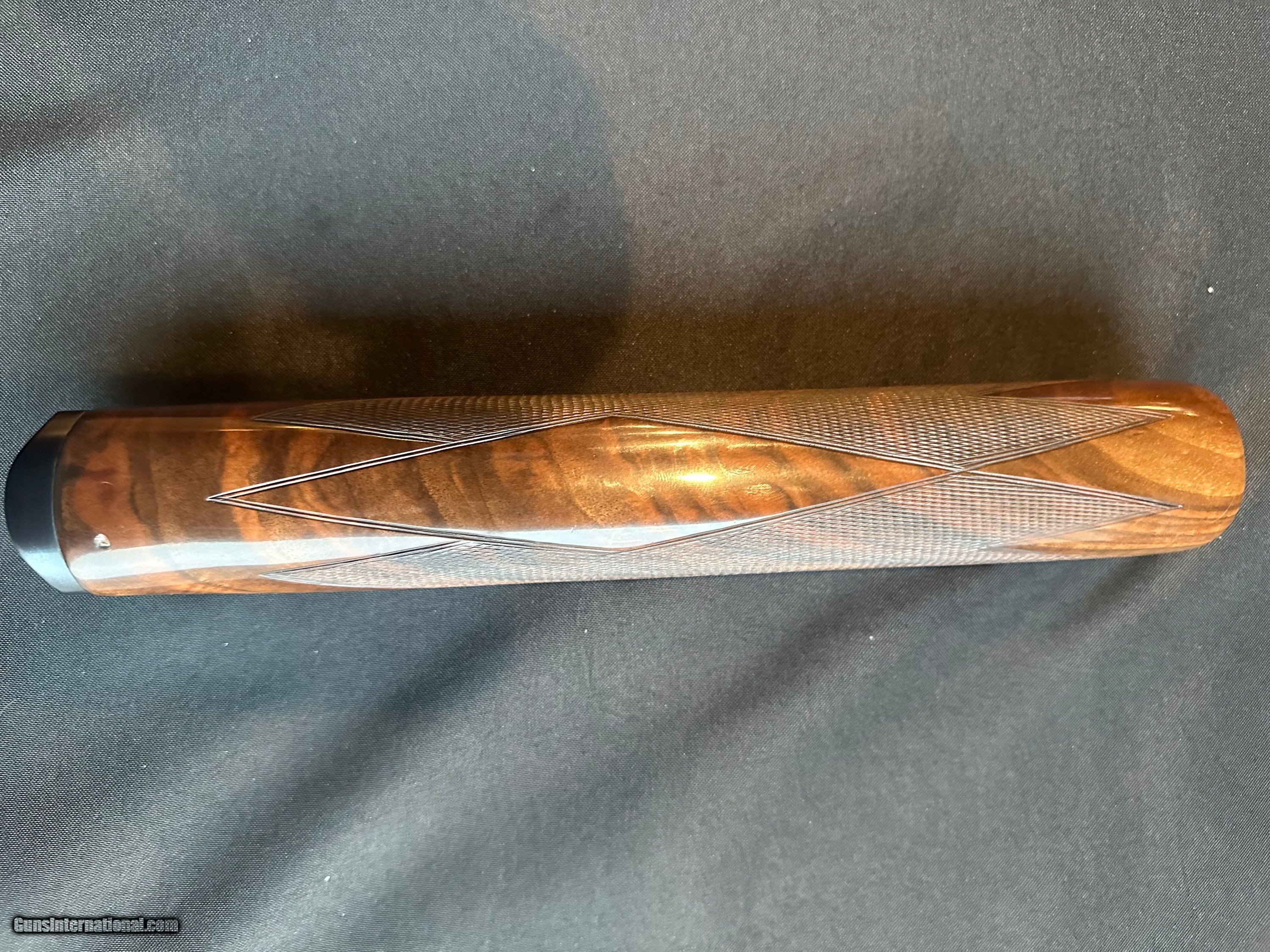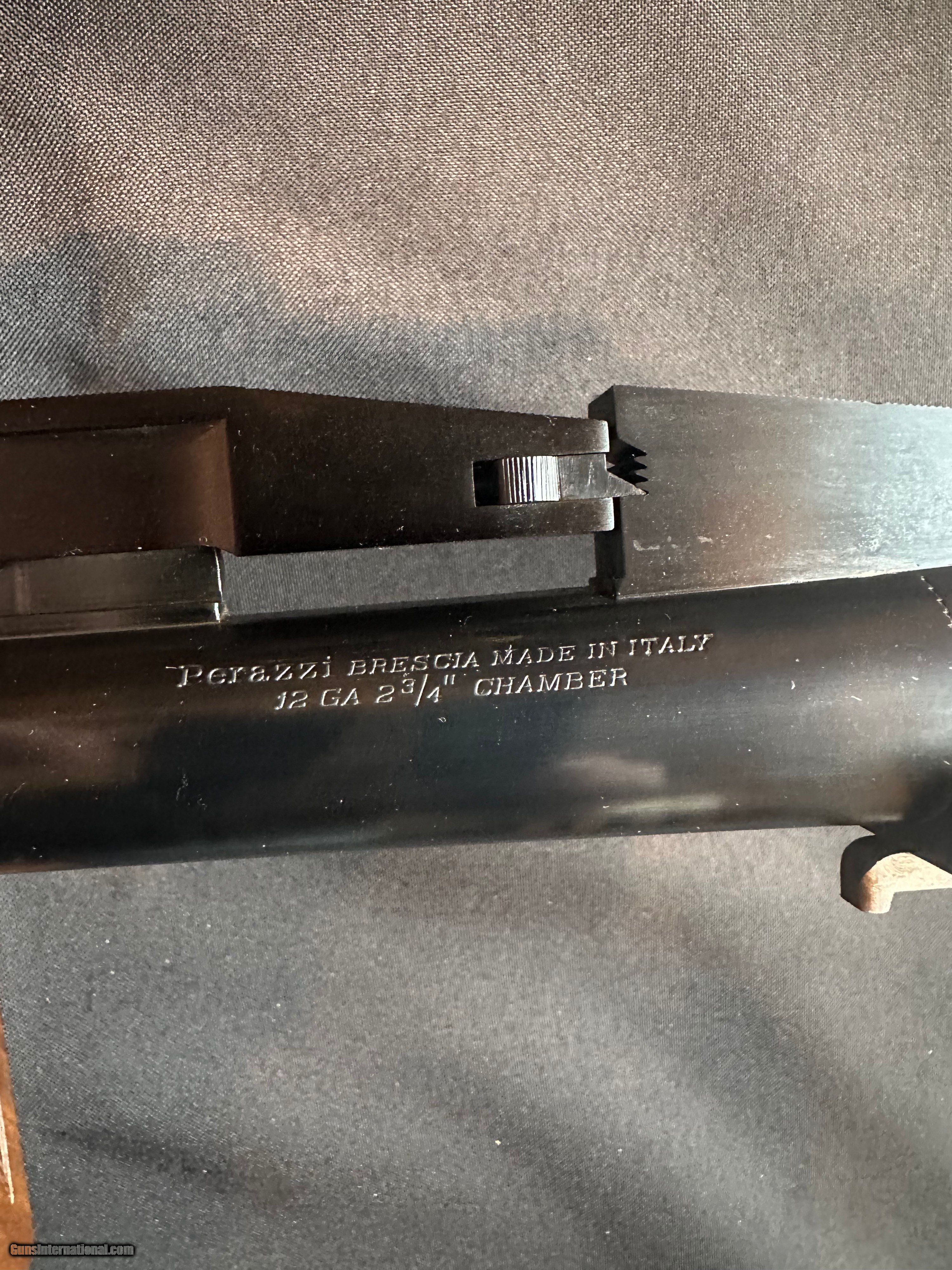 Description: Rare Perazzi TM 10 single barrel trap gun, one of only 50 built. These were the first guns Perazzi put on an adjustable 4 postition steel rib and this was later to become the Perazzi MX10. This gun has been rebuilt, reblued and has a RH factory highly figured stock which is difficult to find on TM guns. All numbers match on the metal including the trigger which is rare for these guns as the triggers usually have been seperated. The 34" barrel has ejectorrs with Seitz type porting and with five screw in choke tubes (4,6,7,8 & 10) and a hard to find factory Perazzi choke tube wrench. This is a removable trigger gun with seperate carry case for the trigger and includes a brand new Negrini case. Also included is a vintage custom weight system that can be put on the forend if desired - weights includes are 2, 4 and 6 ounce. The trigger is currently an adjustable release trigger but I can have it returned to a pull if desired. This gun was built in 1993 and is virtually like new. Shipping is $45 to your dealer. SOLD Shotgun Gauge: 12 Gauge Manufacturer: Perazzi Model: TM10 Serial Number: 88254 Barrel Length: 34 Ejectors: Yes Condition: Like New Triggers: Adjustable Butt Pad: 1 LOP: 14.5 Rib: Adjustable Steel Manufacture Date: 1993 Chokes: 5 Case: Negrini |