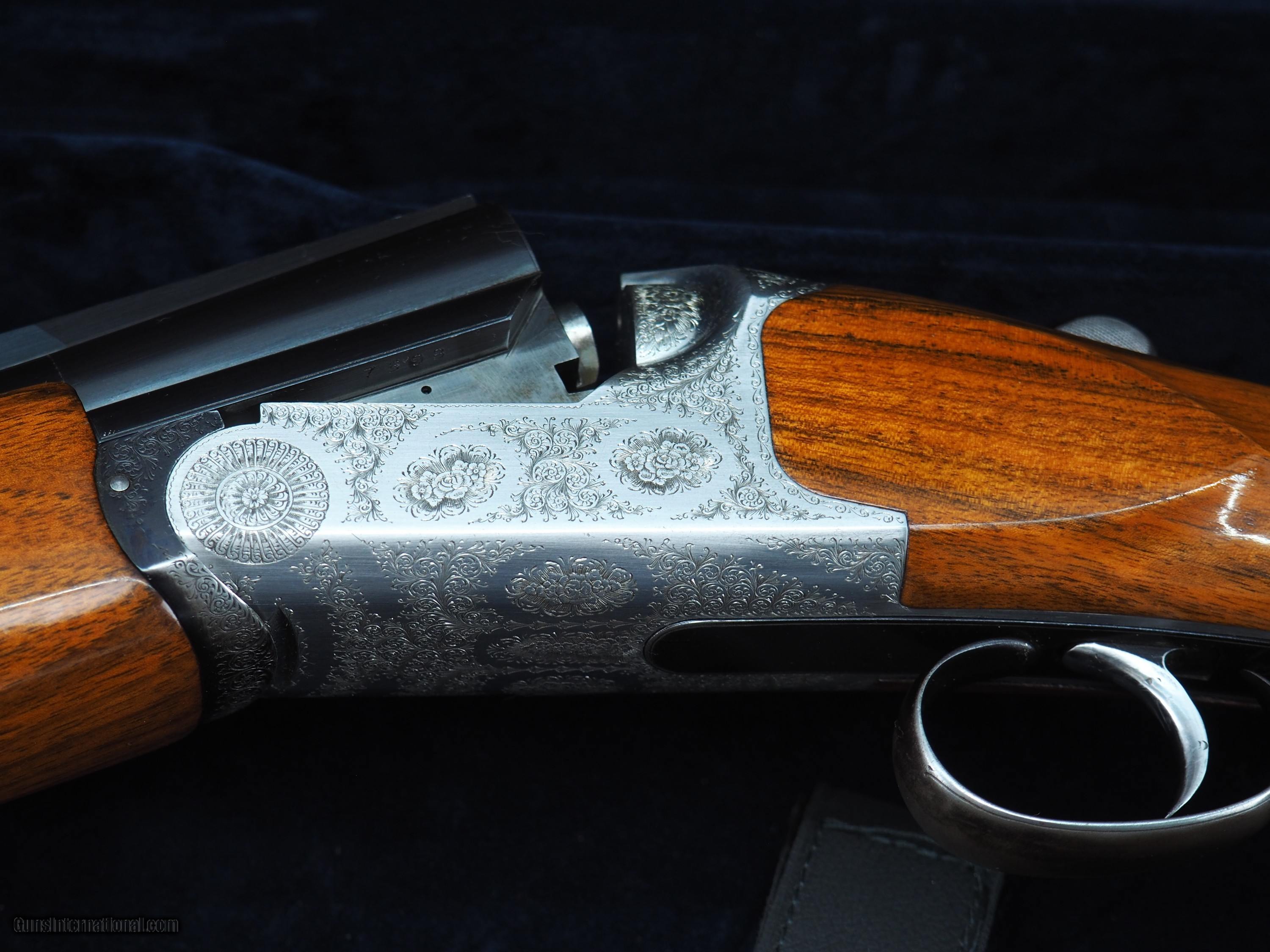 Description: Perazzi TM3 two-barrel set with 32” (original numbers matching) and 34” (non matching but fitted) barrels, silver engraved receiver, leaf spring trigger unit, and aftermarket custom LH stock set. 32” barrel, receiver, and iron have matching serial numbers. The trigger unit and 34” barrel were added after the fact but do fit. Stock set is custom made, most probably in the US. Very mild, scattered handling marks are present on the stock as one would expect—but none are distracting. Gun appears to have been shot a fair amount, but was just given a full service prior to being listed for sale. Comes complete in a brand new Negrini 1653LR case. Make: Perazzi Model: TM3 Gauge: 12ga Hand: Right Barrel length: 32” + 34” 34” barrel bore/choke: .741”/.032” 32” barrel bore/choke: .730”/.018” LOP: 14.375” DAC: 1.38” (35mm) DAMC: 1.38” (35mm) DAH: 2.56” (65mm) Accessories: case, stock sleeves Case: Negrini 1653LR, brand new SOLD |