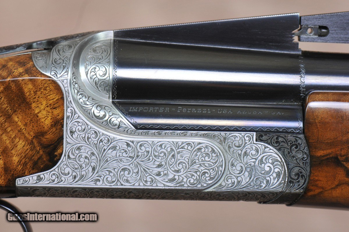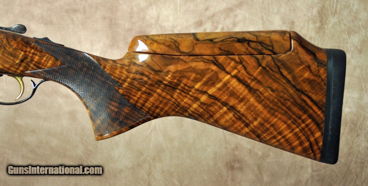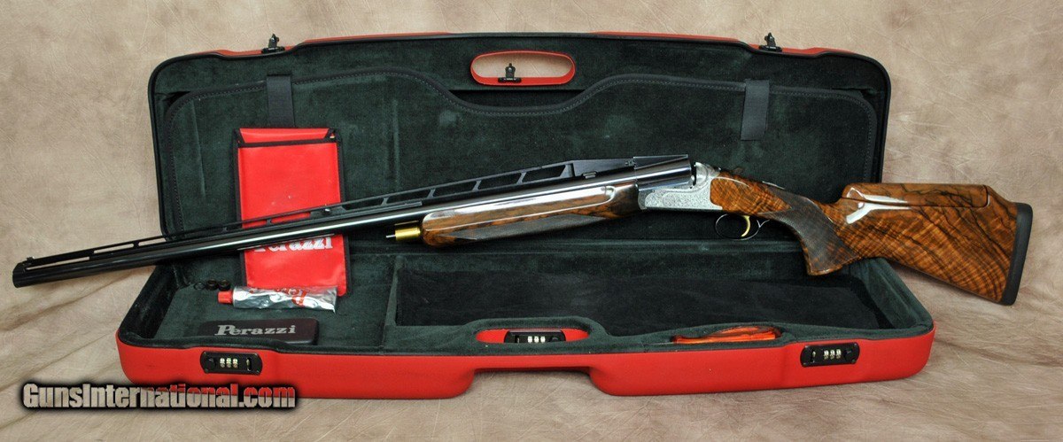 Description: Pre owned in excellent condition Perazzi TM9X SC3 Trap single. Features #100 pattern, drop out trigger with release by Kerry Allor. 34' fixed choke barrel (.032) 18.7 bore/ 1.450KG. Fully adjustable 4 notch rib. Highly figured SC3 stock with adjustable comb. Stock dimensions are; 1 1/2" x 1 1/2" x 2 1/2". Set includes fore end weight and factory hard case. Contact our Michigan location at 248-960-7262 for additional information. Refer to (851) MFG 2010 SOLD |