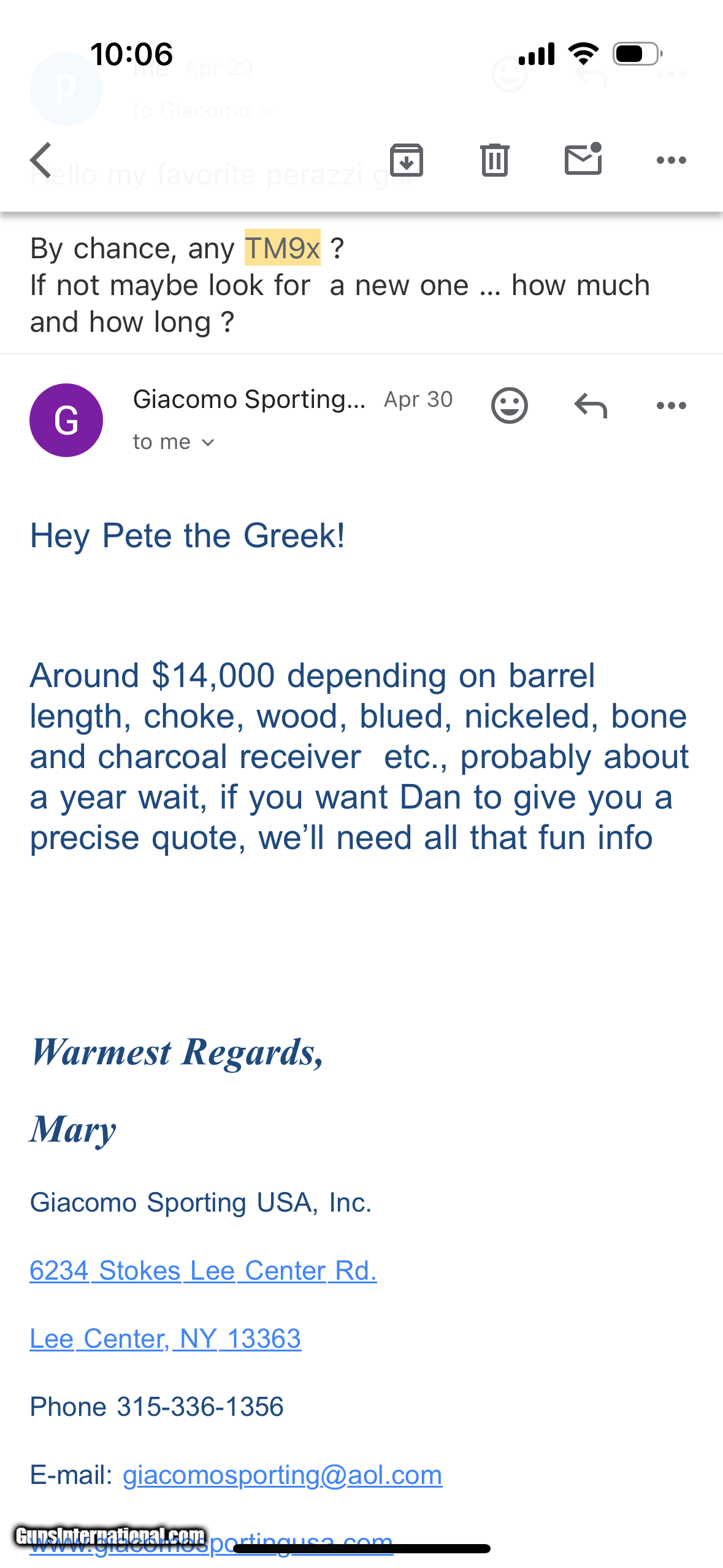 Description: Selling a very nice perazzi TM9X with a 35" single barrel.it has the desired nickel receiver ,upgraded wood with a 4-way adjustable comb and a gracoil system with the lop 14.5 fitted with a kickeez trap pad . The barrel has been tuned by Wilkinson that was a 1600$ UPGRADE ! . Choked Full . It's has a pull trigger , has not been ported. it has the adjustable 4 notch barrel ! if you want to buy this gun, it is now $14,000 brand new and a year weight. This thing is practically 100% doubt you'll find a better one if you can find one at all. comes with a Negrini case . SHIPPING 75$ NOT INTERESTED IN TRADES ****NO TRADES***** SOLD Shotgun Gauge: 12 Gauge Manufacturer: Perazzi Model: TM9X Barrel Length: 35” |