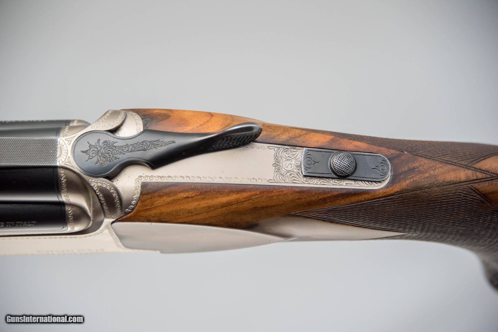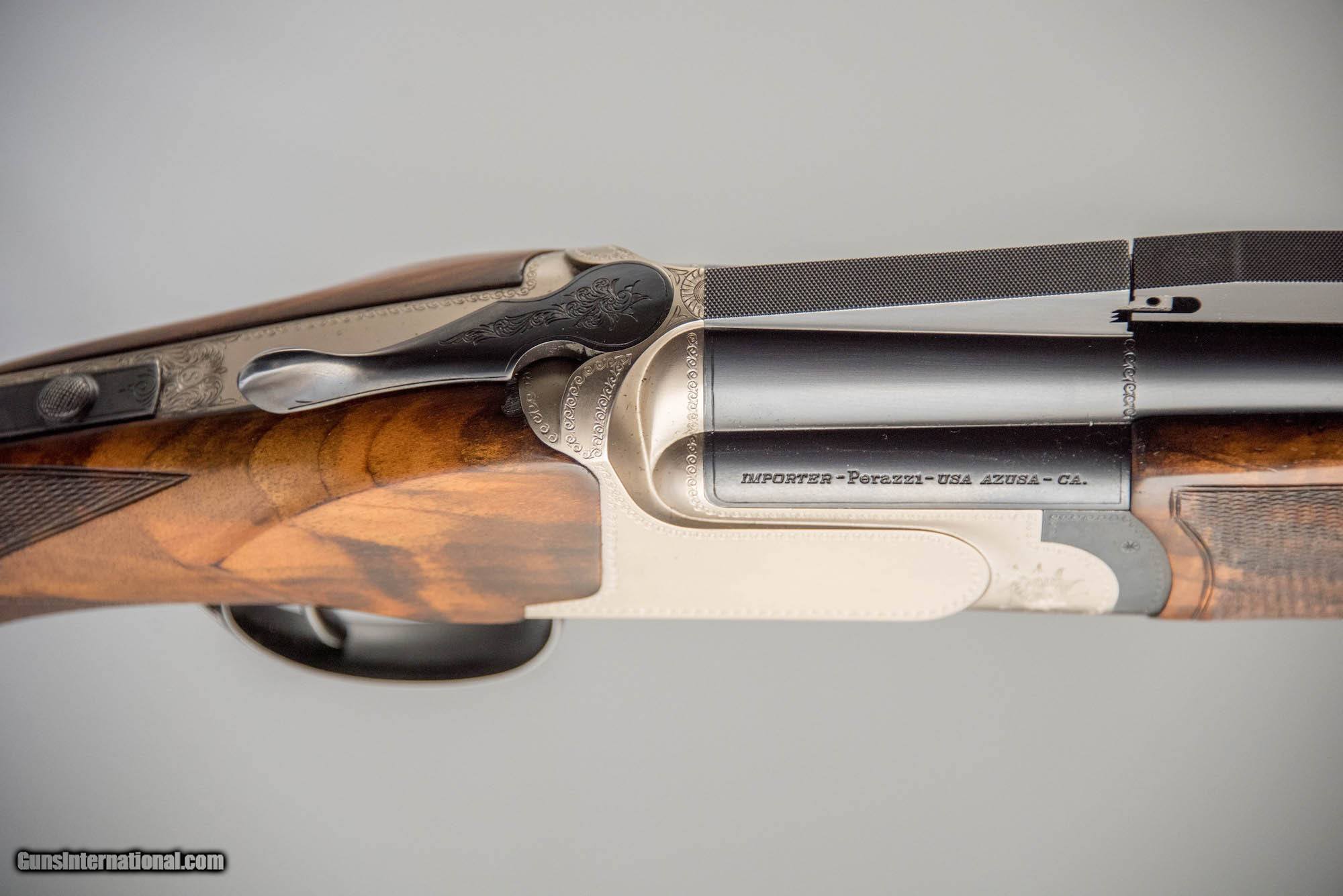 Description: For sale is a pre-owned Perazzi MX12/3 chambered in 12 gauge with 34 inch adjustable rib barrels. Barrel features 3 notches, tapered 7/16" x 9/32", with ventilated side ribs. Non removable, single selective trigger with coil spring. Stock has factory adjustable comb. Fixed chokes (.022 / .032), comes with Perazzi hard case manufactured by Negrini. Barrel and blueing as well as receiver are in 95%+ condition, smooth and shiny bores. Stock has some finish wear, which you can see from the photographs. LOP 14 1/2 inches. SOLD |