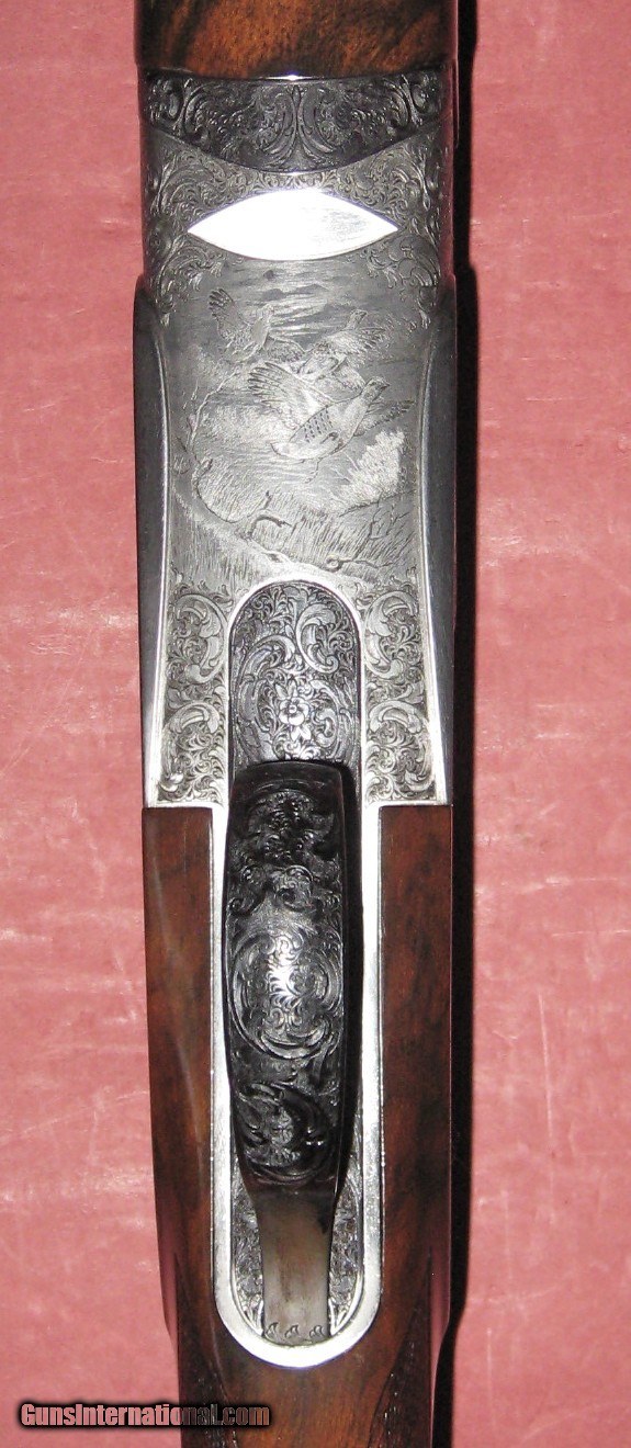 Description: Perazzi SCO sideplated 12 gauge sporter.Built in 1987,this gun has 271/2" barrels with Briley thinwall chokes.It has the flat sporting type rib.The engraving is signed Galeazzi and features partridge and pigeons.The gun is in excellent condition retaining 99% of the metal and wood finish.The stock dimensions are 14" LOP over a solid pad,11/2" at comb,and 21/4" at heel,and 1/16" cast off.The gun has been shot very little and locks up tightly with the top lever far to the right.The gun is cased in a Perrazzi case with chokes and accessories.A great value in a very high quality shotgun. SOLD Manufacturer: Perazzi Model: SCO sideplate Serial Number: 68439 Chambers: 23/4 Ejectors: yes Metal Condition: mint Wood Condition: excellent Bore Condition: mint Action: over under Triggers: single Stock Dimensions: 14"x11/2"x21/4' Butt Pad: recoil pad Weight: 7-10 Manufacture Date: 1987 Chokes: Briley thinwall |