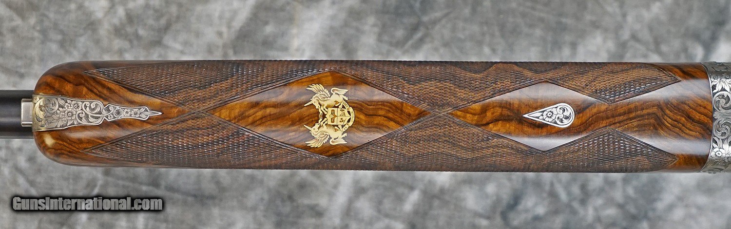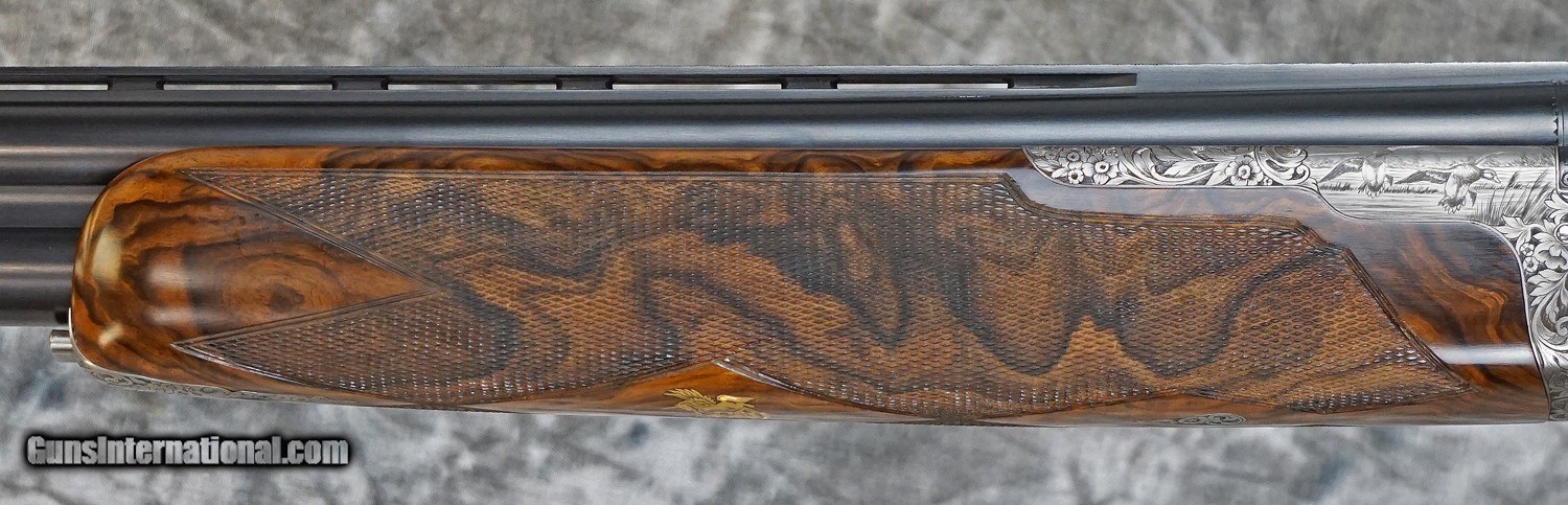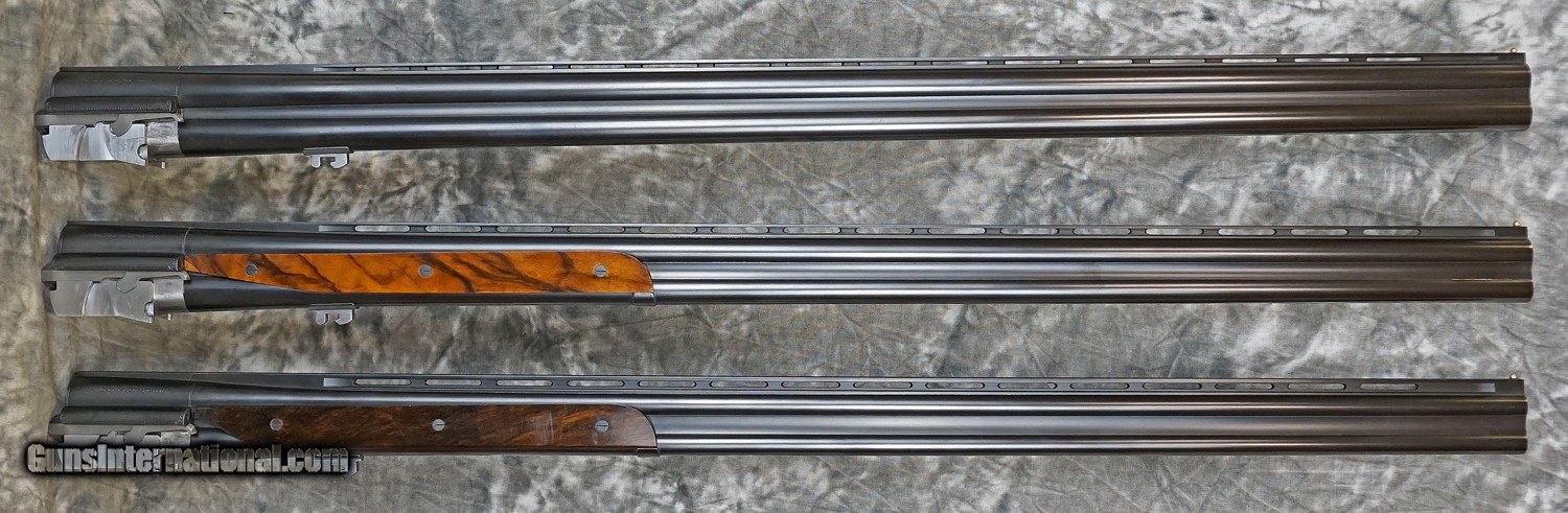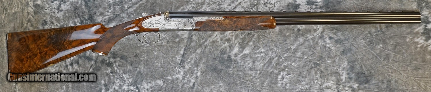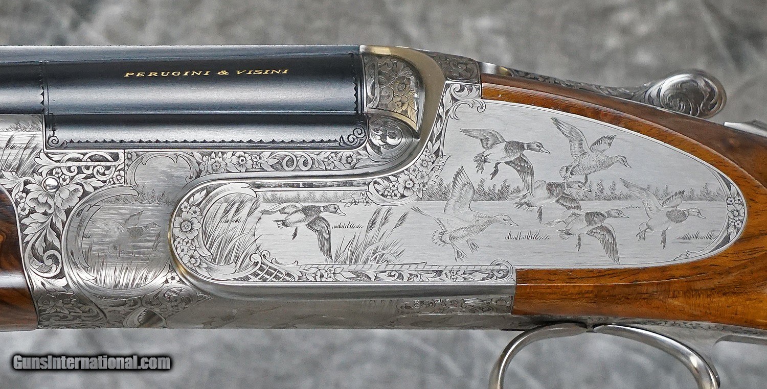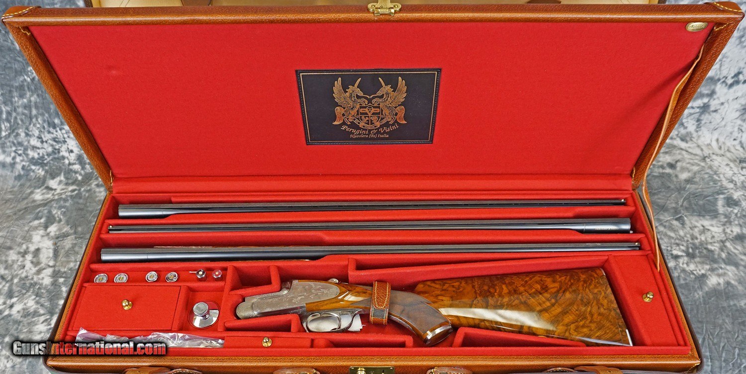 Description: Pre-Owned Perugini and Visini Maestro Extra Three Barrel Set 20GA/28GA/.410 Bore with 30" fixed choke (M/F) barrels, hand-filed ventilated game ribs with solid side-ribs. Coin finished action action with fully hand-engraved side-plates featuring highly detailed waterfowl, scrolls, additional portraits of waterfowl on top-lever, tangs, trigger group by Italian Master Engraver Claudio Tomasoni. Exhibition grade pistol grip game stock with skeleton grip cap, removable wooden skeleton butt plate and fully checkered game forearm. Gun is in unfired, as-new condition and includes factory presentation case. Consignment, ineligible for trade-ins. SOLD Shotgun Gauge: 20 Gauge, 28 Gauge, .410 Gauge |