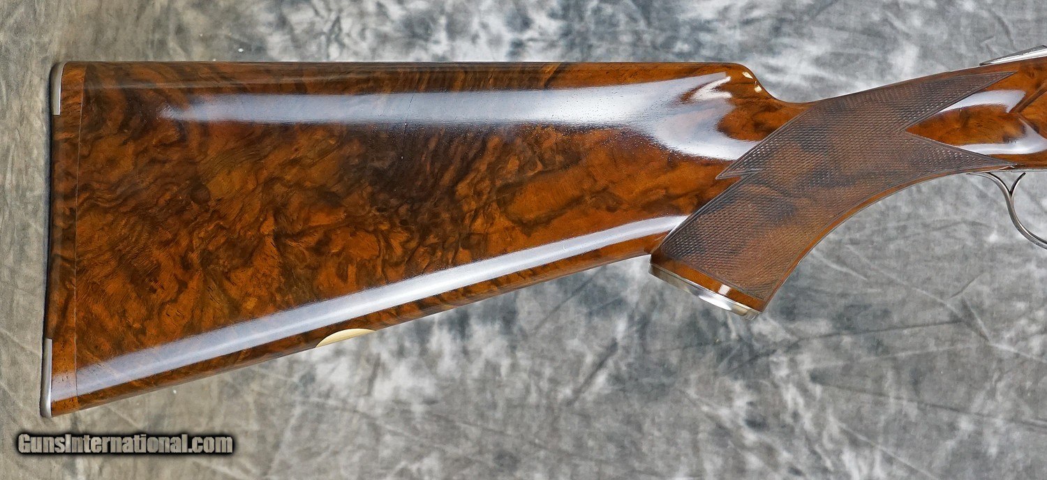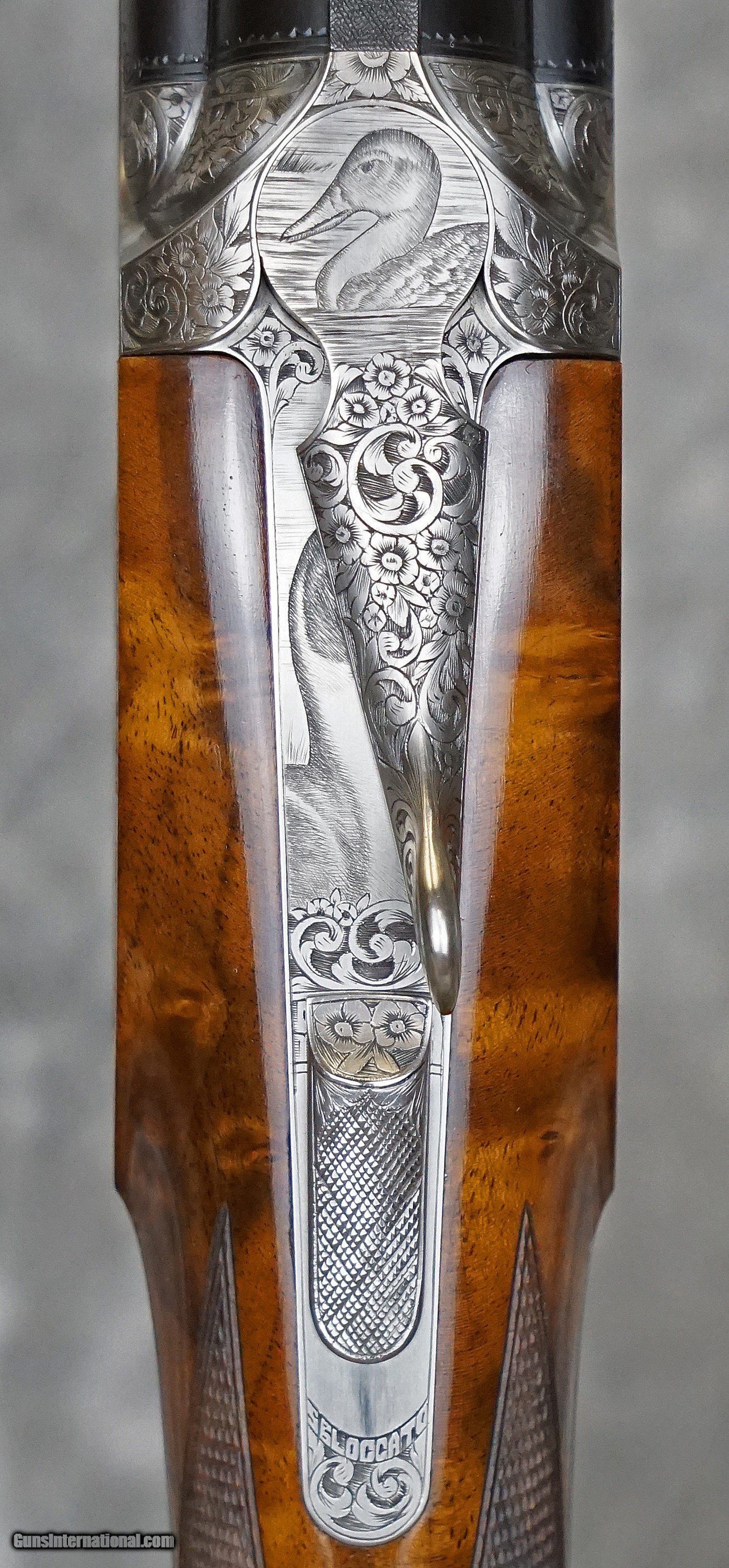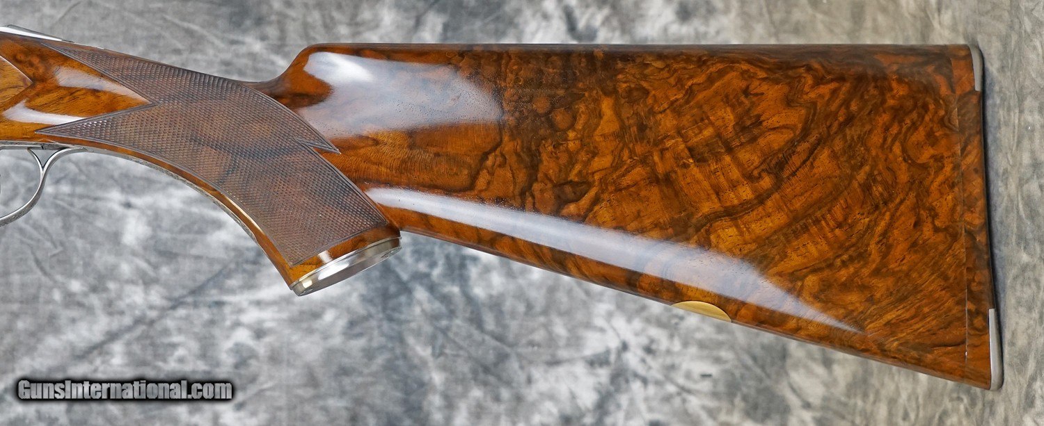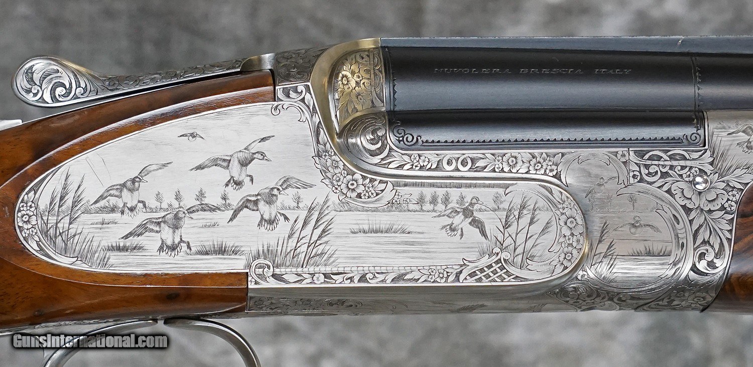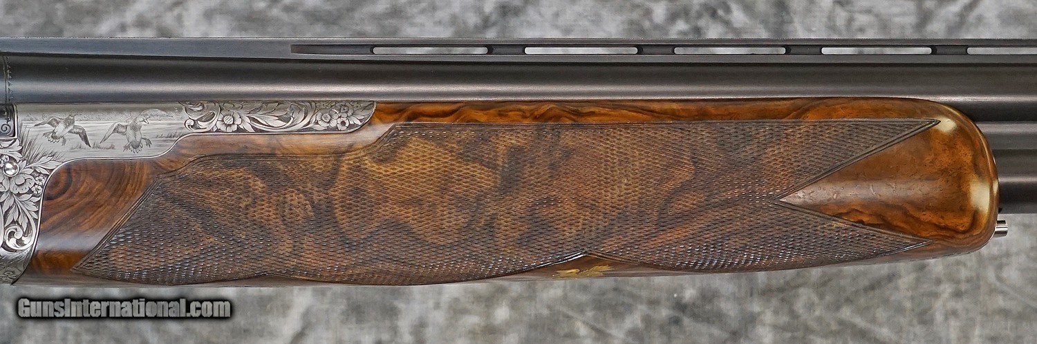 Description: Pre-Owned Perugini and Visini Maestro Extra Three Barrel Set 20GA/28GA/.410 Bore with 30" fixed choke (M/F) barrels, hand-filed ventilated game ribs with solid side-ribs. Coin finished action action with fully hand-engraved side-plates featuring highly detailed waterfowl, scrolls, additional portraits of waterfowl on top-lever, tangs, trigger group by Italian Master Engraver Claudio Tomasoni. Exhibition grade pistol grip game stock with skeleton grip cap, removable wooden skeleton butt plate and fully checkered game forearm. Gun is in unfired, as-new condition and includes factory presentation case. Consignment, ineligible for trade-ins. SOLD Shotgun Gauge: 20 Gauge, 28 Gauge, .410 Gauge |