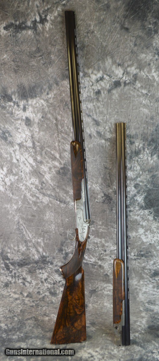 Description: Pre-Owned Perugini and Visini Maestro Sporting 20GA/28GA combo with 32" fixed choke (IC/M) barrels, hand filed 7x7 parallel rib. Featuring individual Boss style forearms featuring full coverage game scene and scroll engraving. Coin finished action featuring fine Game scenes and scrolls by the late Italian Master Claudio Tomasoni in outstanding detail. Outstanding factory Purdey style pistol grip stock to skeleton butt, long tang and grip cap. Exhibition grade stock has minor handling marks and minor signs of wear. Includes factory presentation case, tools. Consignment, ineligible for trade-ins. SOLD |
