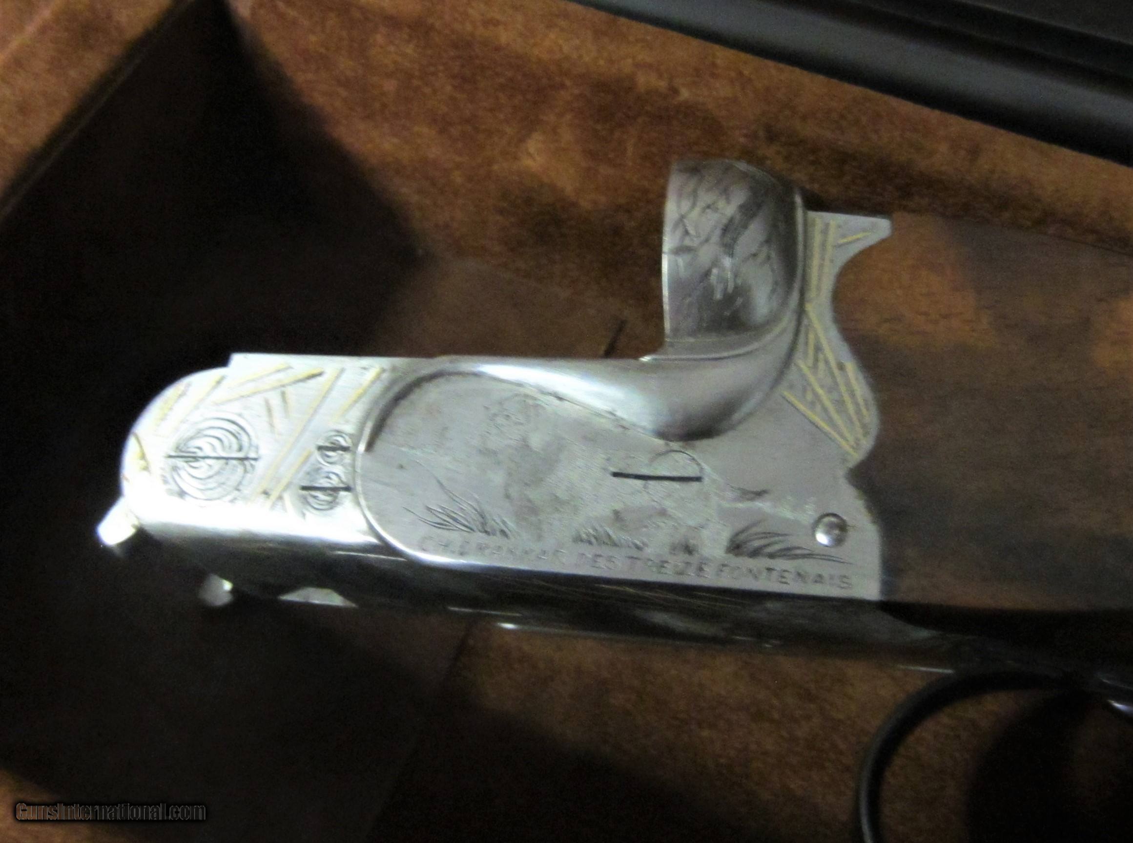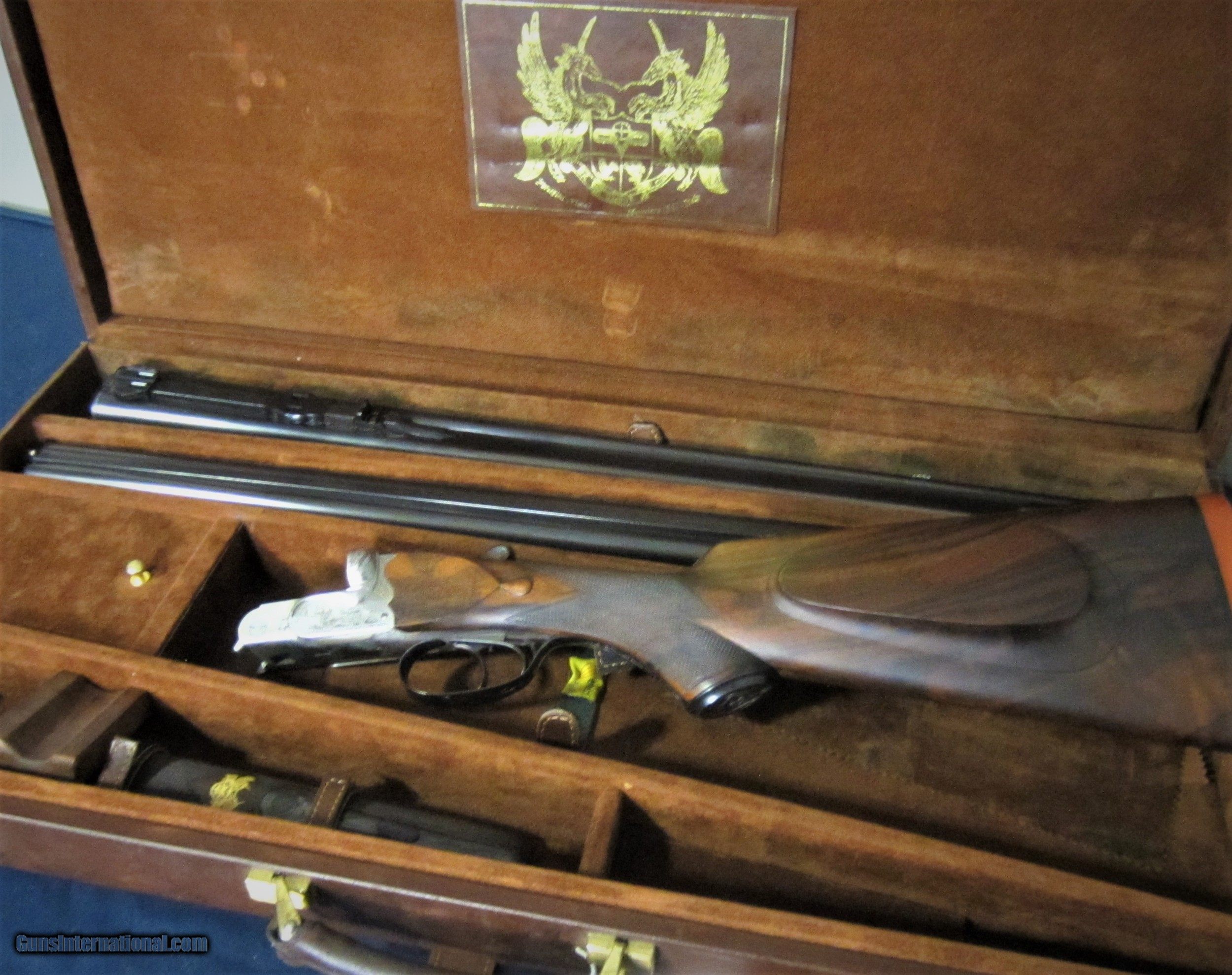 Description: Perugini & Visini side-by-side, double order of barrels, 20 gauge and 8x57 js express The Hanson weapon, double trigger with adjustable stecker on the first barrel, carries fine engravings made by Aldo Rizzini in 2003. The trigger guard bears the gold initials of the old owner. On the sides of the folders are engraved two Drahtharr, one on each side, male and female, which were the hunting dogs of the old owner. The weapon is presented in exemplary, perfect conditions with leather box.. Stock in walnut briar. The weapon is located in Italy, at the Caricat Militaria & Collezionismo Armory in Parma.(caricat.it) We have a correspondent in CT, Mr Rudy D Angelo, a retired policeman and private investigator who can vouch for our seriousness. (his telephone number is reserved so it will be released only after the negotiation has begun) We can ship with an Italian forwarder specialized in the transport of weapons, the buyer must send us any American documentation authorizing the import. Contact : infocaricat.it Phone 011-39-335-848-3073 SOLD Rifle Caliber: 8x57mm JS Shotgun Gauge: 20 Gauge |