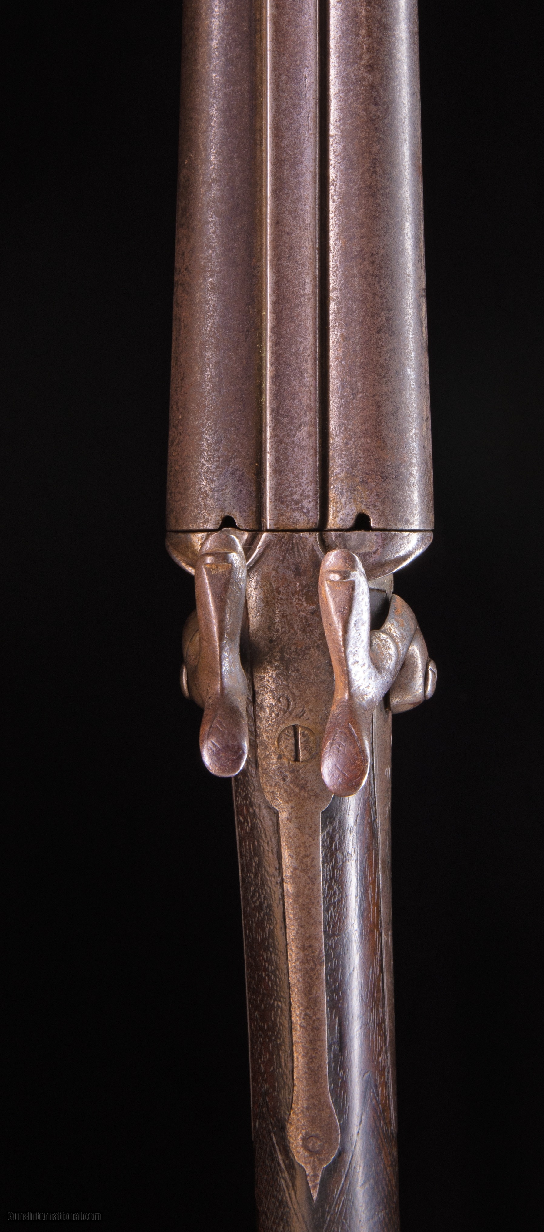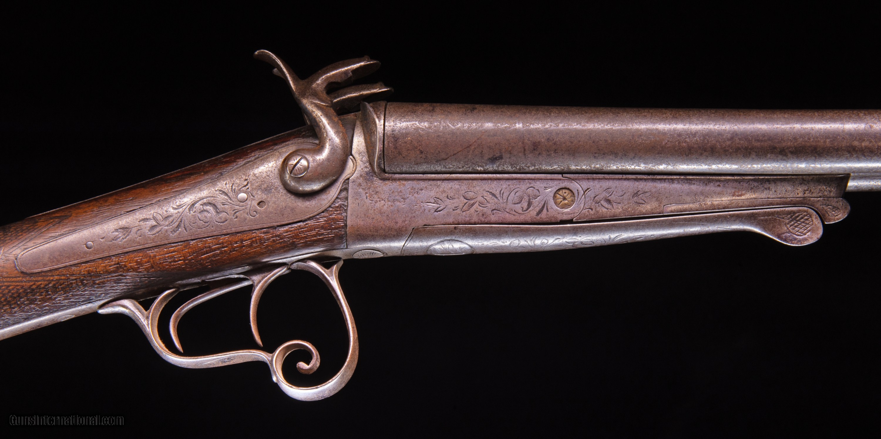 Description: Hammerguns - The pinfire shotgun was the first majorly marketed breech loading shotgun and were very successful for many years. This example due to pitting etc. should be used at this point as an example for the wall and the price reflects this. Price includes shipping but no returns on wall hanger guns. *** Note: To see this gun with high resolution photos and a zoom-in feature, go to the vintagedoubles main site and search for the gun ID: 5062 or browse the main site to see our full gun collection. SOLD Antique: Yes Manufacturer: French Pin Fire ~ A great example to put on the wall of the gun room or over the fireplace! Free shipping! Model: None Serial Number: NVM Ejectors: No Barrels: 30 Barrel Type: Damascus Action: Pin Fire Gauge Info: 16 gauge Stock Comb: 1 1/2 Stock Heel: 2 1/8 Stock Cast: 1/8 LOP: 13 7/8 with metal bu Weight: 6 lbs 5.5 oz Choke Left: Cyl Choke Right: Cyl Proof:Black: Black Powder Minimum Wall Thickness Left: NA Minimum Wall Thickness Right: NA |