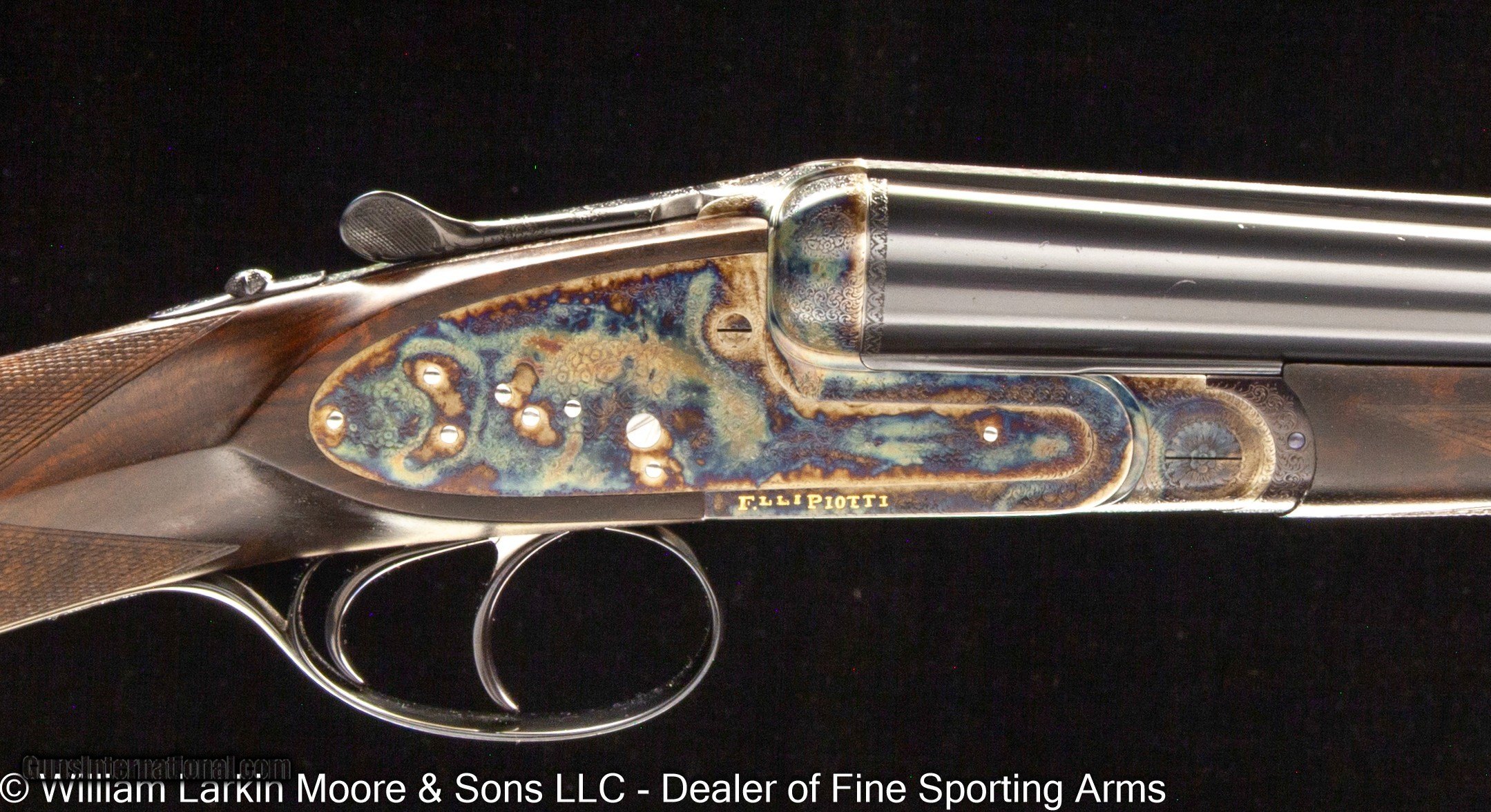 Description: ID #: 9274 Make F.LLI PIOTTI Model: KING Configuration: SXS Gauge / Caliber: 20 Price $: 32500 Serial #: 9885 Country of Origin: ITALY Barrel Length (in Inches): 29 Choke R/U: IC Choke L/O: M Trigger: DT Stock Configuration: STRAIGHT Forearm Type: SPLINTER Rib Type: CONCAVE RIB Receiver Finish: UPGRADED GERMAN CASE COLORS Engraving Type: EXTRA ENGLISH SCROLL AND ROSETTE Other Options: COCKING INDICATORS, PIOTTI GOLD PACKAGE, ARTICULATED TRIGGER, DIAMOND SHAPED GRIP, GOLD OVAL, UPGRADED TURKISH WALNUT, CASE Condition: EXC. + Weight: 6-3 Dimensions: DAC 1-1/2 DAH 2-1/4 LOP 15 CAST-OFF 1/4 Other Details: SPECIAL ORDER GUN William Larkin Moore & Sons LLC 16622 N 91st Street Suite 102-103 Scottsdale, AZ 85260 USA Tel or Text: 480-951-8913 Fax: 480-951-3677 Price: $32,500.00 Contact Seller |