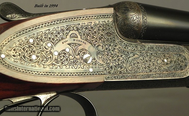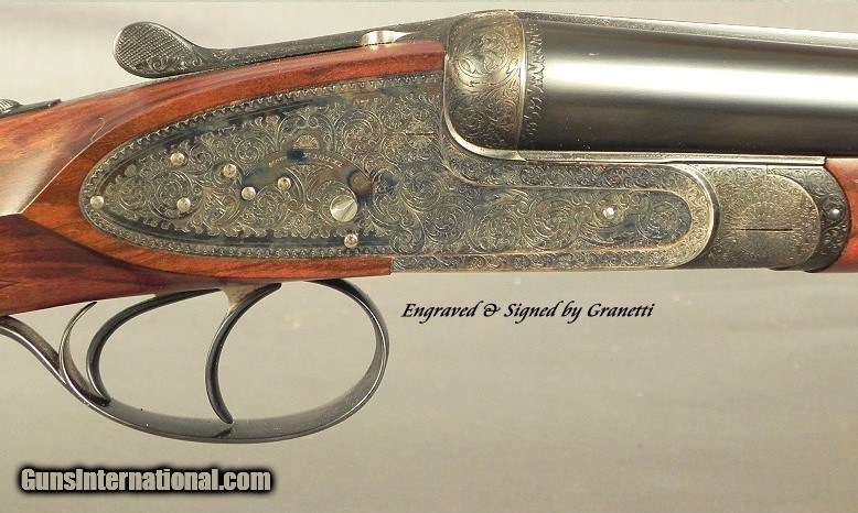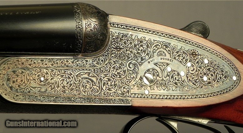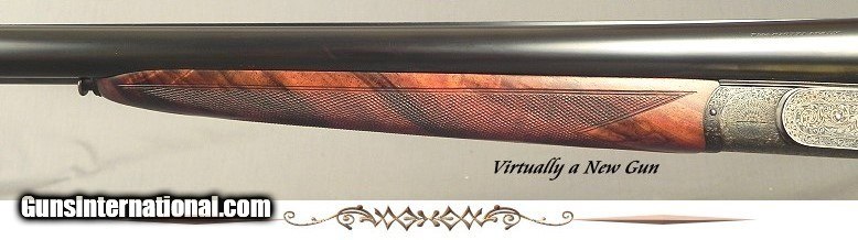 Description: PIOTTI 20 BORE MODEL KING I - VIRTUALLY as NEW - 28" CHOPPER LUMP BARRELS - VERY NICE DARK WOOD - MADE in 1994 - 100% CASE COLORS - VERY NICE ENGRAVING - 99.5% Overall Condition - 6 Lbs. 4 Oz. - Very Good Value - Splinter - Straight Hand at 14 3/4" LOP - 98% Engraving Coverage by Granetti #9206, Fratelli Piotti, Gardone Val Trompia, Brescia Italy: A 20 Bore Model King 1 Bar Action Sidelock Ejector Game Gun Built in 1994, 28" Chopper Lump barrels at .620 .006 & .013" (Imp. Cyl. & Mod.), 3" original chambers, KG 1,140 weight barrels, Concave matted top rib, Double triggers with the front articulated, Rolled trigger guard edge for the right hand, Splinter forend with an Anson release, Straight hand stock at 14 3/4 x 1 9/16 x 2 3/8" over a 100% full face checkered butt, Neutral stock, 6 lbs. 4 oz., 98% coverage of small scale H&H Royal Scroll by Granetti on a case color hardened frame, Very nice dark wood, It has 100% original case colors, The original barrel blue at 100%, The original stock finish at 99%, The checkering is at 100%, The barrels inside and out remain as new. This Piotti quality piece has 3 retaining screws on key screws on both the trigger guard and inside the forend. The piece has great balance and points like a dream. This super 20 Bore Game Gun for all intents and purposes is like new and has an overall appearance of never being hunted. Here is another Classic game gun, with the proper size action body with the correct weight, for 20 Bore gunning by one of the leading gunmaking firms in the world. This piece will remain a treasure forever. Shotgun Gauge: 20 Gauge Manufacturer: Piotti Serial Number: 9206 Condition: Like NEW Price: $24,500.00 Contact Seller |