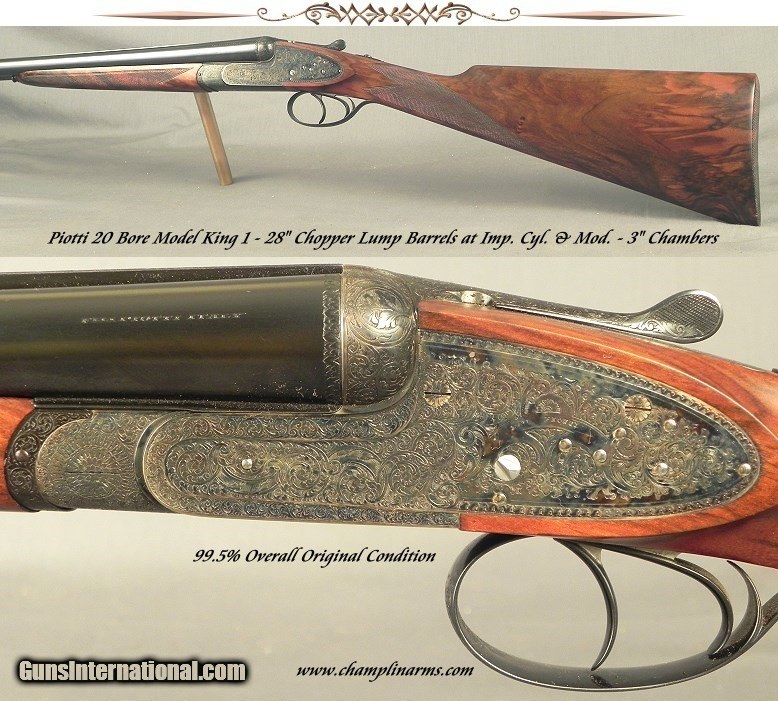 PIOTTI 20 BORE MODEL KING I - VIRTUALLY as NEW - 28" CHOPPER LUMP BARRELS - VERY NICE DARK WOOD - MADE in 1994 - 100% CASE COLORS -VERY NICE ENGRAVING