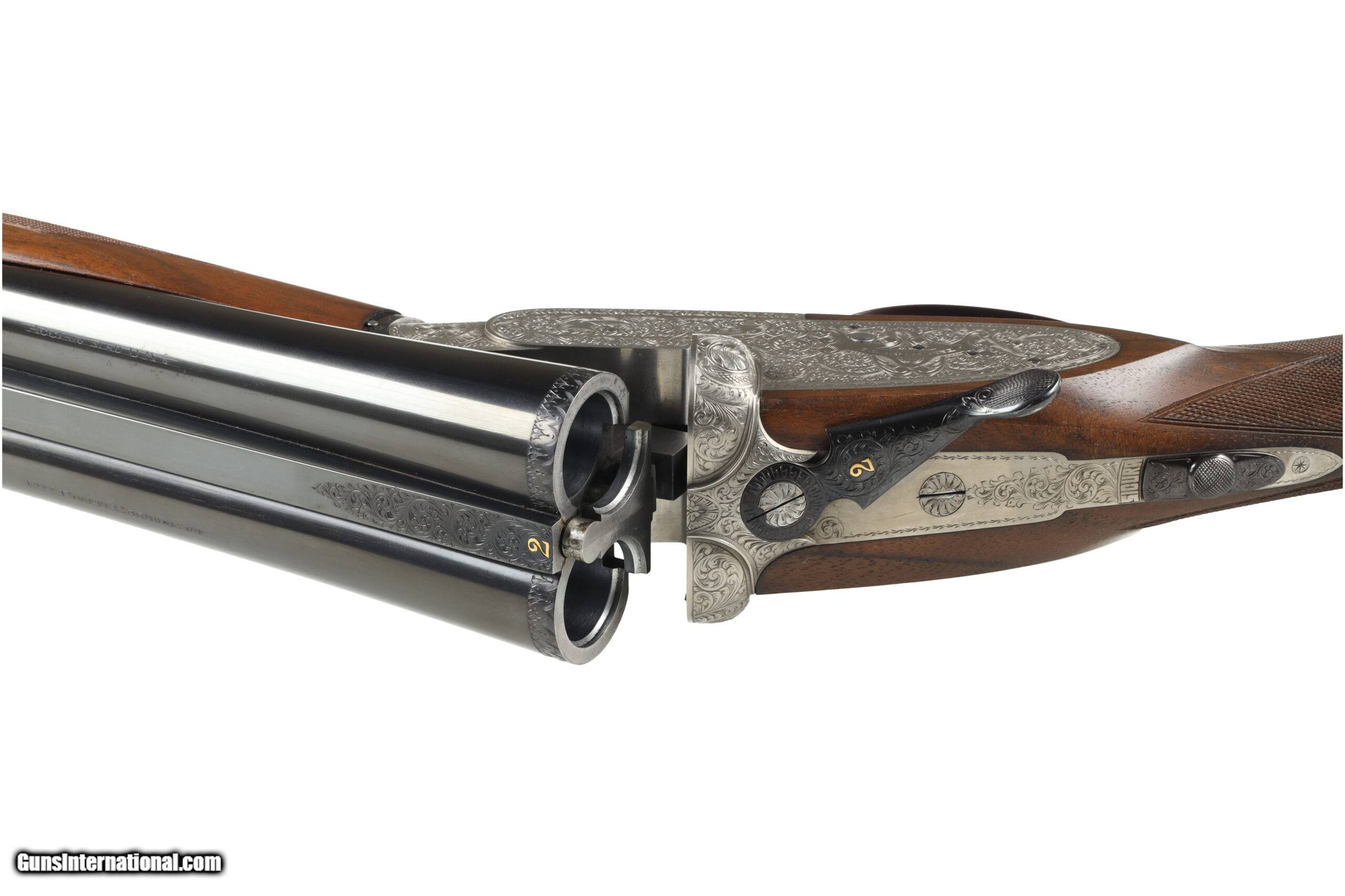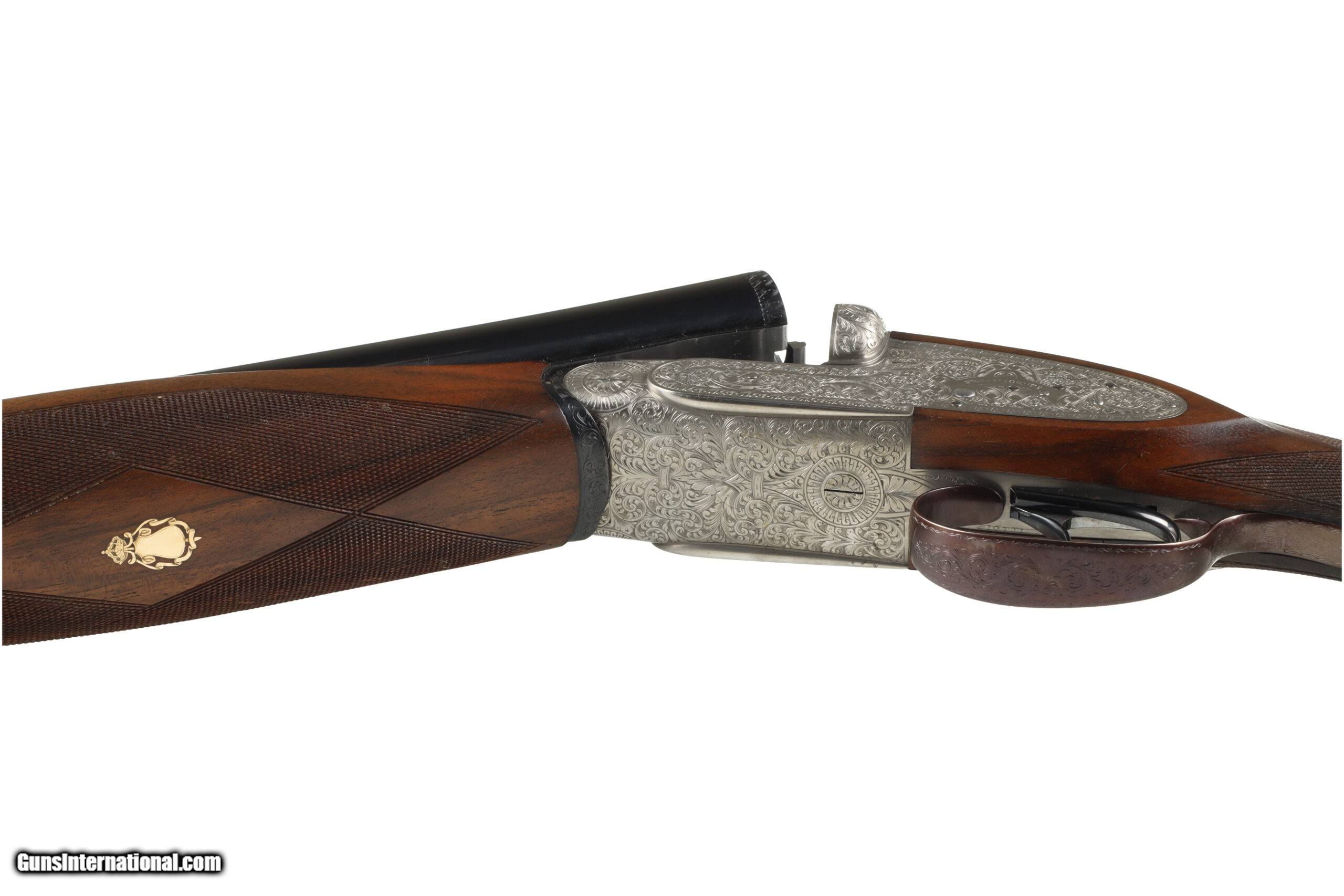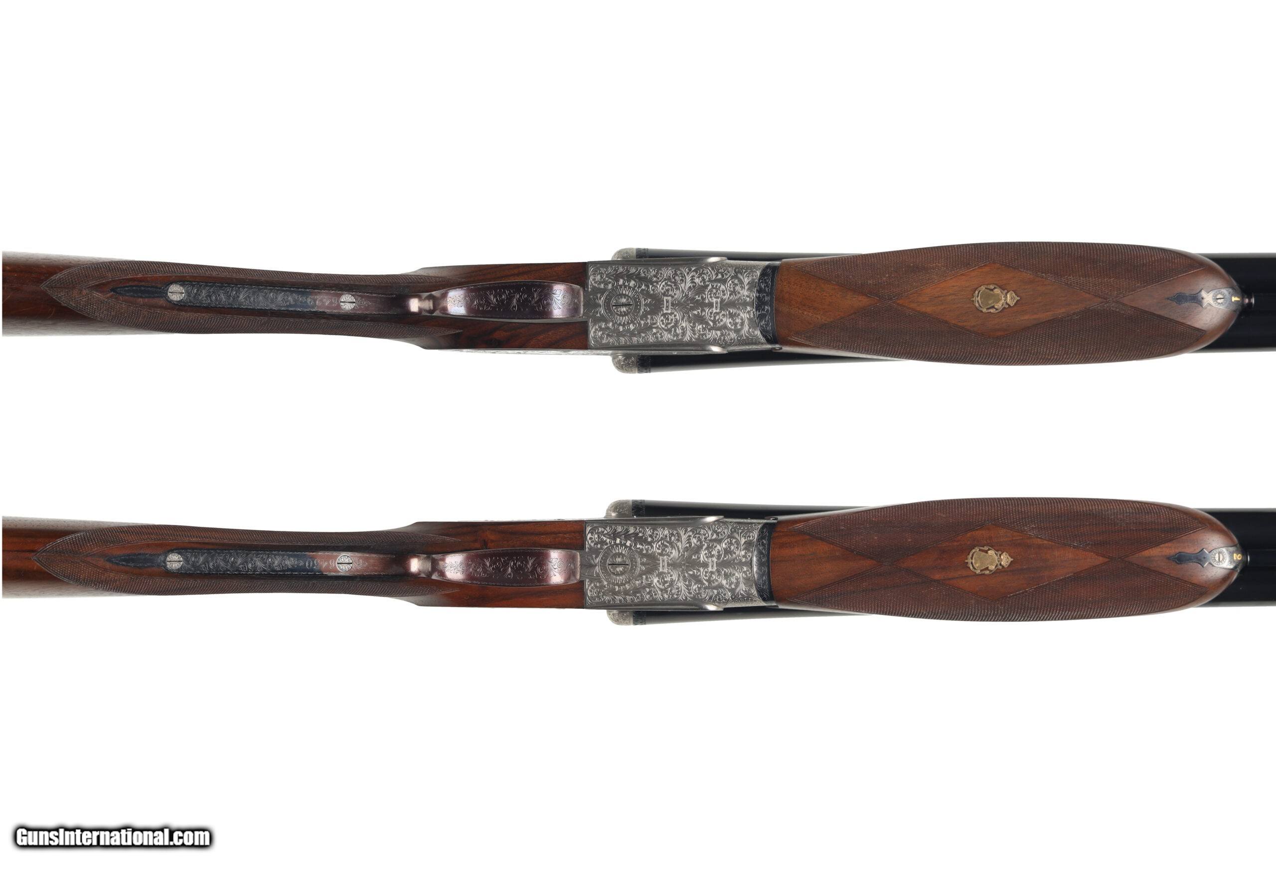 Description: This Beautiful pair of Piotti King S/S shotguns is in very good overall condition, with might to moderate wear. Much of the wear is on the # 1 gun, mostly consisting of tight bumps and scratches on the stocks, as well as a small split forming behind the right lock plate. Manufactured in: Italy Hand: Right Hand Action Finish: Engraved Metal Finish: Original Barrel Length: 27 1/2" Barrel Condition: Very Good Stock Finish: Original Stock Condition: Good Type of Butt: Checkered Wood Grip: Straight Grip Forend: Checkered Beavertail Cast Amount: 3/8" Manufacturer: Piotti Model: King Chambers: 2 3/4 Ejectors: Yes Condition: Preowned Metal Condition: Very Good Action: Side by Side Triggers: Double Gauge: 12 Gauge Stock Comb: 1 3/8 Stock Heel: 2 3/8 Stock Cast: Off Fore End: Checkered Beavertail LOP: 14 1/2 Rib: Concave Finish: Original Weight: 6.7 lbs Chokes: IM/XF Case: Aluminum Case Price: $19,000.00 Contact Seller |