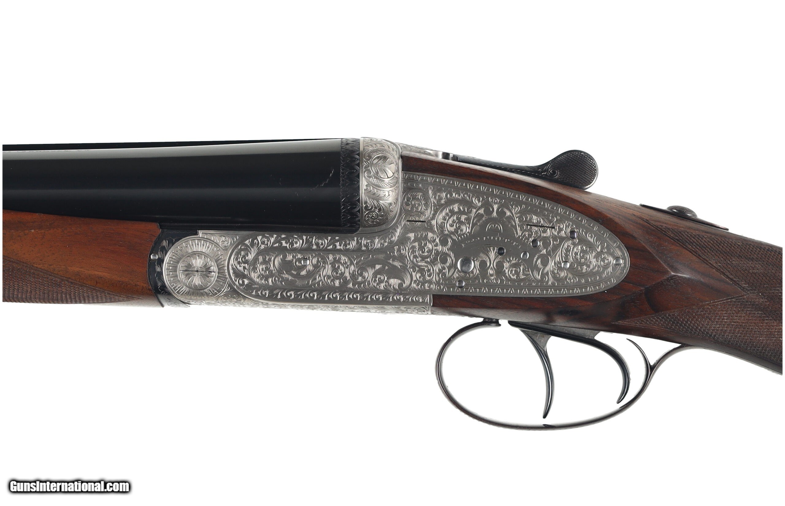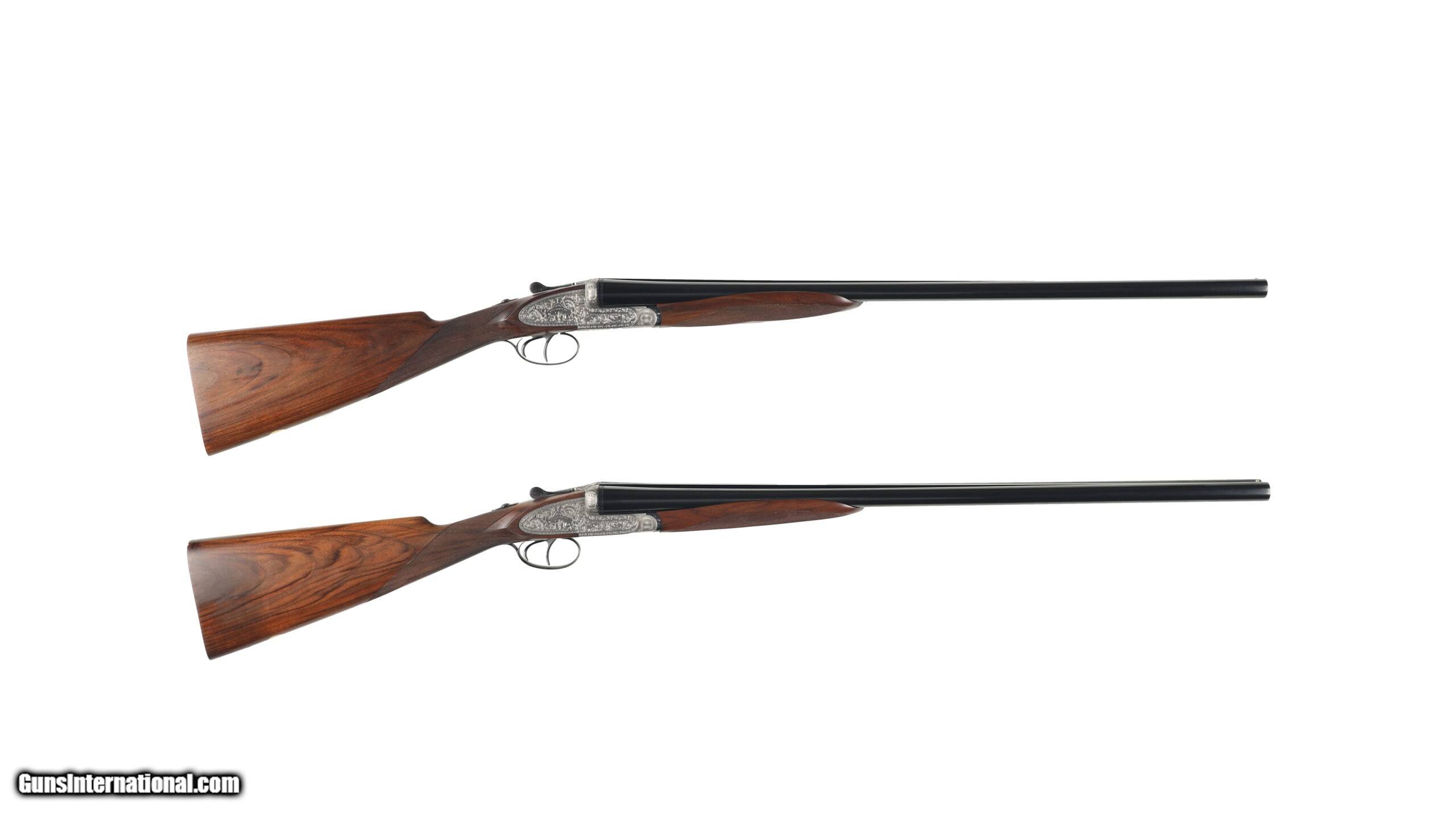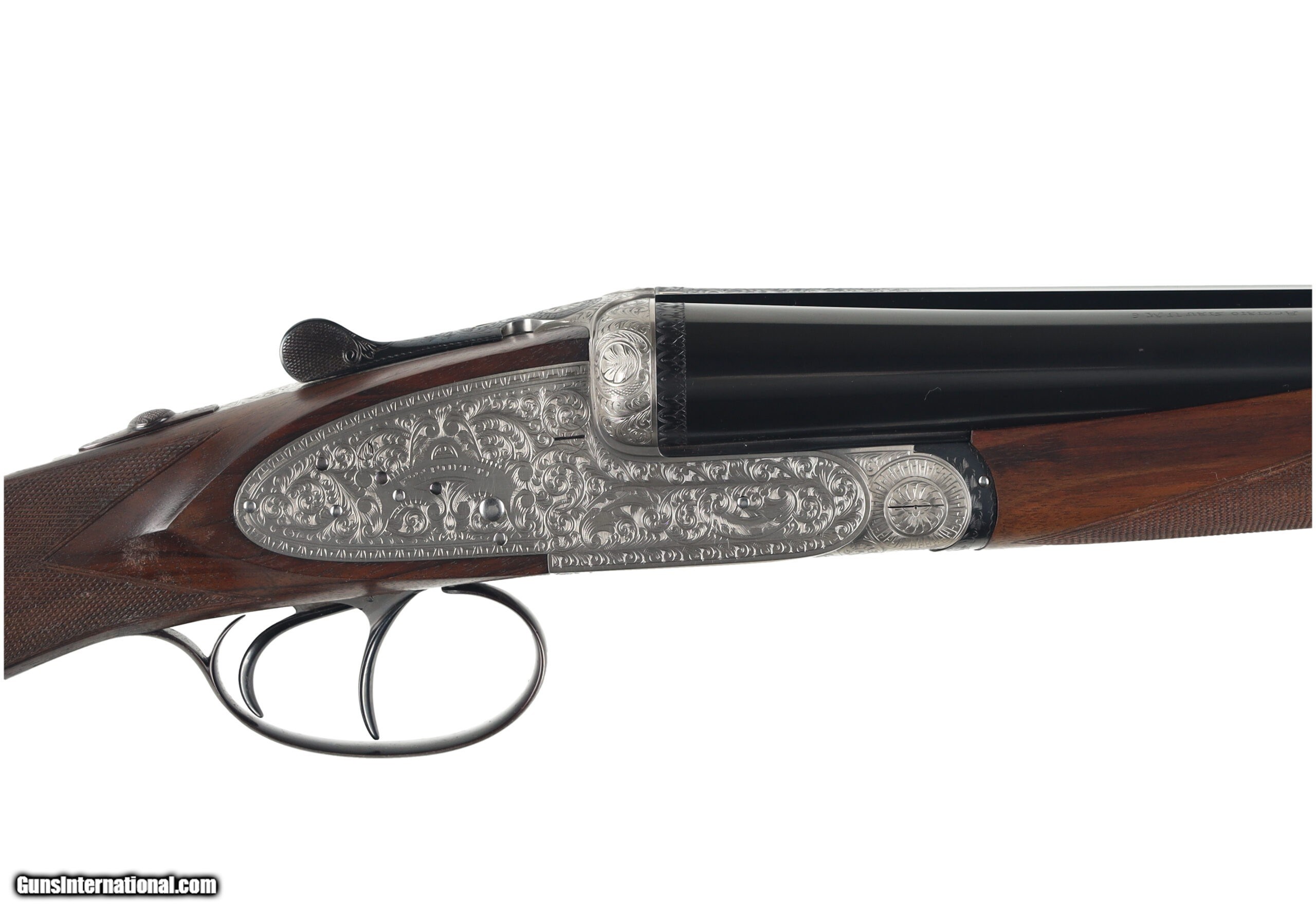 Description: This Beautiful pair of Piotti King S/S shotguns is in very good overall condition, with might to moderate wear. Much of the wear is on the # 1 gun, mostly consisting of tight bumps and scratches on the stocks, as well as a small split forming behind the right lock plate. Manufactured in: Italy Hand: Right Hand Action Finish: Engraved Metal Finish: Original Barrel Length: 27 1/2" Barrel Condition: Very Good Stock Finish: Original Stock Condition: Good Type of Butt: Checkered Wood Grip: Straight Grip Forend: Checkered Beavertail Cast Amount: 3/8" Manufacturer: Piotti Model: King Chambers: 2 3/4 Ejectors: Yes Condition: Preowned Metal Condition: Very Good Action: Side by Side Triggers: Double Gauge: 12 Gauge Stock Comb: 1 3/8 Stock Heel: 2 3/8 Stock Cast: Off Fore End: Checkered Beavertail LOP: 14 1/2 Rib: Concave Finish: Original Weight: 6.7 lbs Chokes: IM/XF Case: Aluminum Case Price: $19,000.00 Contact Seller |