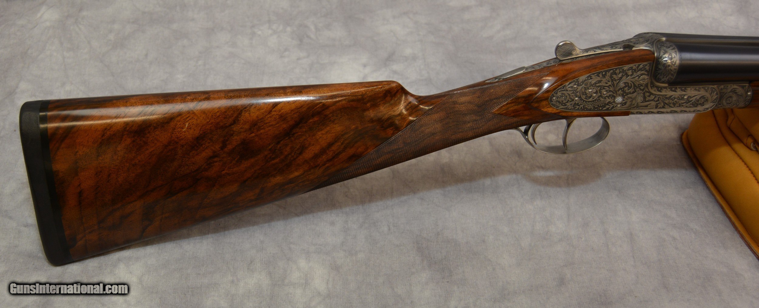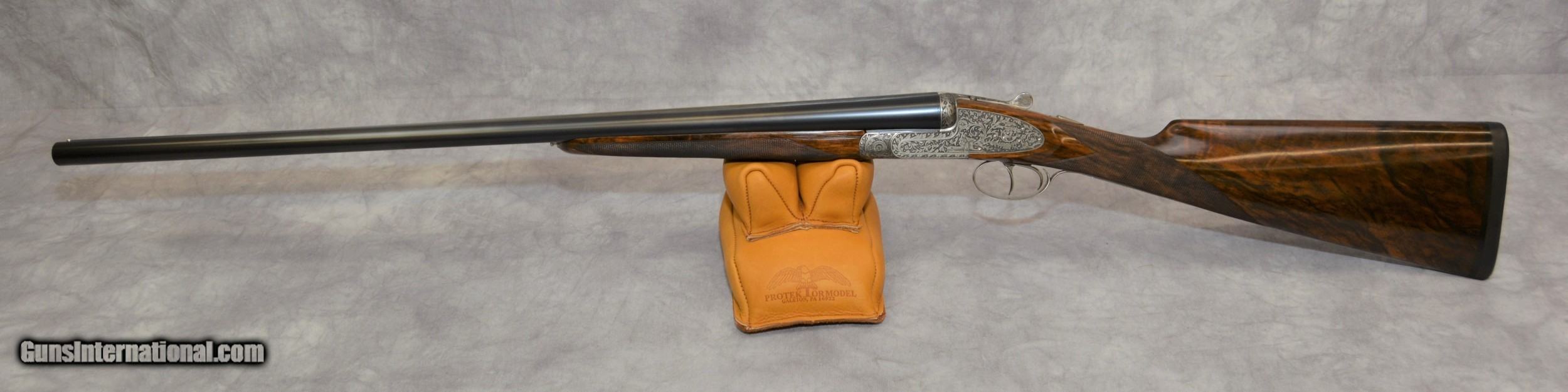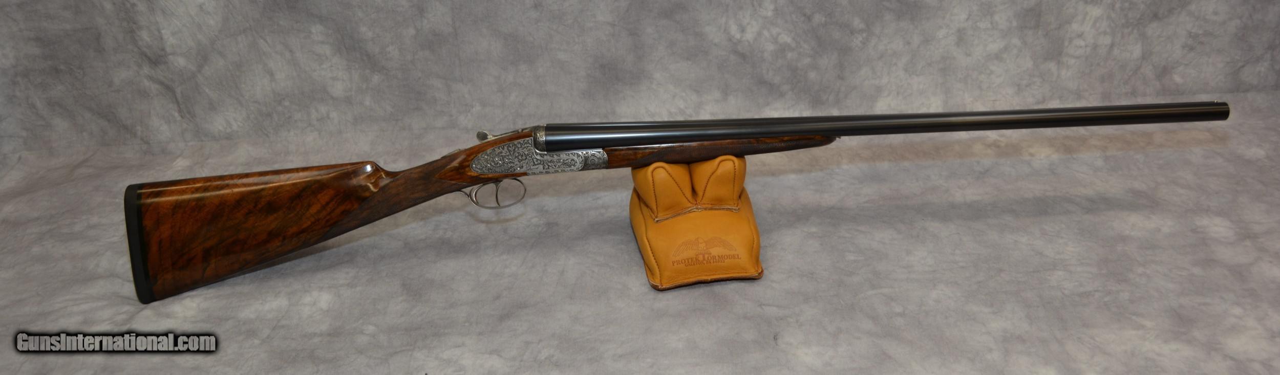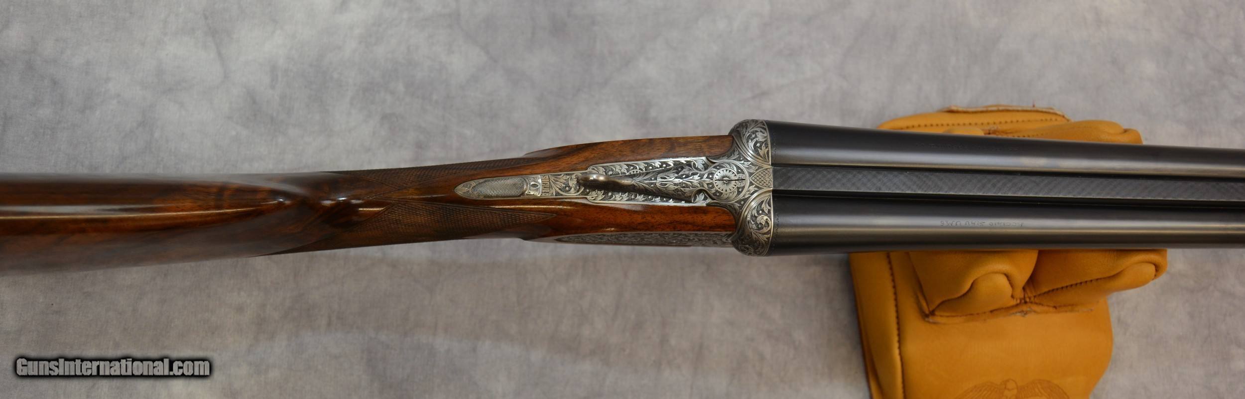 Description: Piotti King 12ga Cole Fine Guns of San Antonio presents for your favorable consideration this Piotti King Grade 12 ga SXS shotgun, serial # 6321. Custom ordered with 30-inch barrels and dual triggers. The bores are excellent plus. The barrels have a flat cross hatched rib which tapers gracefully. This shotguns receiver has been embellished with deep relief engraving. Another fantastic canvas displaying the art and skills of the late Claudio Tomasoni. LOP from the edge of the Decellerator pad is 15” to the rear 16 to the front. Drop at Comb is 1 3/8” at Heel is 1 7/8. The stock is another fine example of high-grade walnut, straight of grip in the English style. This shotgun locks up like a vault. A testament to the quality and efforts of the craftsmen who built it. Our newest Cole Fine Gun and Gunsmithing location is now open in San Antonio Texas at the National Shooting Center (NSC), 5931 Roft Rd. We are located on Vendors row Unit 31. Our hours are Wednesday through Saturday 9:30 to 5:30. If your schedule should prohibit you from coming in during our posted hours, please allow us to make ourselves available other days and times by appointment. Do not hesitate to call Tobias at 210-906-0857 if you require an alternative time to view our inventory. SOLD Manufacturer: Piotti Model: King Serial Number: 6321 Bore: excellent Chambers: 2 3/4 inch Ejectors: Automatic Condition: 99.5% Metal Condition: 99% Wood Condition: 99.9% Bore Condition: Excellent Mint Barrels: 30 Barrel Type: Steel Action: Break open Triggers: Double Gauge Info: 12 LOP: 15-16 inchs Rib: Tapered Solid Weight: 7lbs 6 ounces Choke Left: mod Choke Right: full Engraving: Claudio Tomasoni Case: Leather Item Location: San Antonio Texas |