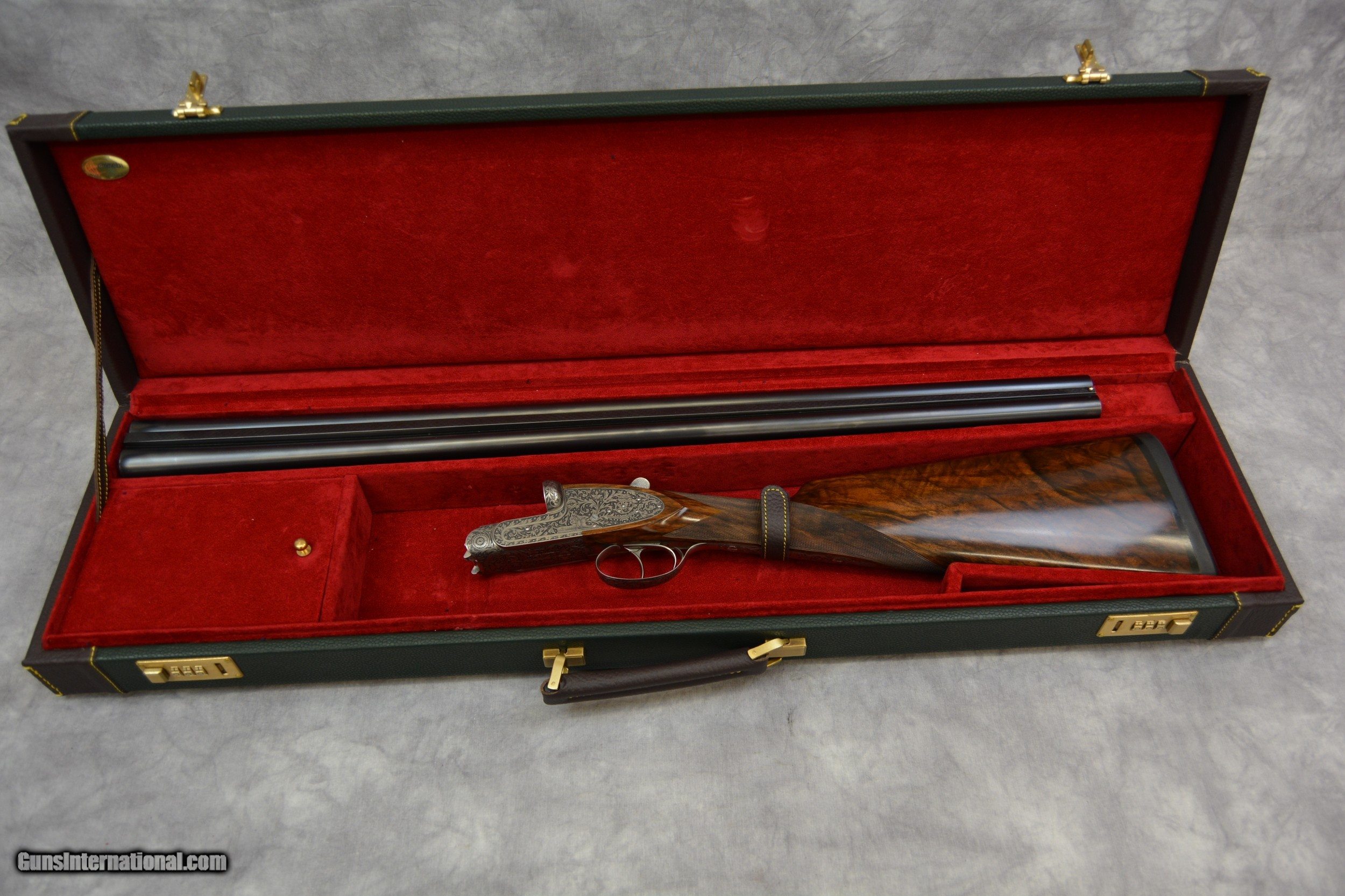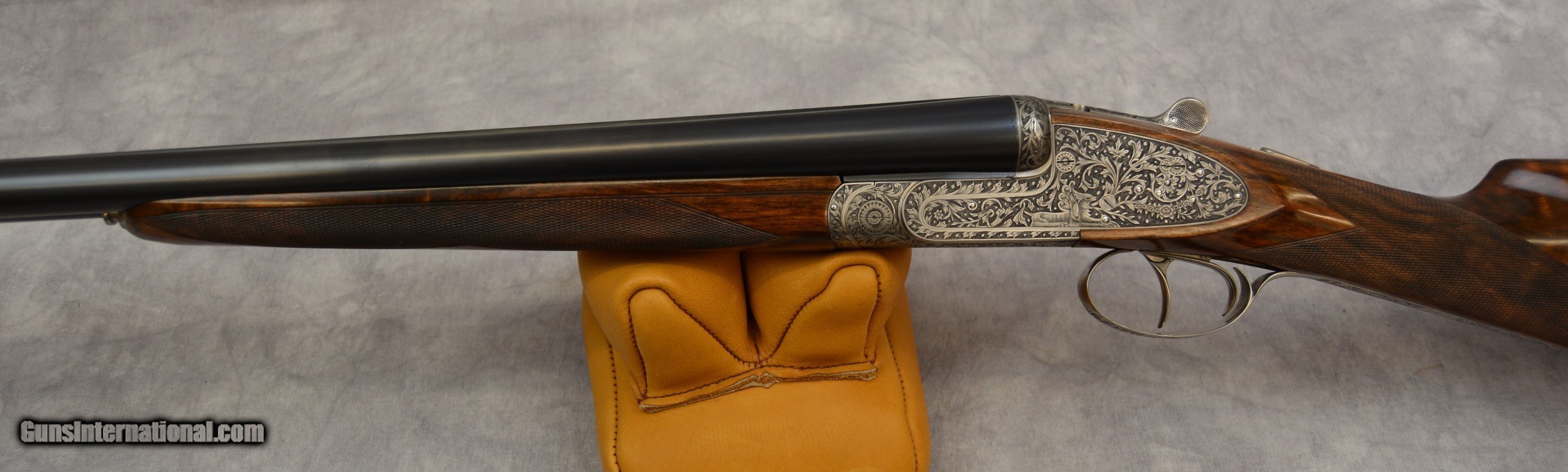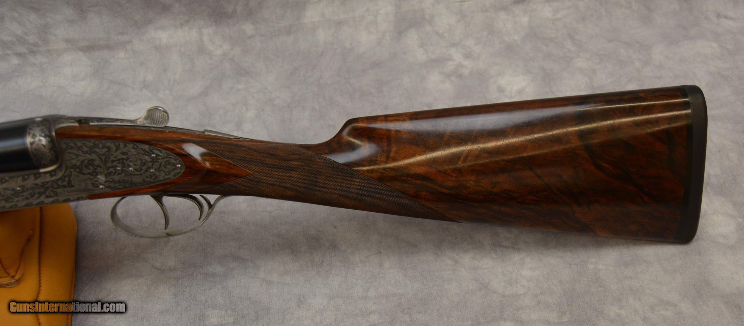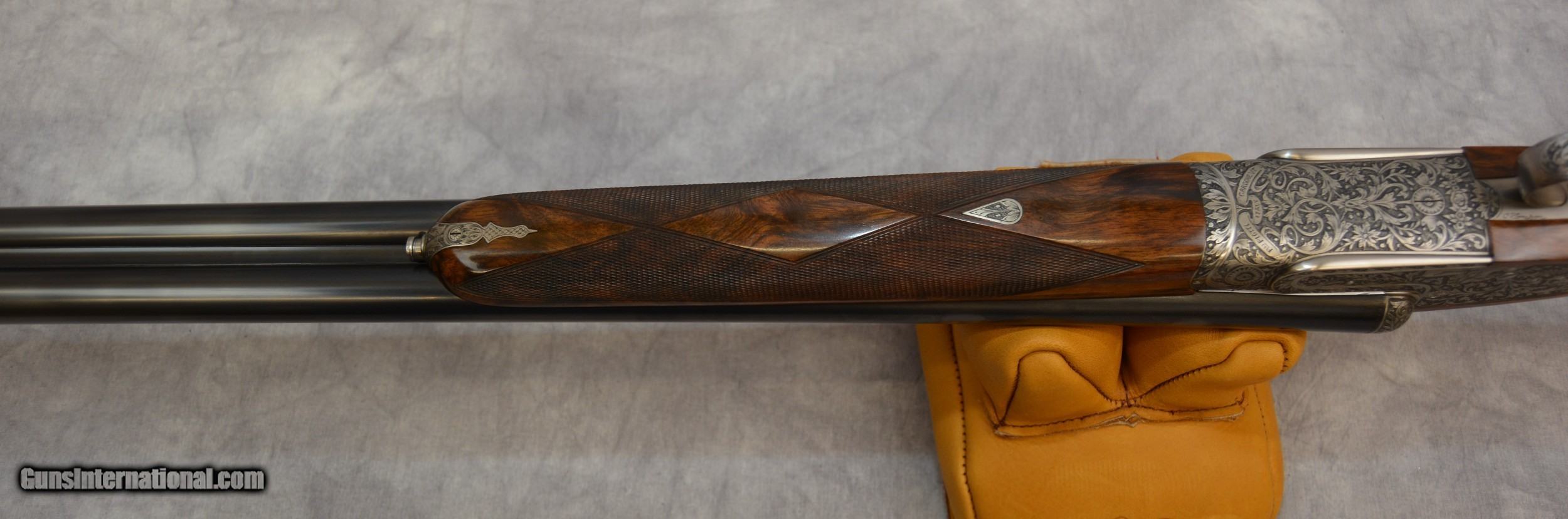 Description: Piotti King 12ga Cole Fine Guns of San Antonio presents for your favorable consideration this Piotti King Grade 12 ga SXS shotgun, serial # 6321. Custom ordered with 30-inch barrels and dual triggers. The bores are excellent plus. The barrels have a flat cross hatched rib which tapers gracefully. This shotguns receiver has been embellished with deep relief engraving. Another fantastic canvas displaying the art and skills of the late Claudio Tomasoni. LOP from the edge of the Decellerator pad is 15” to the rear 16 to the front. Drop at Comb is 1 3/8” at Heel is 1 7/8. The stock is another fine example of high-grade walnut, straight of grip in the English style. This shotgun locks up like a vault. A testament to the quality and efforts of the craftsmen who built it. Our newest Cole Fine Gun and Gunsmithing location is now open in San Antonio Texas at the National Shooting Center (NSC), 5931 Roft Rd. We are located on Vendors row Unit 31. Our hours are Wednesday through Saturday 9:30 to 5:30. If your schedule should prohibit you from coming in during our posted hours, please allow us to make ourselves available other days and times by appointment. Do not hesitate to call Tobias at 210-906-0857 if you require an alternative time to view our inventory. SOLD Manufacturer: Piotti Model: King Serial Number: 6321 Bore: excellent Chambers: 2 3/4 inch Ejectors: Automatic Condition: 99.5% Metal Condition: 99% Wood Condition: 99.9% Bore Condition: Excellent Mint Barrels: 30 Barrel Type: Steel Action: Break open Triggers: Double Gauge Info: 12 LOP: 15-16 inchs Rib: Tapered Solid Weight: 7lbs 6 ounces Choke Left: mod Choke Right: full Engraving: Claudio Tomasoni Case: Leather Item Location: San Antonio Texas |