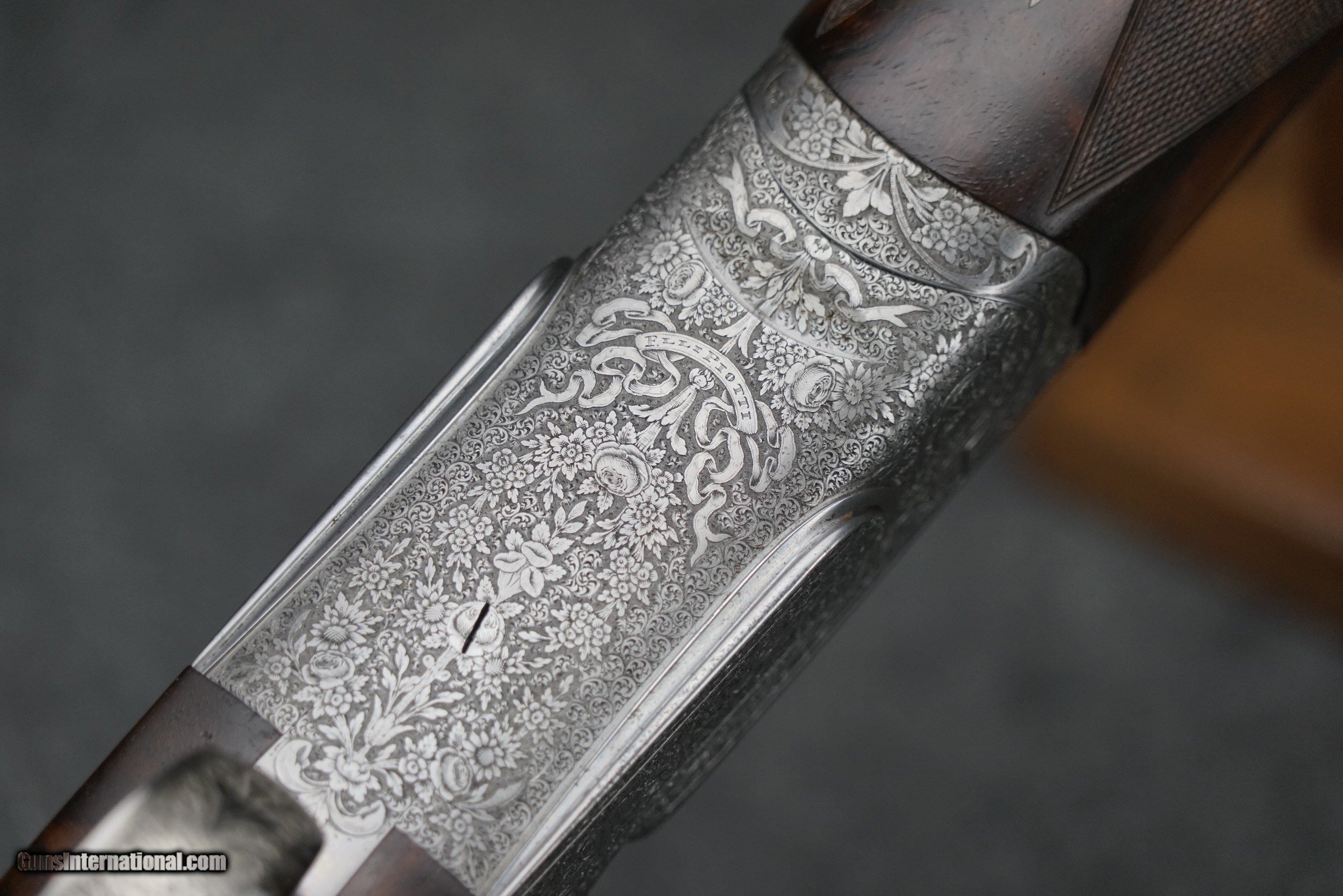 Description: Piotti King Two Barrel Set - 12 GA. 28" and 30" Barrels! High Condition. Stunning Engraving. Interchangable Chokes In Both Barrels. Cased! 14 chokes included. SOLD Shotgun Gauge: 12 Gauge Manufacturer: Piotti Model: King Barrel Length: 28" And 30 Chambers: 2 3/4 Ejectors: Yes Condition: 98% Triggers: Single Stock: Round Knob Stock Comb: 1 1/2 Stock Heel: 2 1/4 Stock Cast: 1/8" Off Butt Pad: Leather LOP: 14 1/2 Rib: Solid Finish: Coin Weight: 8 POUNDS-7OZS. Choke Left: Multi Choke Right: Multi Case: Yes Motor Case Proof:Nitro: Yes |
