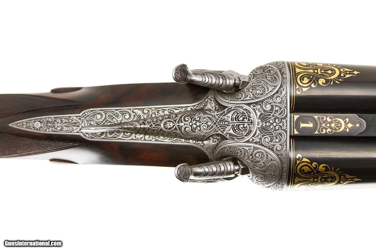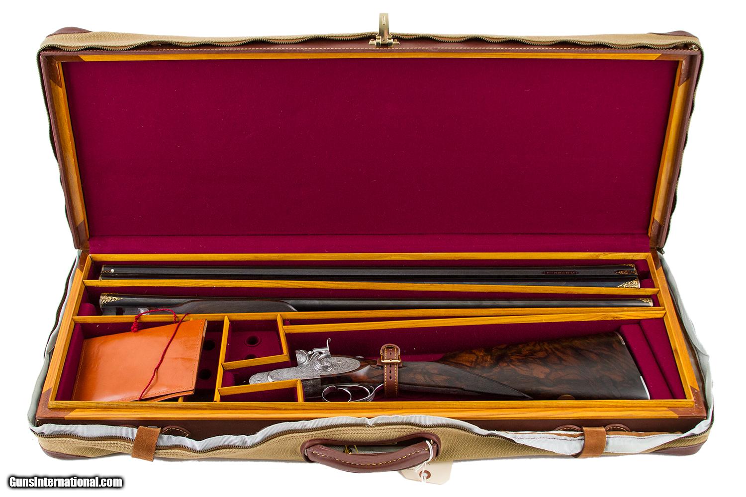 Description: TERZI ENGRAVED MADE 2004 THIS IS THE BEST HAMMER GUN I HAVE EVER SEEN BOTH SETS OF BARRELS ARE 30" 2 3/4 #1 IS 010 AND 018 #2 IS 032 AND 042 DOUBLE TRIGGER EXTRACTORS BEAVERTAIL FOREARM ENGLISH GRIP CHECKERED BUTT WITH ENGRAVED HEEL AND TOE PLATES OAK AND LEATHER CASE NEW CONDITION 7LBS 14 OZ X 2 X 1 7/16 X 15 SOLD |