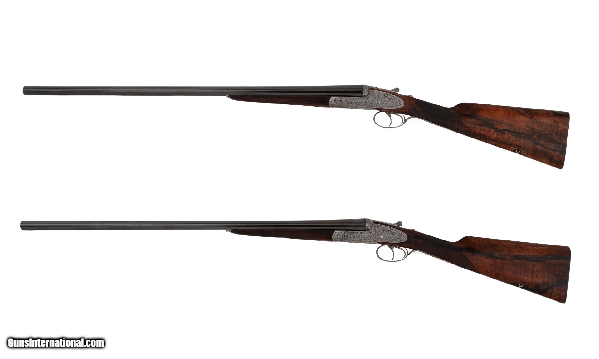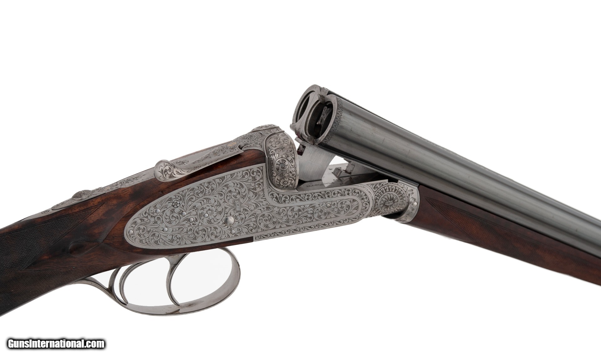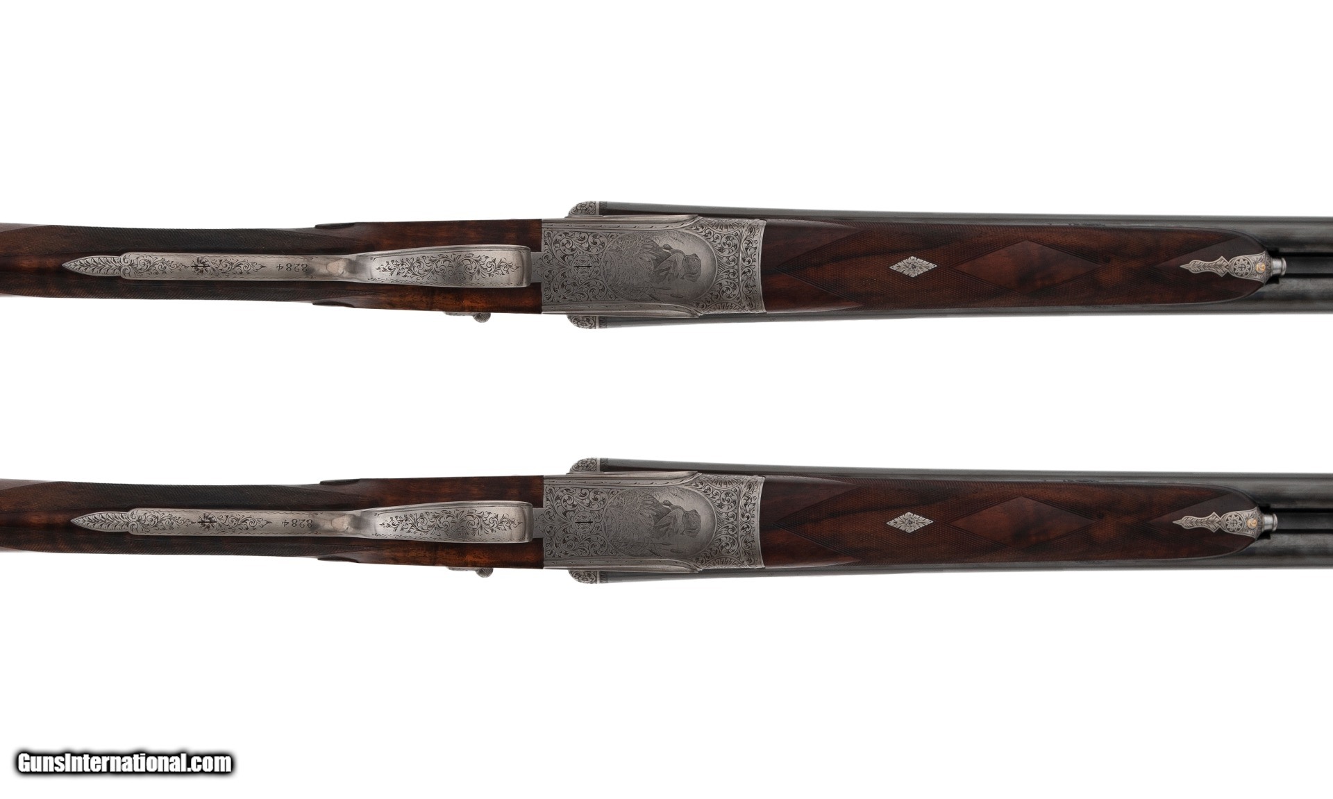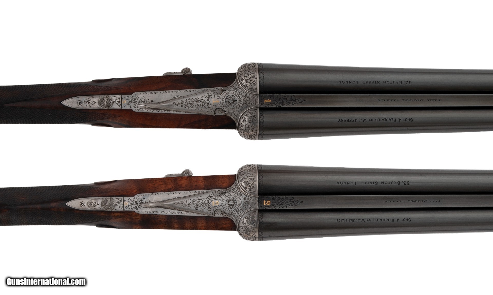 Description: Shot and regulated by W.J. Jeffrey. Left barrel of gun #2 has a choke bulge. SOLD Manufacturer: Piotti Model: SLE Pair Caliber Info: 20 Gauge Ejectors: Yes Condition: Preowned Metal Condition: Good Barrels: 27 Action: Sidelock Triggers: Double Gauge Info: 20 Gauge Stock Comb: 1 1/2 Stock Heel: 2 3/8 Stock Cast: Off Fore End: Checkered LOP: 14 3/8 Rib: Concave Weight: 5.500000 Chokes: IM/M Case: Leather Motor Case |