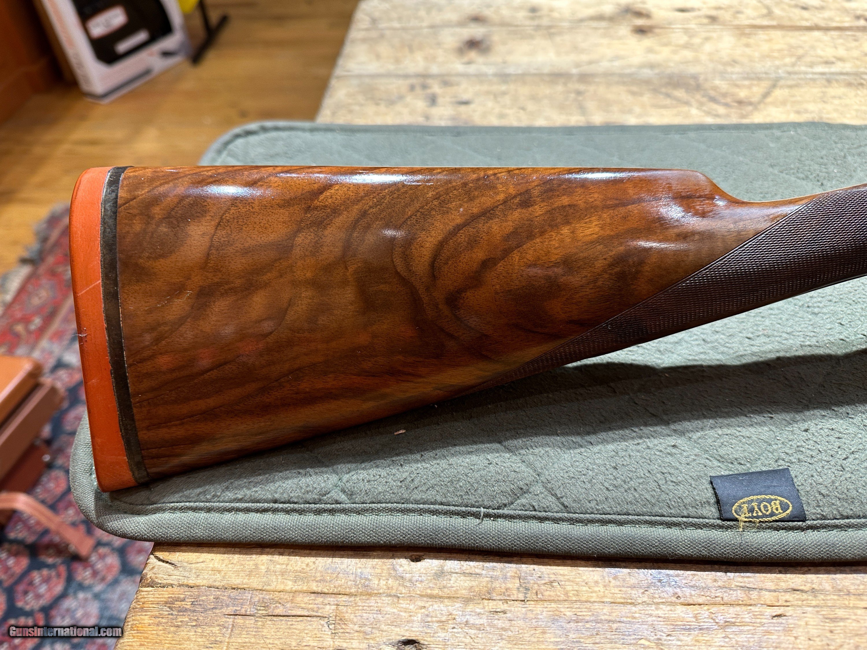 Description: Beautiful older Piotti S/S 20ga 27 1/4" barrels. 14 1/2" LOP Choked IC and Mod comes with a nice leather case. SOLD Shotgun Gauge: 20 Gauge Manufacturer: poitti Condition: USED, VERY GOOD Weight: 6lbs 7oz Manufacture Date: 1971 |