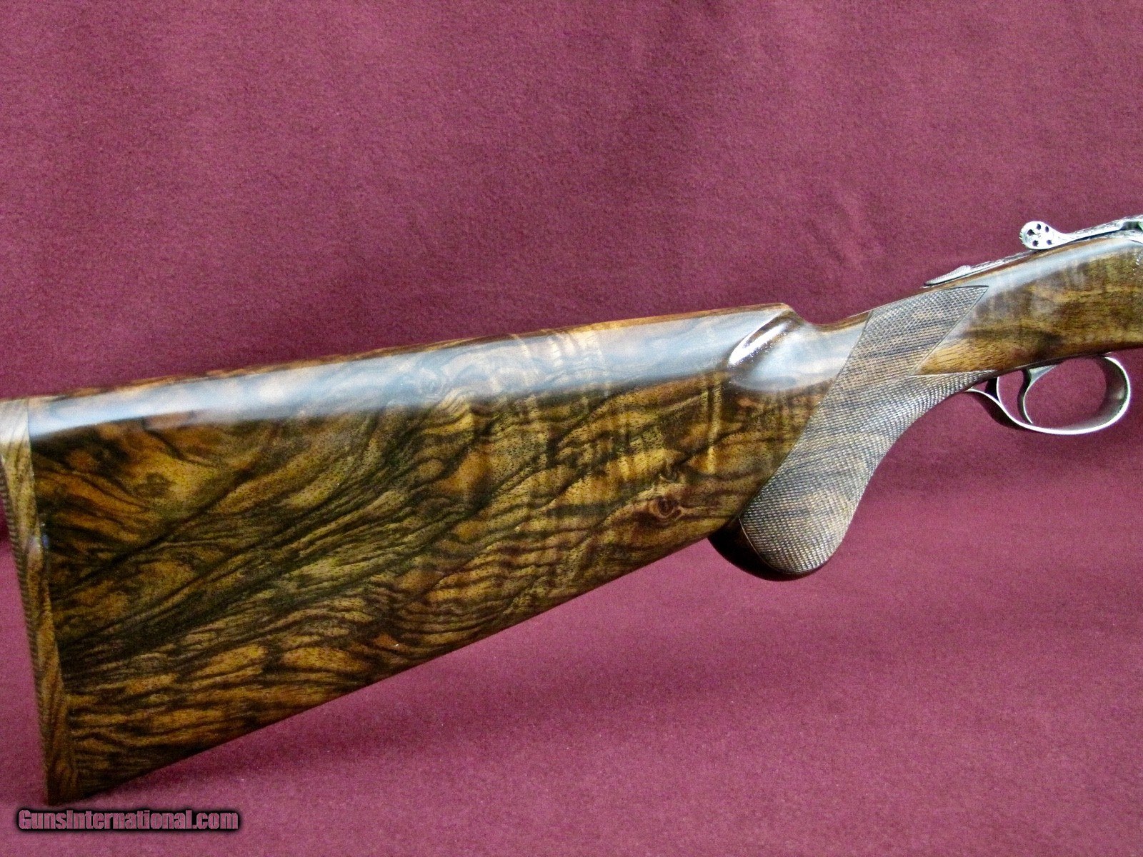 Description: I have for sale a lovely custom ordered and built Fratelli Poli 12 gauge side by side. This gun was ordered in 2007 and completed in 2008 to the owners specifications. The wood on this gun is certainly exhibition grade and the hand engraving is nothing short of spectacular. The gun features Capercaillie Grouse on the left side of the receiver, geese on the right side, and a beautiful English Setter on the bottom of the receiver. Add to this the beautiful scroll work and the silver finish which really enhances the engraving and you have one beautiful gun. Even though the gun was special ordered with over a one year wait, the stock dimensions are very comfortable for the average shooter at 1 3/8 X 2 1/4 X 14 3/4 over the checkered wooden plate and cast off for the right hand shooter. Gun features a single non-selective trigger, 28 inch barrels with .011 of constriction in the right barrel for improved cylinder and .029 in the left for a tight modified. Chambers are 3 inches and marked as such on the flats. Solid flat tapered rib is hand cut checkering to reduce glare. The weight of this gun is exactly 7 pounds and it balances just as it should exactly on the hinge pin. Even though the breech face shows no indication that the gun was ever shot the owner said he did fire the gun. The only marks on the gun are a few tiny marks on the barrels. The wood is very near perfect condition. The gun does come with a luggage case. Price of this work of art is $8900 plus $50 shipping to your FFL. As always there is a three day non-firing inspection period with buyer paying shipping charges if returned. SOLD Manufacturer: Fratelli Poli Model: Sapphire Custom Chambers: 3 inch Ejectors: Selective Well Timed Condition: Excellent Metal Condition: Excellent Light Marks Wood Condition: Excellent Bore Condition: Excellent / As New Barrels: 28 inches Action: Boxlock Triggers: Single Non-Selective Gauge Info: 12 Stock Comb: 1 3/8 Stock Heel: 2 1/4 Stock Cast: Off for Right Hand Shooter Fore End: Slim Beavertail Butt Pad: Wood Butt Plate LOP: 14 3/4 Rib: Hand Filed Solid Weight: 7 pounds 0 ounces Manufacture Date: 2008 Choke Left: .029 Modified Choke Right: .011 Improved Cylinder Engraving: Custom Game Scene Case: Luggage with Cover |