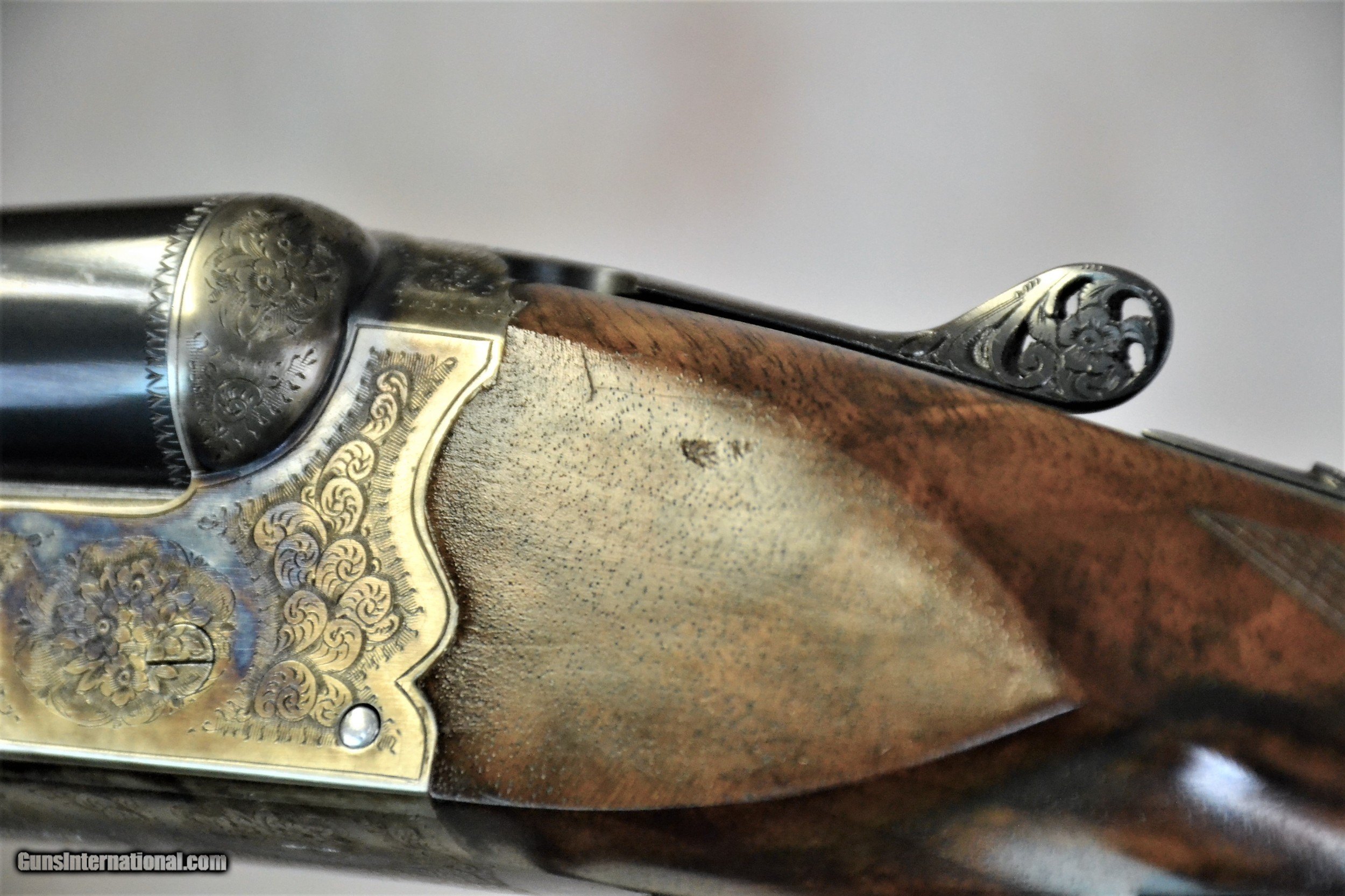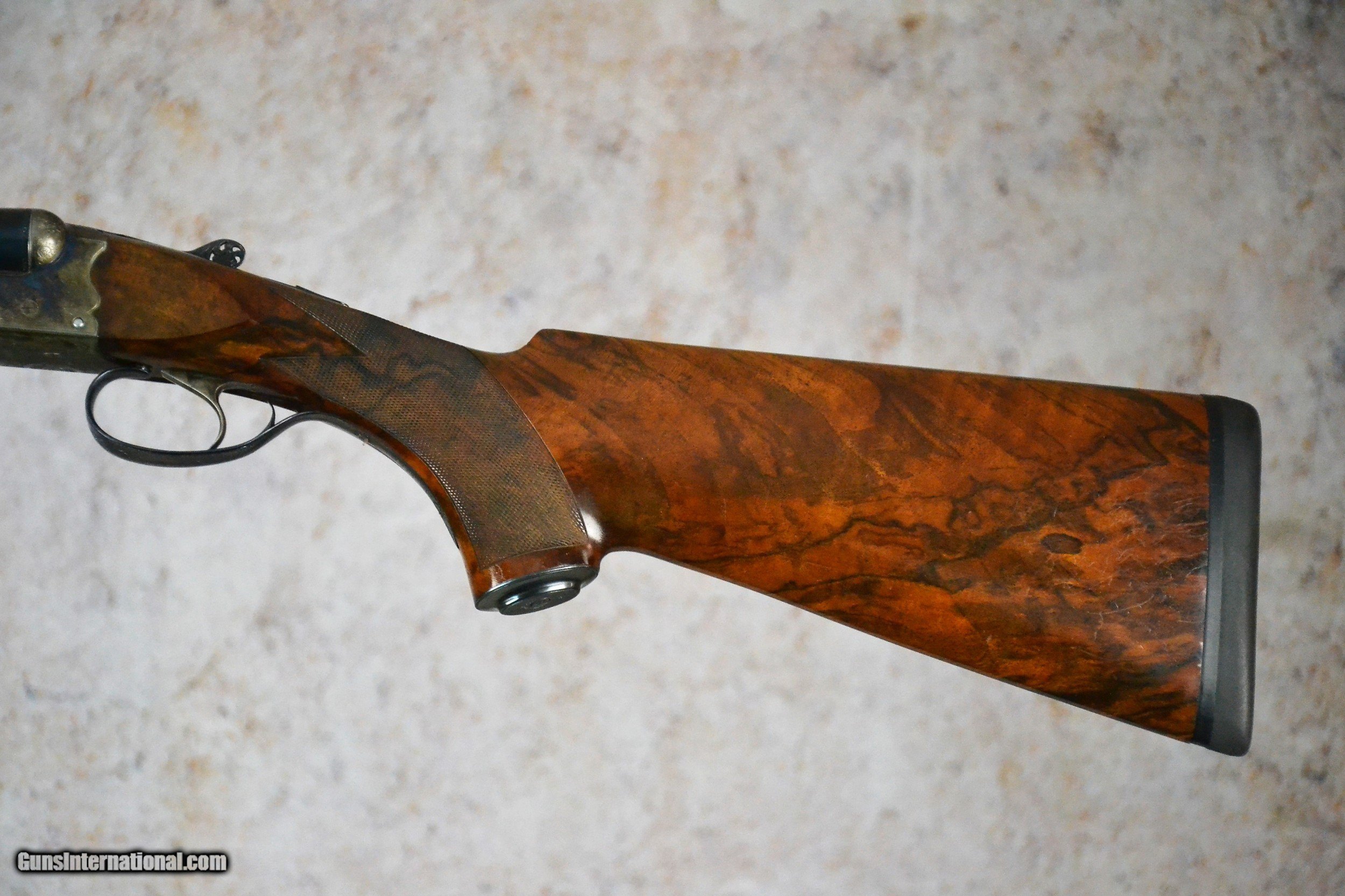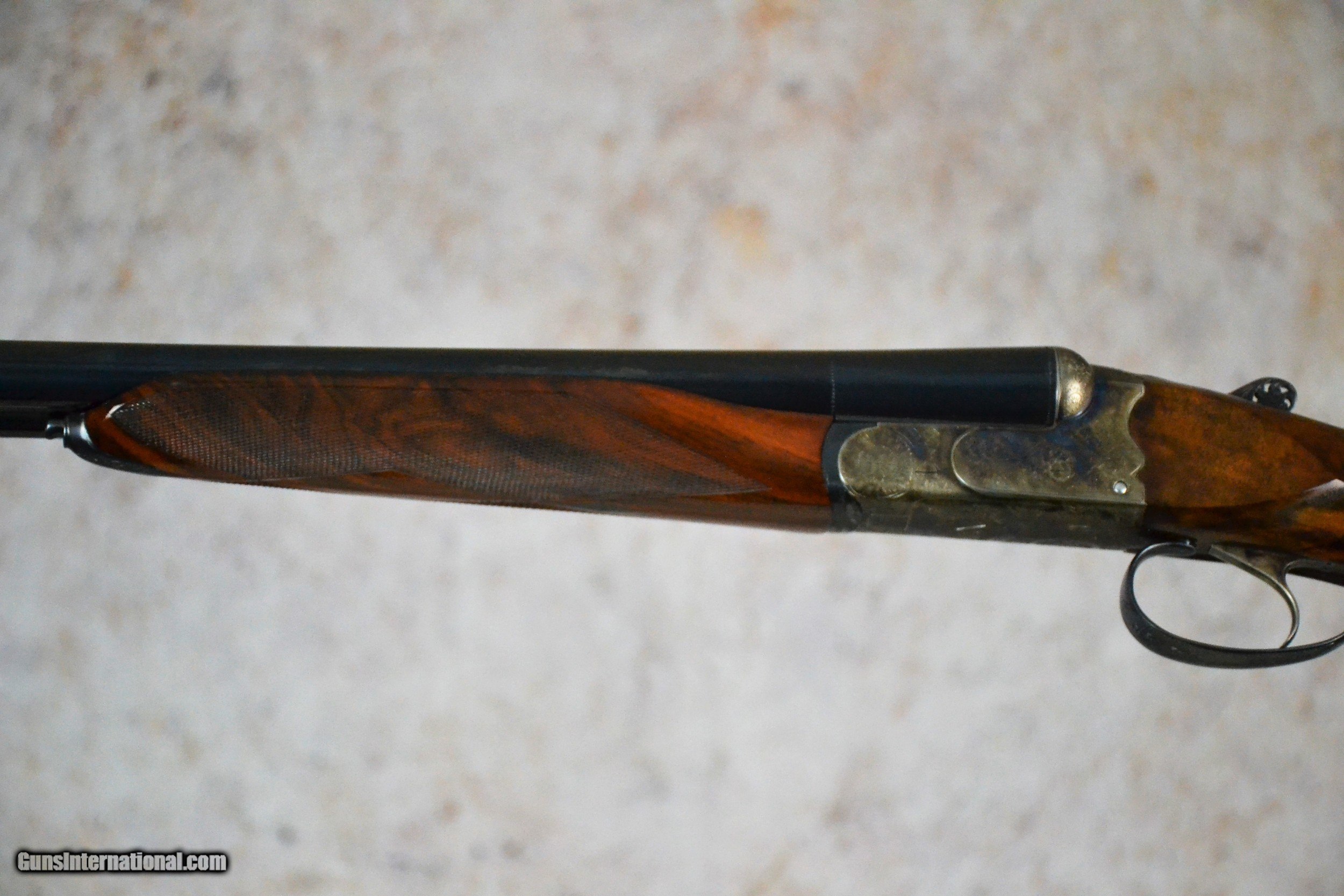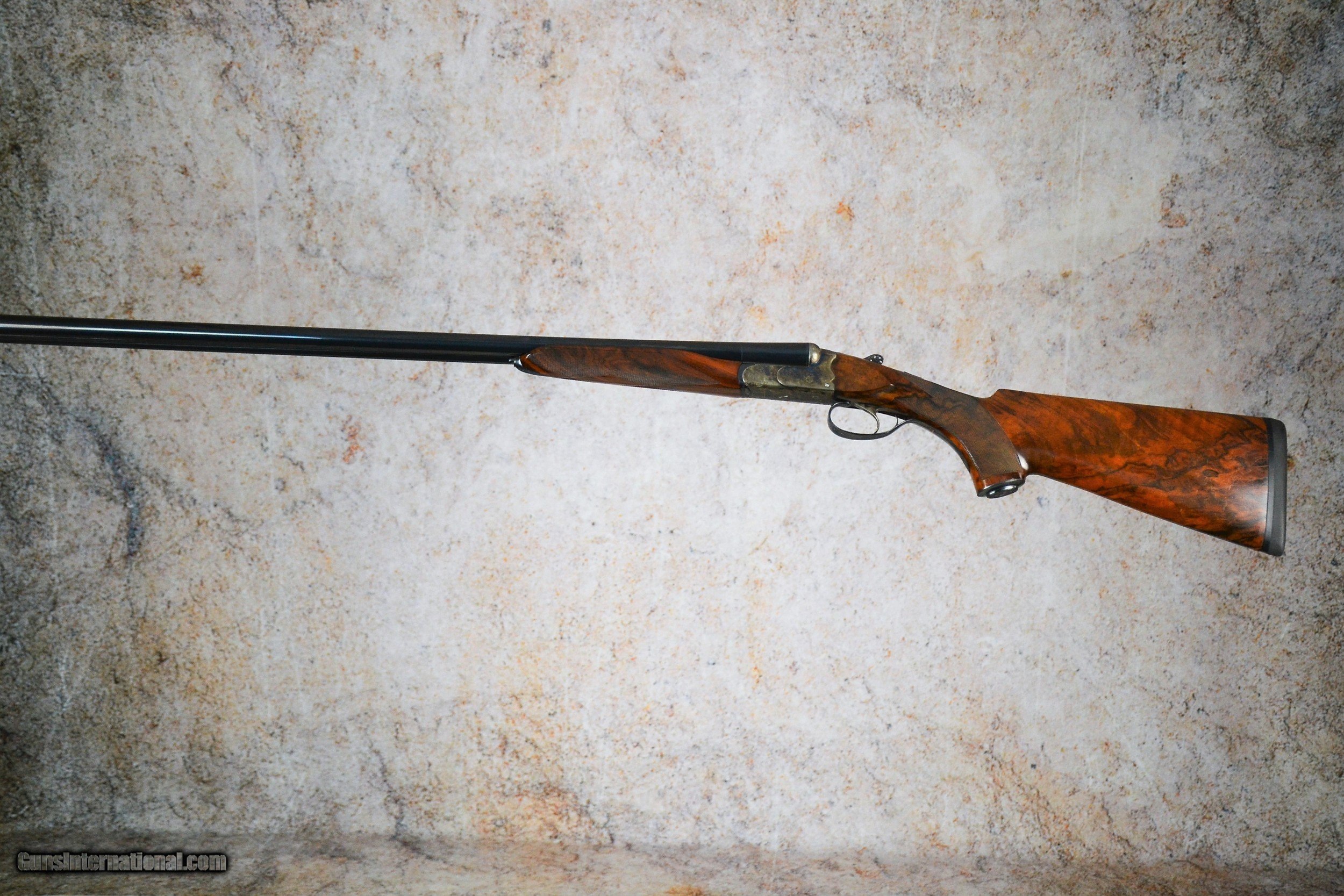 Description: Poli Upland Extra Field 16g 32" SN:#2213~~Pre-Owned~~ This shotgun has a single trigger non selective pierced top lever, selective ejectors, right hand pistol grip stock with palm swell and case colored engraved selective ejectors. Handling marks on wood as shown in pictures. Federal firearms laws do not allow us to ship firearms directly to you. Please contact us for ordering and shipping information. Gauge:16g Barrel Weight: 3lb Barrel Length: 32" Chamber: 2 3/4" Bore Diameter: 17.0 Chokes: Fixed Mod/Mod Rib: Raised tapered rib Stock Dimensions Drop at nose: 1 3/8" Drop at heel: 2 1/8" Cast Off: 1/8 RH Forend Style: Beavertail Length of pull: 14 3/4" to Pachmayer Pad Comb: Fixed Weight: 6lb 15oz SOLD |