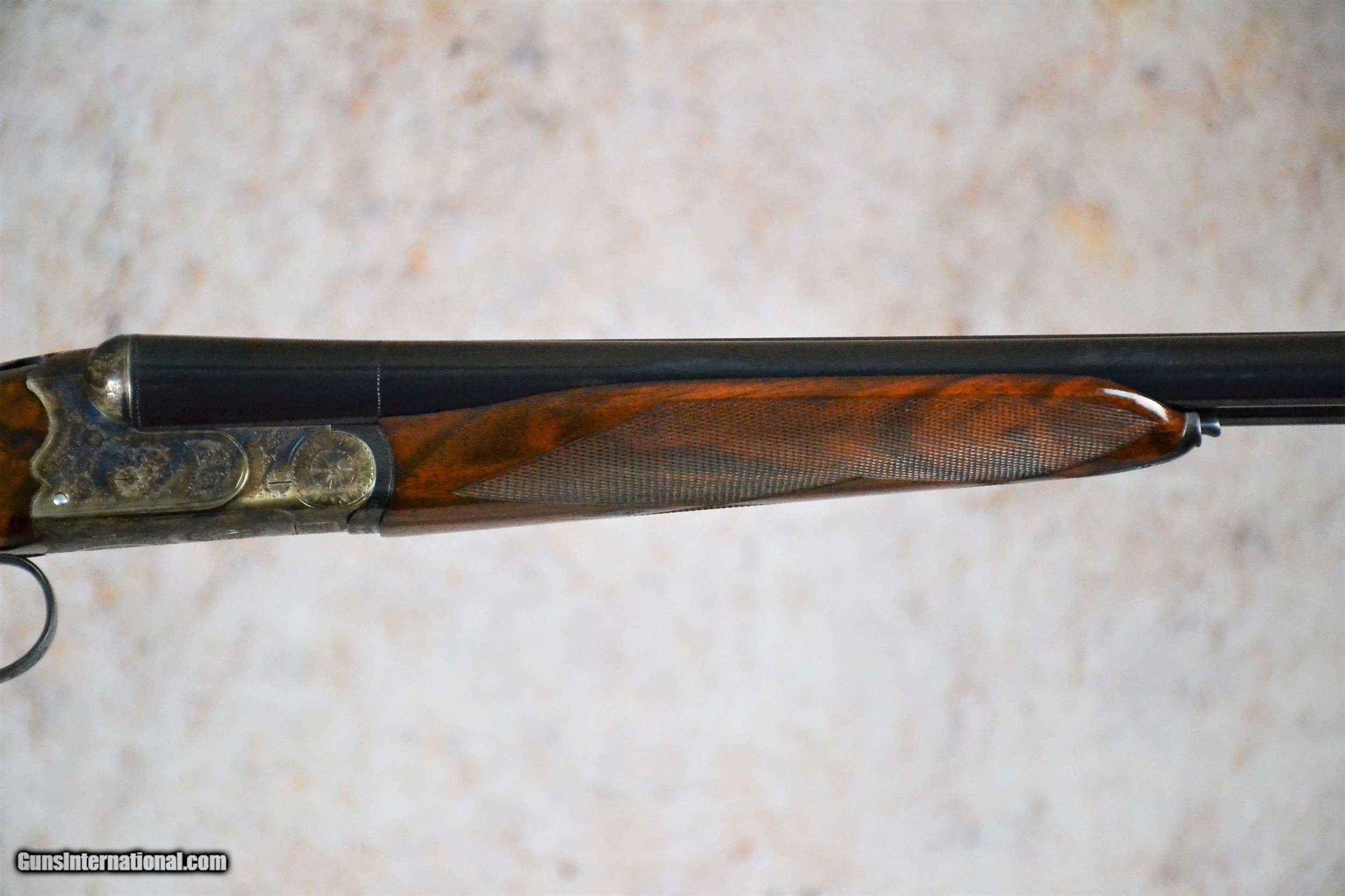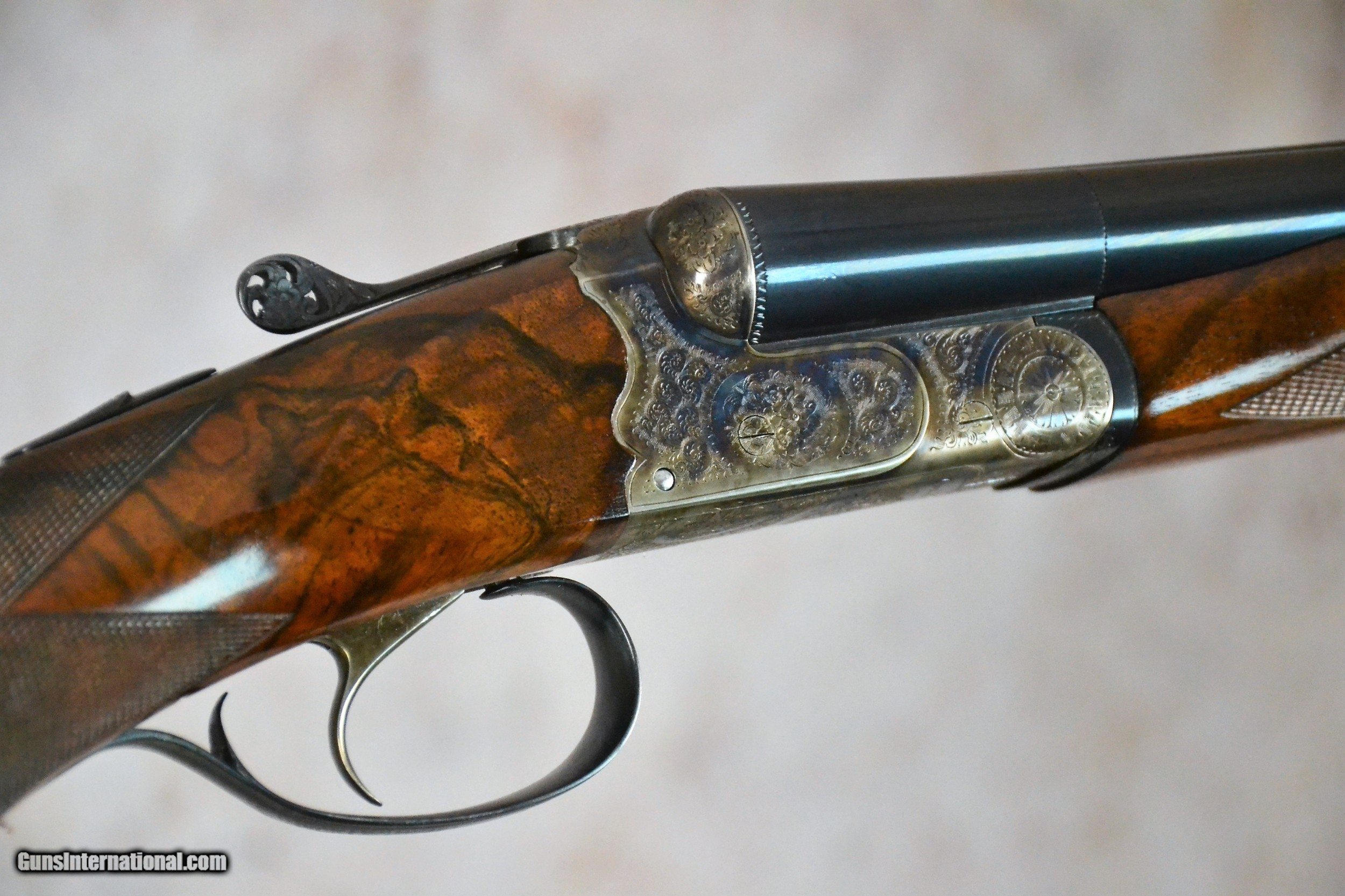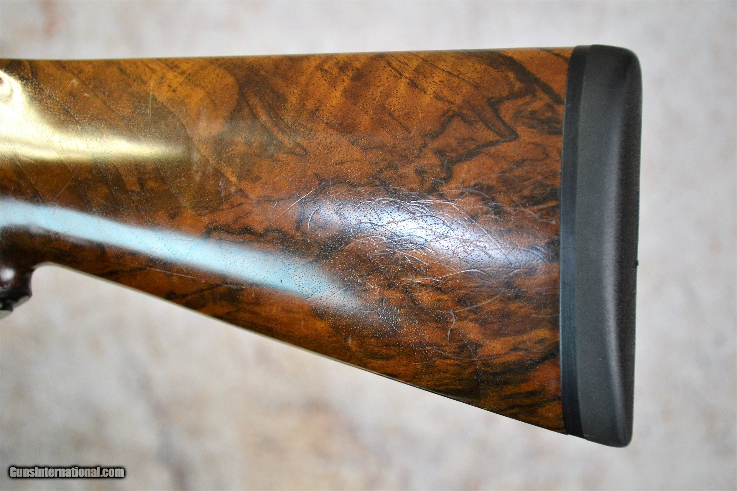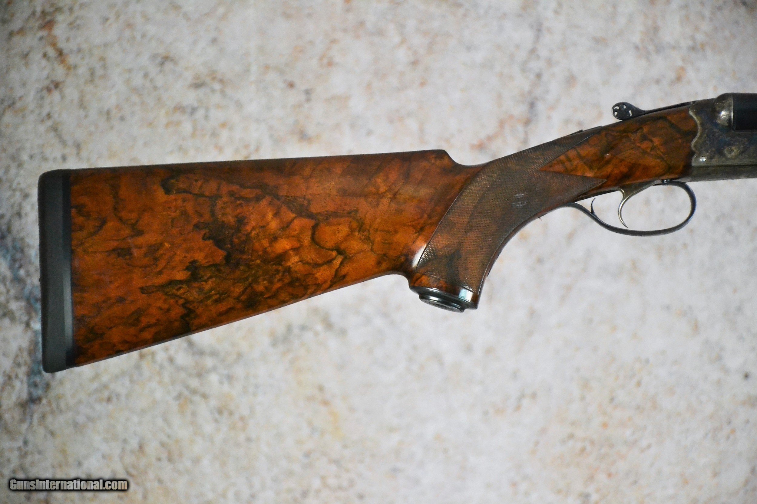 Description: Poli Upland Extra Field 16g 32" SN:#2213~~Pre-Owned~~ This shotgun has a single trigger non selective pierced top lever, selective ejectors, right hand pistol grip stock with palm swell and case colored engraved selective ejectors. Handling marks on wood as shown in pictures. Federal firearms laws do not allow us to ship firearms directly to you. Please contact us for ordering and shipping information. Gauge:16g Barrel Weight: 3lb Barrel Length: 32" Chamber: 2 3/4" Bore Diameter: 17.0 Chokes: Fixed Mod/Mod Rib: Raised tapered rib Stock Dimensions Drop at nose: 1 3/8" Drop at heel: 2 1/8" Cast Off: 1/8 RH Forend Style: Beavertail Length of pull: 14 3/4" to Pachmayer Pad Comb: Fixed Weight: 6lb 15oz SOLD |