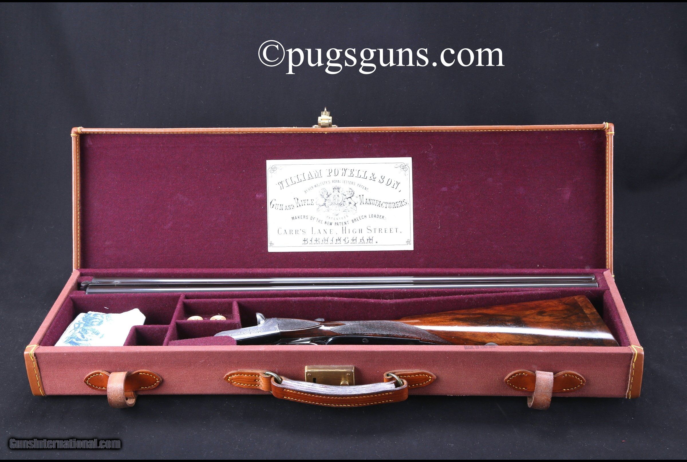 Description: "Cased SOLD Manufacturer: WIlliam Powell & Son Model: Best Quality Boxlock Serial Number: 3642 Ejectors: Yes Barrels: 26 inches Triggers: Double Trigger Gauge Info: 16 Gauge Stock Comb: 1 3/8 inches Stock Heel: 2 1/8 inches Fore End: Splinter LOP: 14 1/2 inches Weight: 5 lbs. 13 oz. |