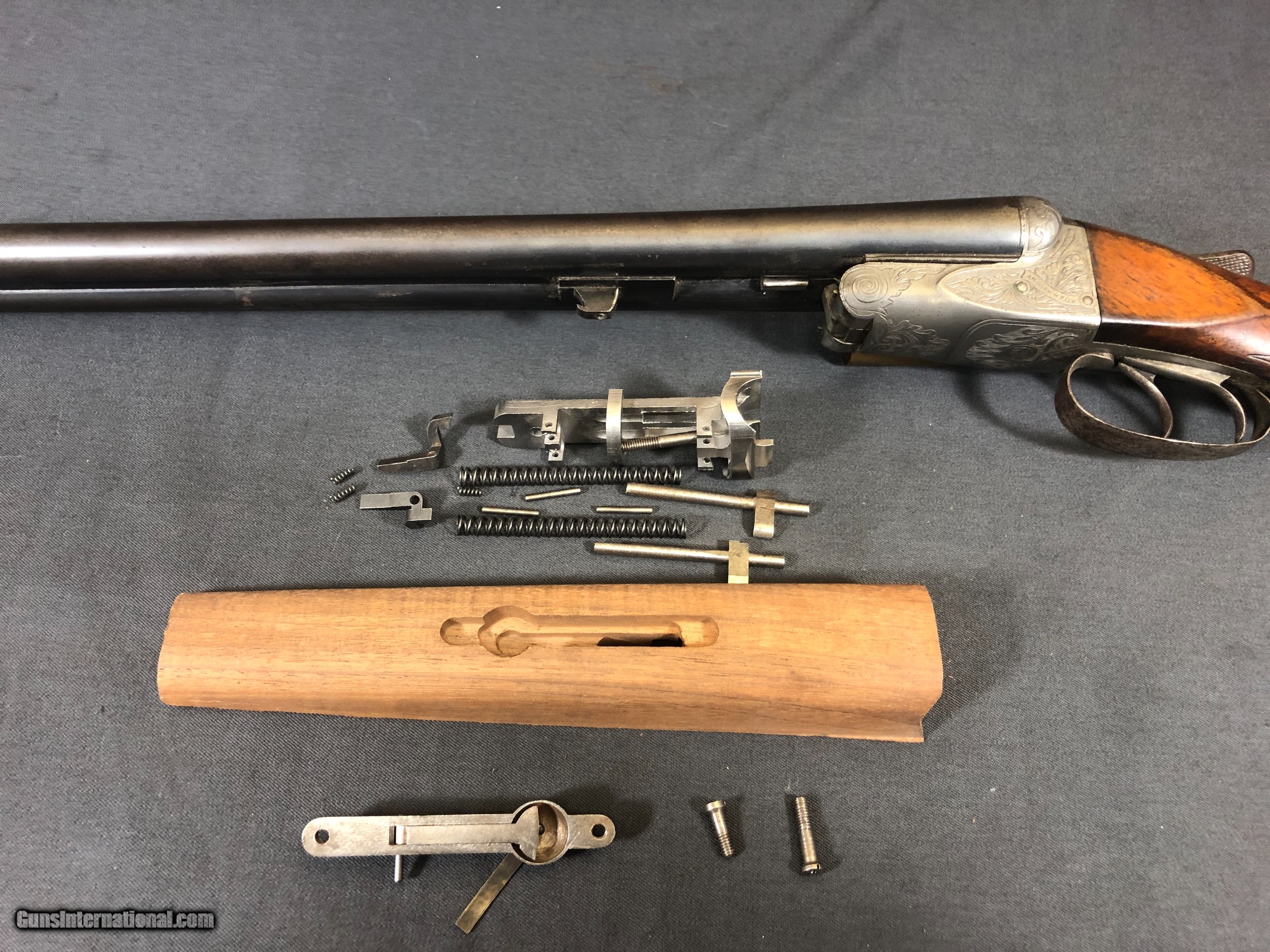 Description: SOLD !!! A 16ga Fox AE missing original 4 end but with all the new old stock parts to build one. Complete it as an AE or use it for the basis for a custom up grade. This is not a plug and play project. Skill and knowlege of fitting and operation are required but if you need more parts they are readily avalable. See photos for condition. Please call Mark 715-814-1295 Pack and ship $45 LAYAWAY: Layaway is available with 1/3 down of final total price including shipping/insurance within 7 days . Balance due in 45 days. Layaway is FINAL with no refunds, no inspections, no returns. SOLD Curio/Relic: Yes Manufacturer: A. H. FOX Model: AE Ejectors: YES Barrels: 28 IN Barrel Type: KRUPP Gauge Info: 112 LOP: 12 1/4IN Manufacture Date: 1915 Choke Left: MOD .019 Choke Right: SKEET .004 |