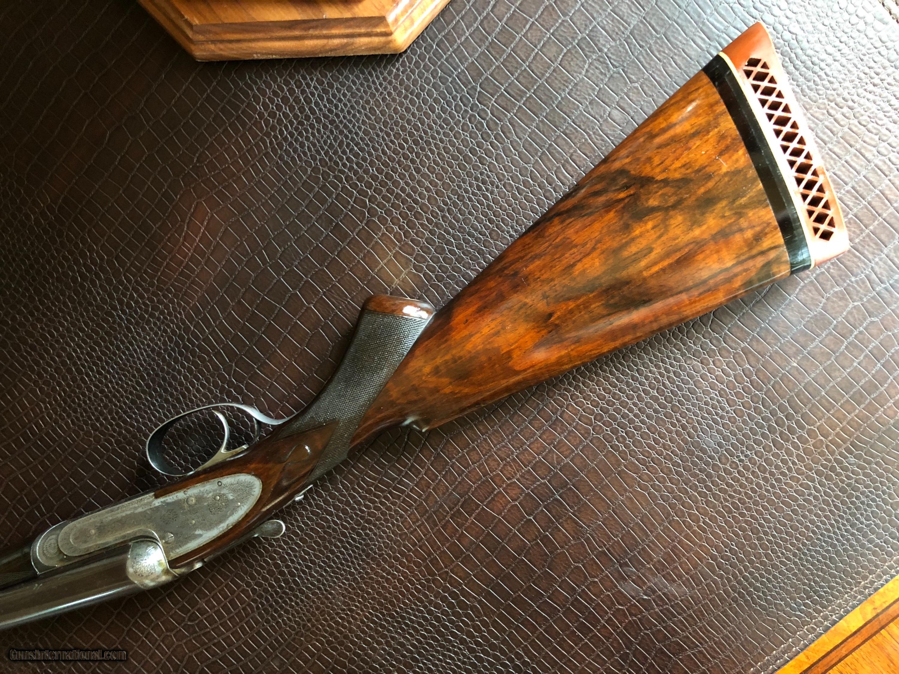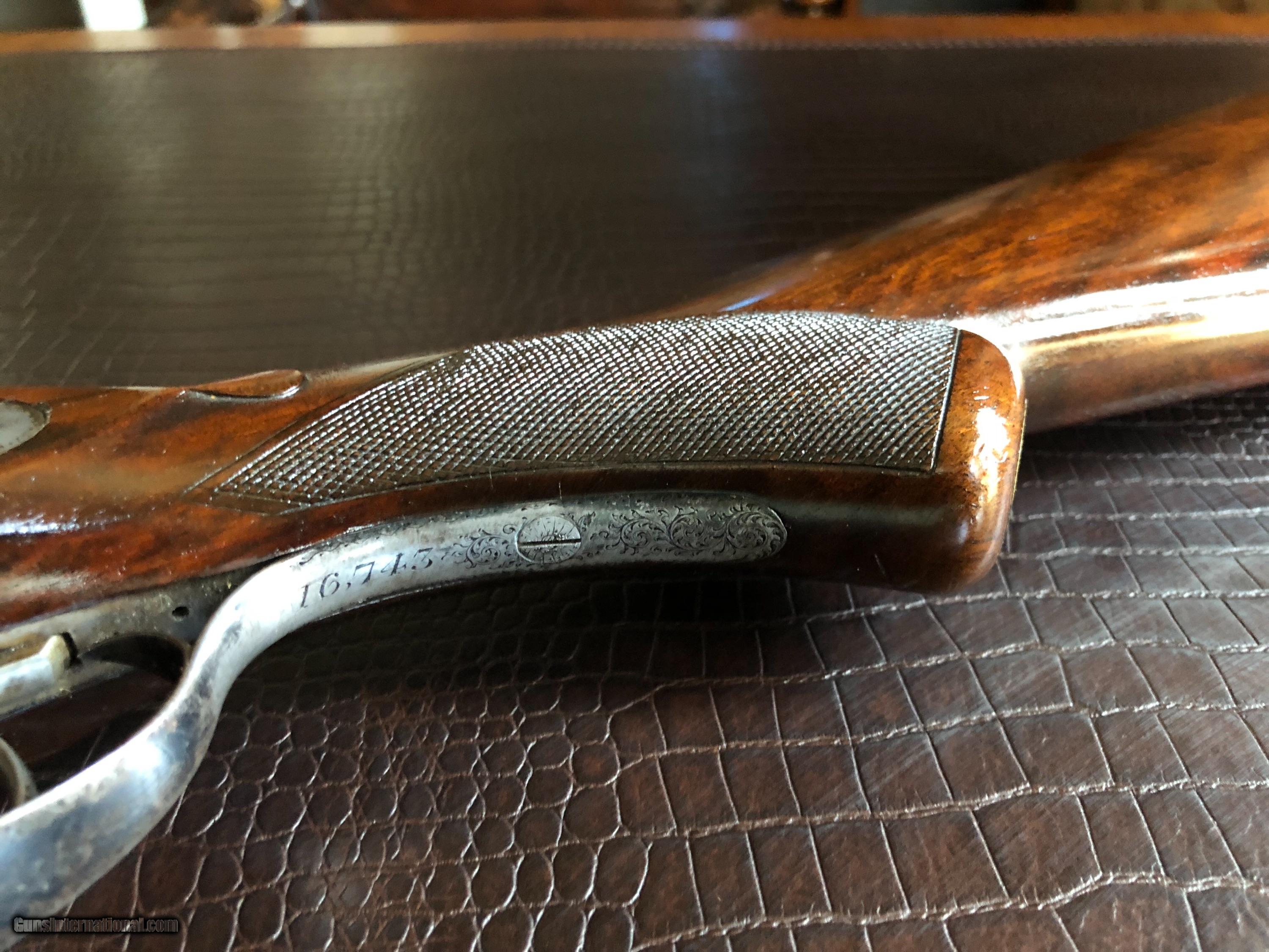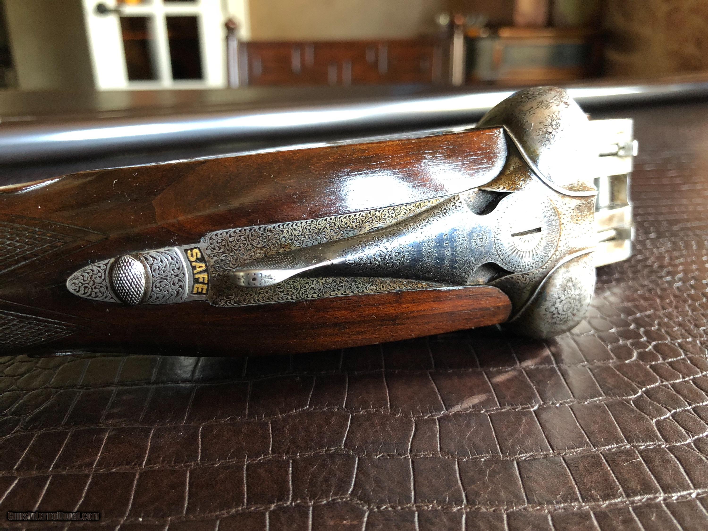 Description: *****SALE PENDING***** J. Purdey & Sons 12ga SLE - Purdey Single Trigger - 1 1/4 oz proofed - 2 3/4” Factory Chambers - 30” Whitworth Steel Barrels - Man. Date 2-12-1900 - “Hammerless Ejector Pigeon Gun” - Third Fastener - The Ultimate Vintage Sporting Clays Gun - Very Rare Documented “Stock with Pistol Grip, Inlaid with Gold Oval” - Side Clips - Letter from Purdey - A Magnificent Gun for Sporting Clays and Live Pigeons - SN: 16,743 - Case Color Remains Strong - On Face - Handles Beautifully - 3 Position Safety Operates as Barrel Selector - Ejectors Toss Shells Nicely - Self-Opener - Cocking Indicators - Lever is Slight Right of Center 13 7/8 X 1 3/8 X 2 3/8 - 7 lbs 6 ozs *****SPECIAL NOTE***** 1. I am a reasonable man – I encourage you to make reasonable offers on my listings. At times, there is some flexibility in pricing – other times there is not. I have been collecting guns since 1988 – so I have amassed quite a covey of what I consider to be some very fine guns and some utility guns. Feel free to call me, unlike most gun dealers – I am easy to talk to and will answer the phone on weekends and late evenings (not after 9PM CST). 2. I DO NOT ACCEPT TRADES 3. I do provide LAY-A-WAY plan, please inquire about my terms if you have a need – glad to do it when I can. 4. My collection consists of many guns that were bought from individuals – that means **I BUY GUNS** but I only buy clean used guns with collectibility. In particular - **I BUY SHOTGUNS** 5. ALL OF MY TRANSACTIONS ARE DONE THROUGH MY FFL with whom I have a very solid relationship. If you buy a guns from me, you’ll pay them, they will ship to your FFL of choice and all dealings will be with them post receipt of funds. They are a high end boutique gun dealer in the Texas Hill Country and can accommodate the entire transaction. If you live in Texas and want to drive to see one of my guns, reach out to me to discuss making an appointment with my FFL – I do not show guns at my home nor do I meet guys at public locations for viewings or sales. ALL GUNS ARE LEGALLY TRANSFERRED through my FFL – there are NO EXCEPTIONS. 6. Certified funds are preferred – if you send a personal check for payment the FFL ships one week after receipt. Certified funds payments – shipments are done next business day. NO CREDIT CARD payments are accepted. 7. I encourage you to shoot the guns you buy from me – so during your 3 day inspection – shoot the gun. Make sure it is operating in the manner you expected. If you are not happy – return the gun for a full refund except shipping costs. SOLD |