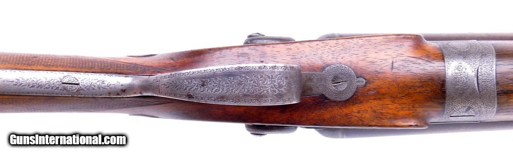Description: Another “ESTATE” firearm listing brought to you from Dust 2 Dollars who prides themselves on showing the complete gun in high quality pictures along with a detailed description for your consideration. We offer you a “Damaged” James Purdey (London) 12 gauge Double Top Lever with Hammers, 30” Damascus Barreled Shotgun from 1880 - 1881. From communications with Purdey we know that gun number 10946 was #2 of a pair of shotguns built for Sir William Eden in 1880 - 1881. Sir William Eden upon his father's death on 1873 became the 7th Baronet of West Auckland and 5th Baronet of Maryland. Sir William was described as an eccentric and often foul-tempered man who once served as a colonel and local magistrate. He was also known as a daring traveler during his Grand Tour as well as a sportsman who served as Master of the Durham Hunt and gardener. The right barrel shows a crack and some pin holes as pictured. The bores are bright with moderate areas of pitting in both two thirds of the way down. The action is tight and the hammers function just fine. The forearm has a small chip on the right side as pictured. It shows wear from 142 years of life but has no cracks. The butt stock shows one crack as clearly shown in the pictures. It also shows wear and two gouges at the top behind the lever as shown. All of the markings are shown in the pictures for your consideration. SOLD This will be shipped fully insured UPS Ground to you where allowed for $60. It will be shipped in a foam lined double walled cardboard box that we have manufactured for us so that your gun arrives safe. Payment to be made by USPS Money Order or Cashier’s Check. All firearms come with a 3-day inspection from D2D’s. SOLD Antique: Yes Shotgun Gauge: 12 Gauge |