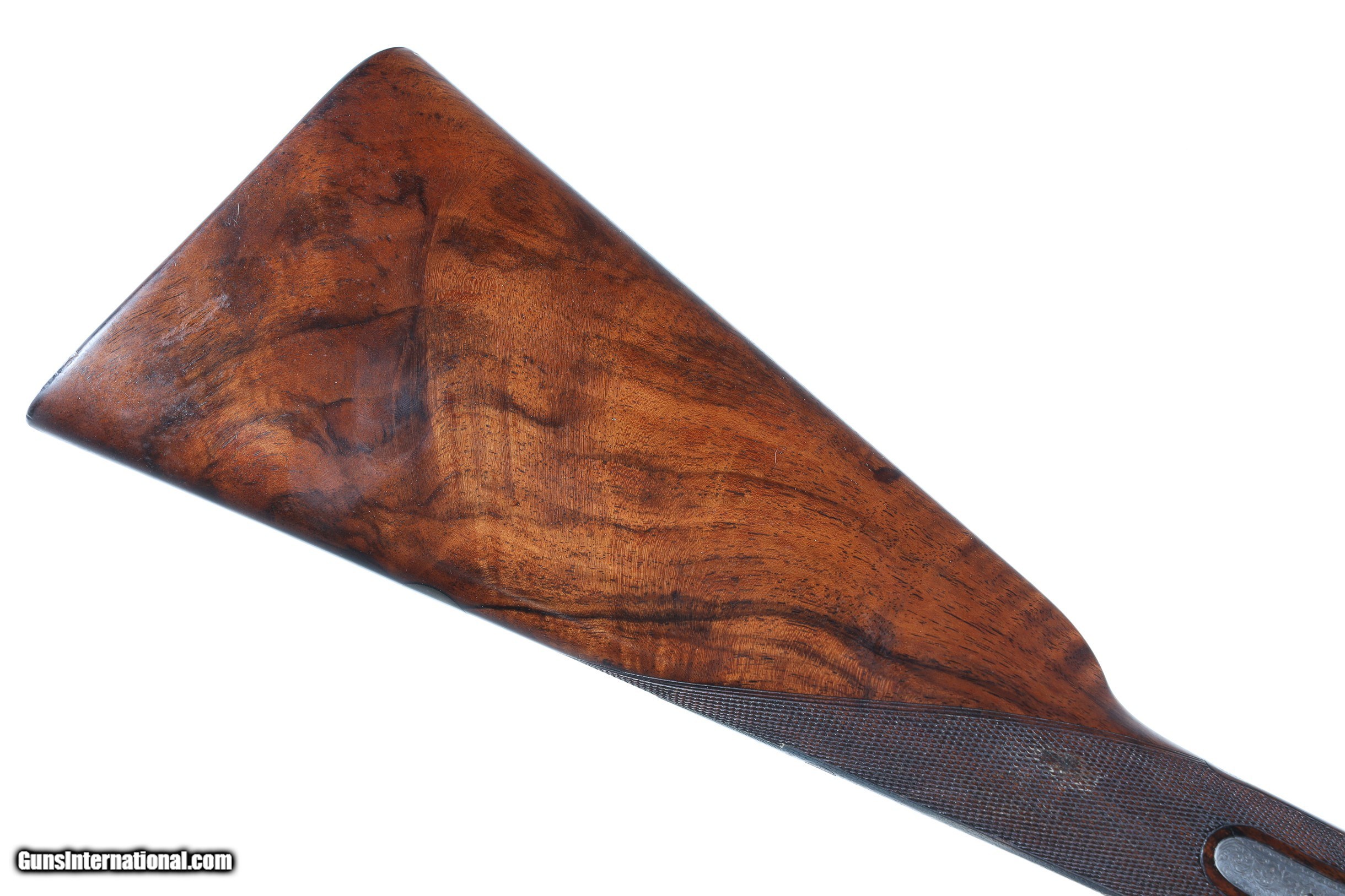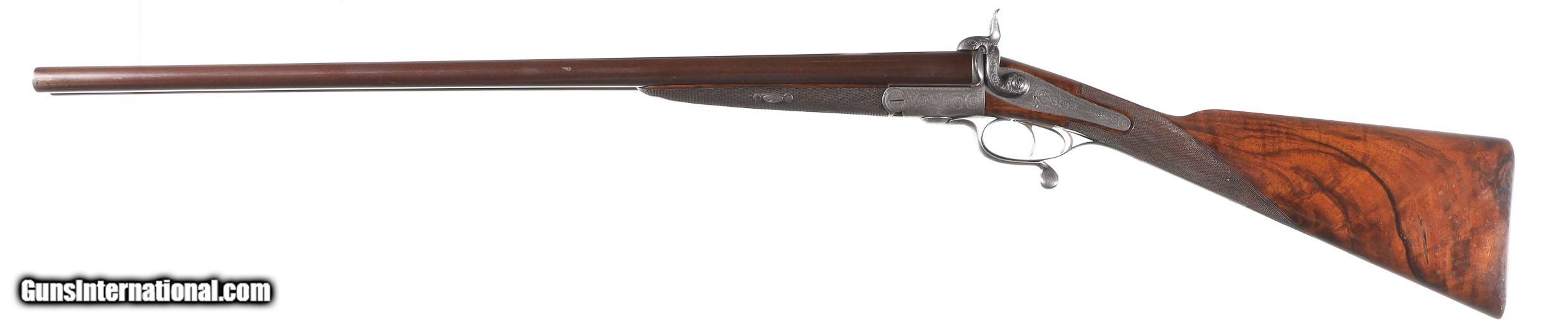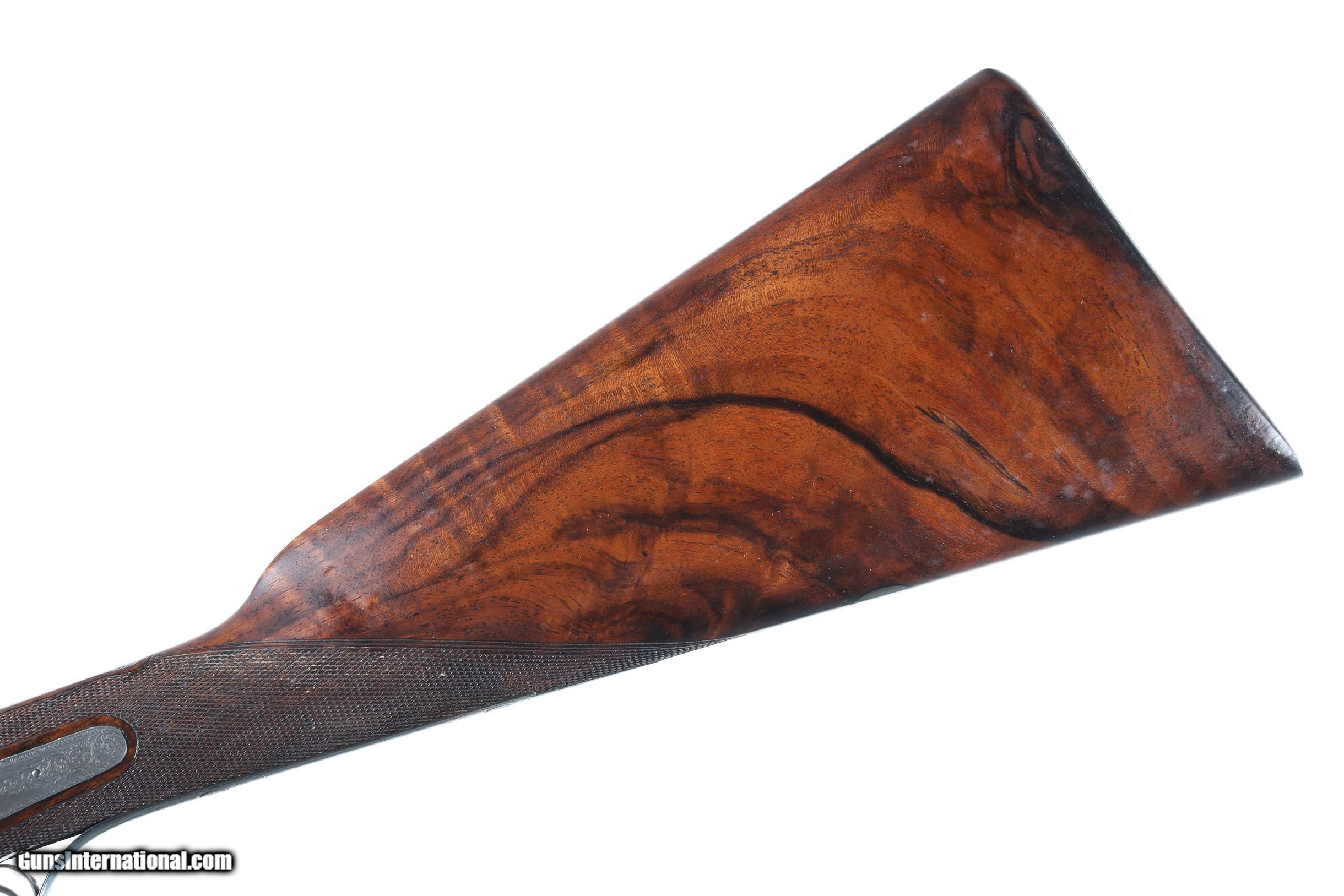 Description: J, Purdey 12 Bore Pin Fire double shotgun with rotary opening action, Double triggers and scroll engraved locks and receiver. Damascus Bbl's with bead front sight and Purdey address on top rib as well as locks. Oil-finished checkered walnut stocks with checkered butt. Condition, Very fine and original with bright bores and good engraving. Damascus scene is good and visible. Mechanically excellent. As an interesting note, The Emperor of Japan had a set of these guns that were liberated at the close of WW2. • Free Shipping, No Credit Card Fees. • Lay-a-way available for this firearm. • 1/3 Down, a 1/3 in 30 Days 1/3 in 60 Days. SOLD Antique: Yes Shotgun Gauge: 12 Gauge Manufacturer: J. Purdey Model: Rotary Underlever Pinfire Serial Number: 6263 Barrel Length: 28 |