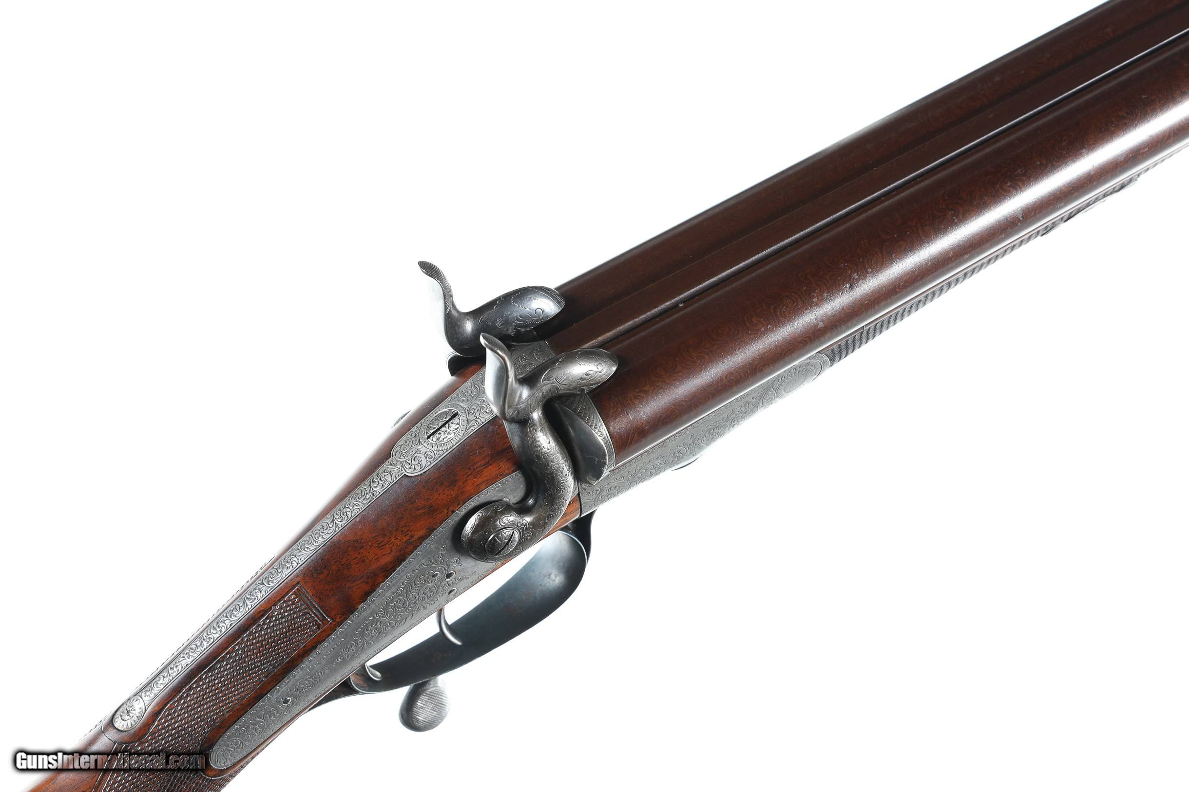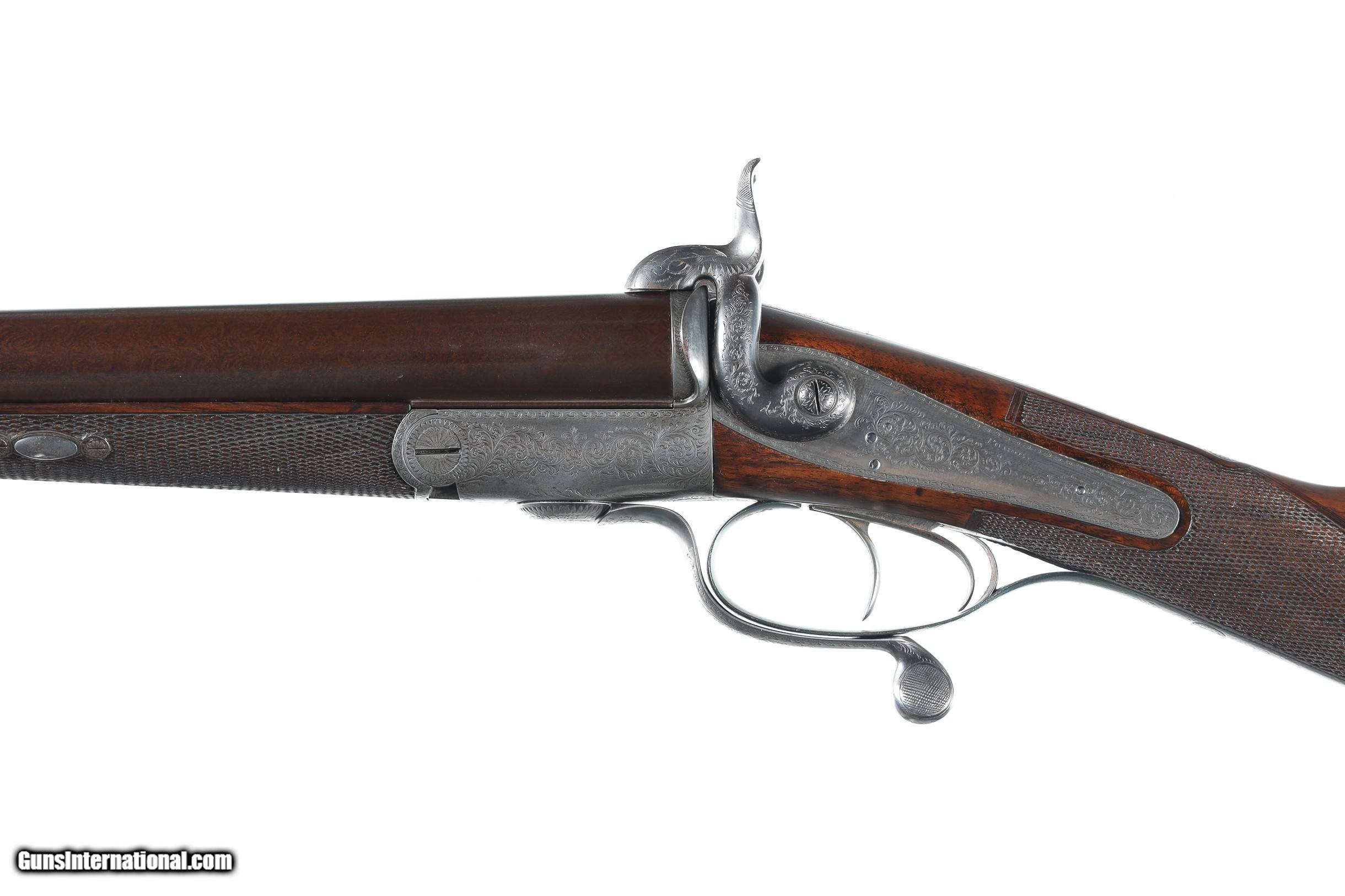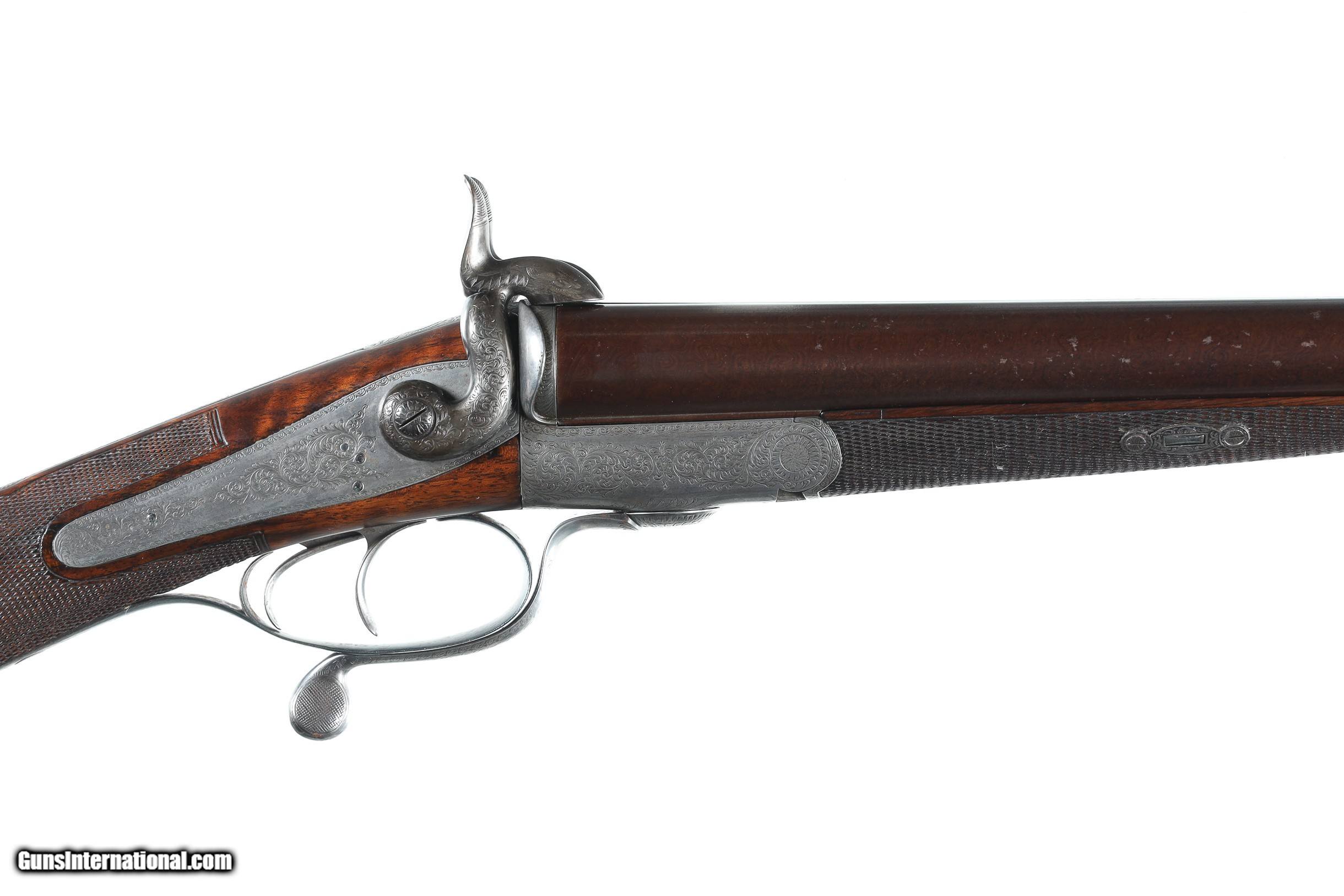 Description: J, Purdey 12 Bore Pin Fire double shotgun with rotary opening action, Double triggers and scroll engraved locks and receiver. Damascus Bbl's with bead front sight and Purdey address on top rib as well as locks. Oil-finished checkered walnut stocks with checkered butt. Condition, Very fine and original with bright bores and good engraving. Damascus scene is good and visible. Mechanically excellent. As an interesting note, The Emperor of Japan had a set of these guns that were liberated at the close of WW2. • Free Shipping, No Credit Card Fees. • Lay-a-way available for this firearm. • 1/3 Down, a 1/3 in 30 Days 1/3 in 60 Days. SOLD Antique: Yes Shotgun Gauge: 12 Gauge Manufacturer: J. Purdey Model: Rotary Underlever Pinfire Serial Number: 6263 Barrel Length: 28 |