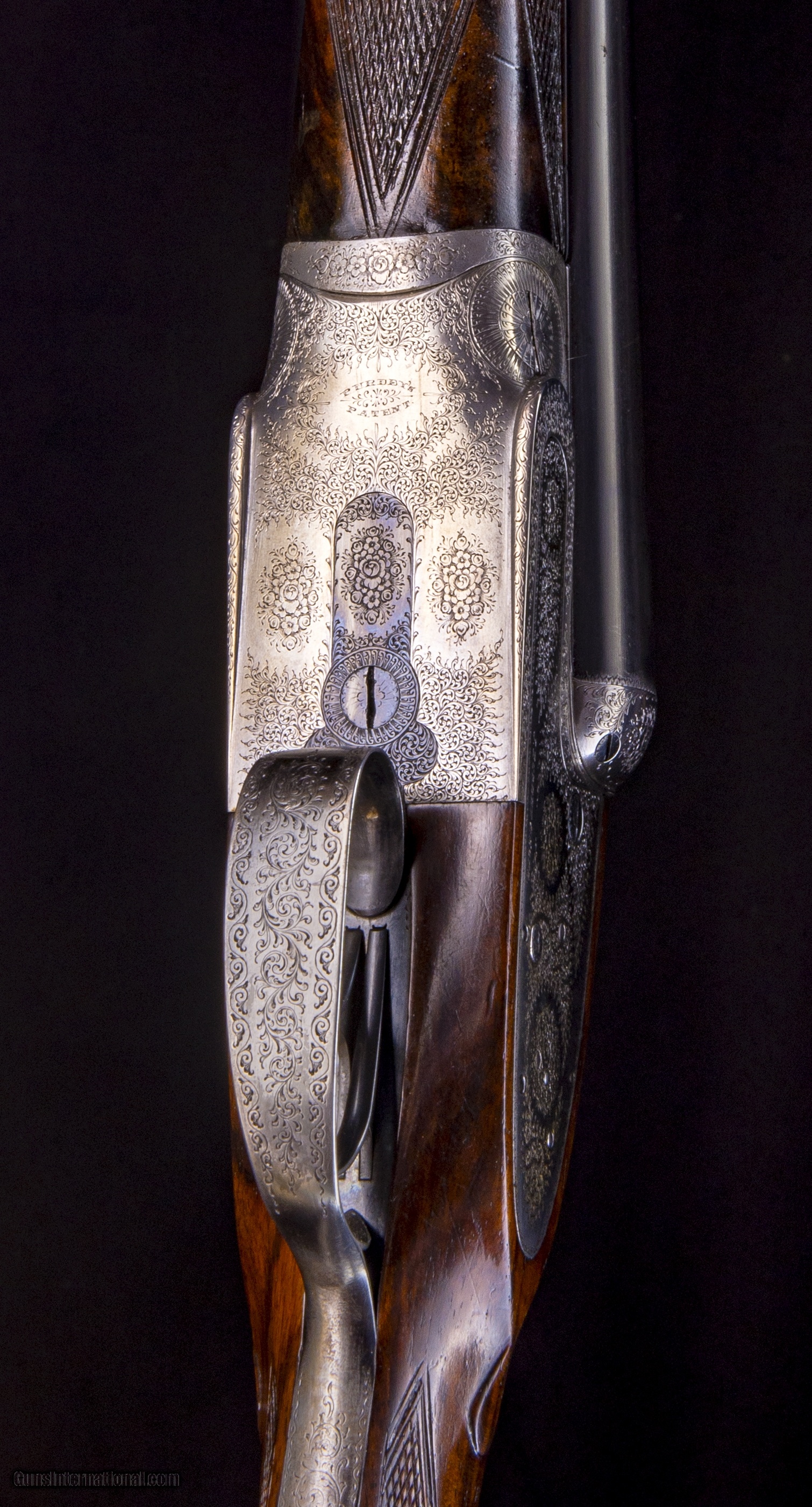 Description: Hammerless Sidelocks - A very nice Purdey at a great price. She is tight and has nice bores. *** Note: To see this gun with high resolution photos and a zoom-in feature, go to the vintagedoubles main site and search for the gun ID: 5581 or browse the main site to see our full gun collection. SOLD Antique: Yes Manufacturer: J Purdey & Son 1896 ~ *No transfer as is antique ~ A super nice Purdey at a great price Model: None Serial Number: 15664 Ejectors: Yes Barrels: 30 Barrel Type: Steel Action: Sidelock Ejector Gauge Info: 12 gauge Stock Comb: 1 3/8 Stock Heel: 2 1/16 Stock Cast: 1/4 LOP: 15 1/4" with ex Weight: 6lbs 13 ozs Choke Left: .030 full Choke Right: .009 IC Proof:Nitro: 2 1/2 Minimum Wall Thickness Left: .023 Minimum Wall Thickness Right: .025 |