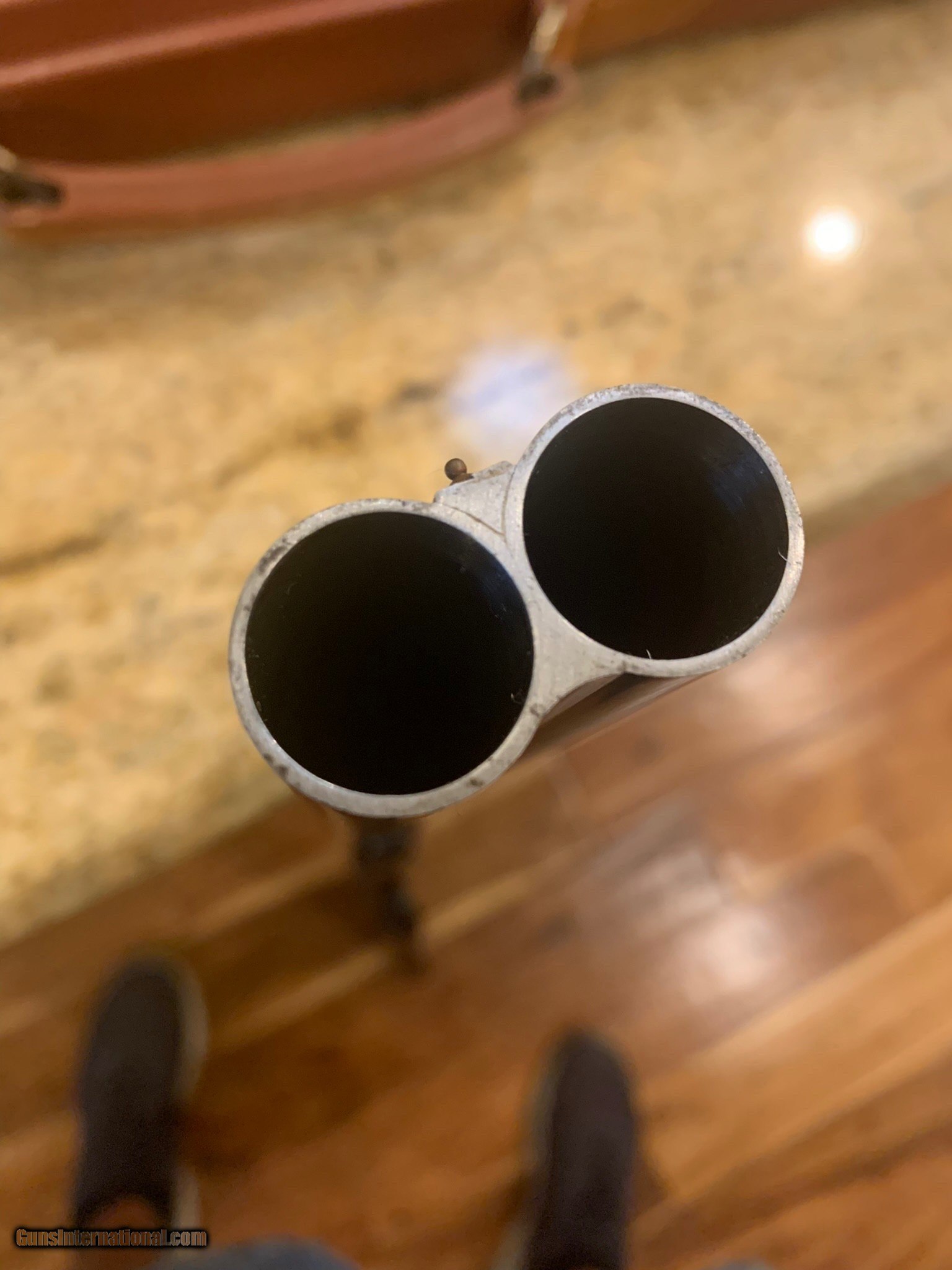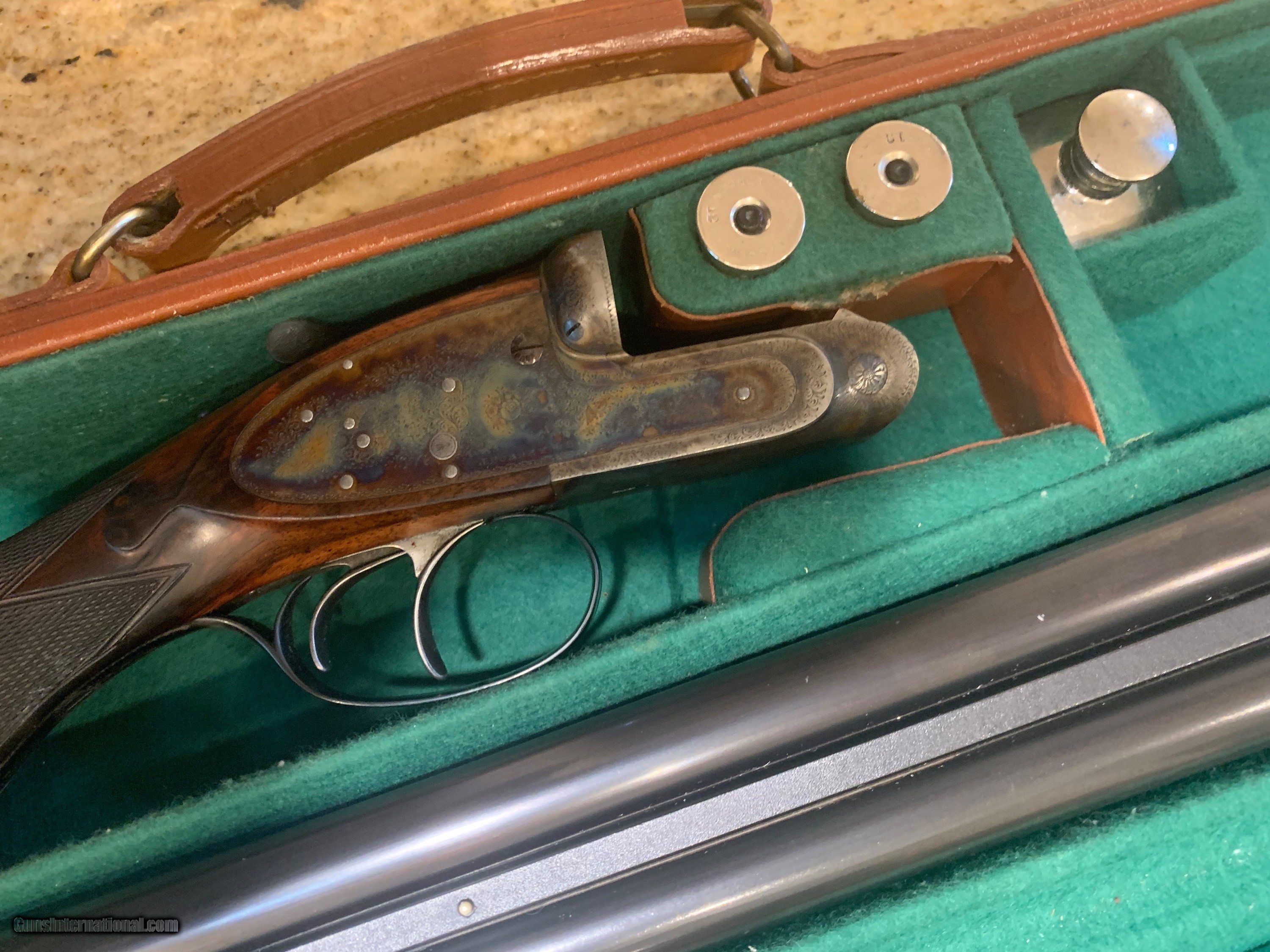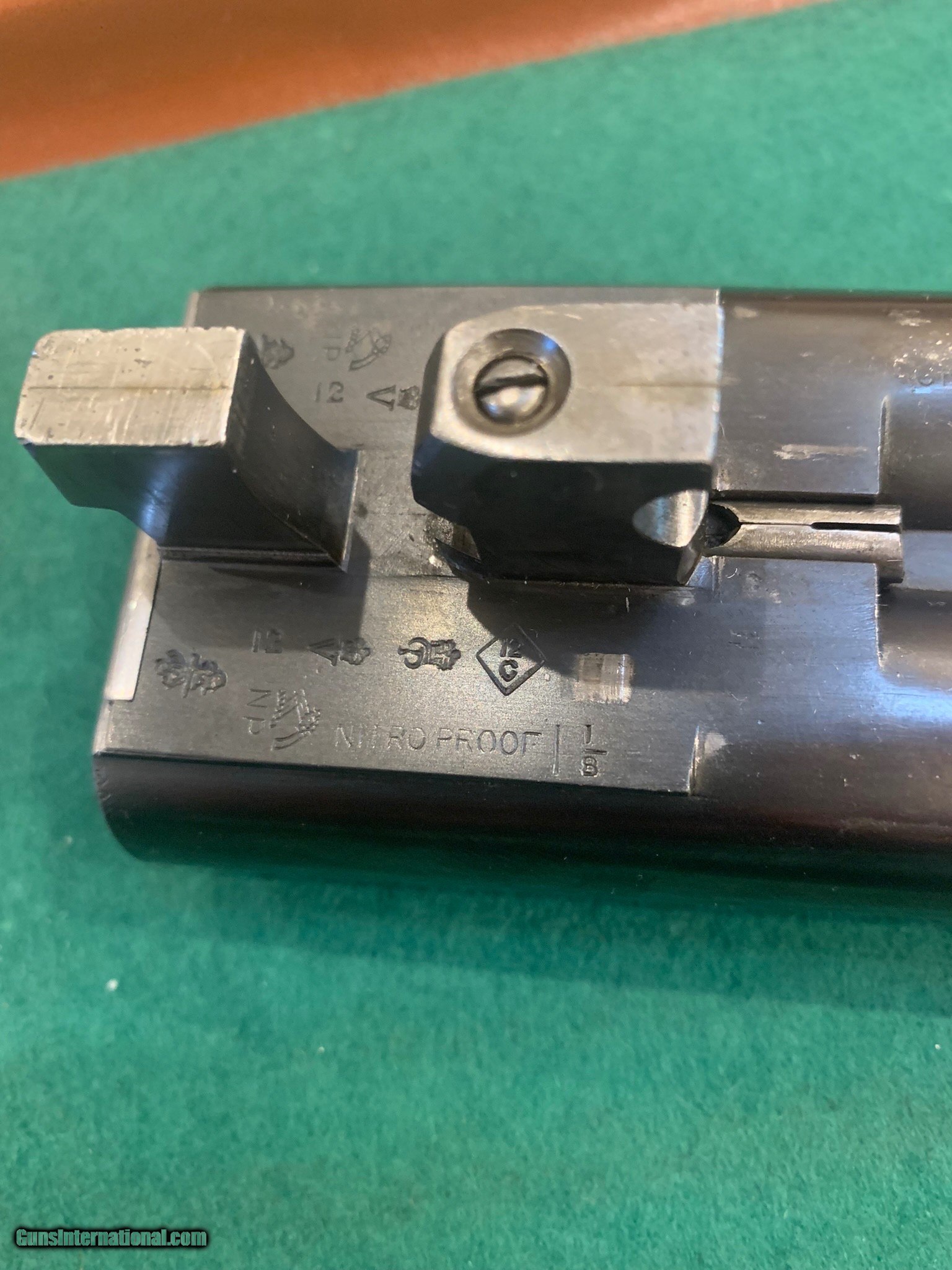 Description: Excellent in the case 12 gauge gun from 1907, 28" barrels choked IC and Mod, weighs 6 lb 4 oz., lop is 14.5", self opener, top of barrels- J Purdey and Sons. Audrey house. South AudleyStreet. London. Other barrel, Made of Sir Joseph Whiteorths Fluid Pressed Steel, nitro proofed 1 1/8, checkered butt, broken front bead, round knob, marble cake wood, stunning grain, bores are excellent, two triggers, ejectors, a wonderful very lightly used gun, some light handling marks, This gun was sent back to London in 2005 and was fully restored to be gifted as a retirement present. Certified funds shipped to an ffl only for actual cost. SOLD Shotgun Gauge: 12 Gauge |