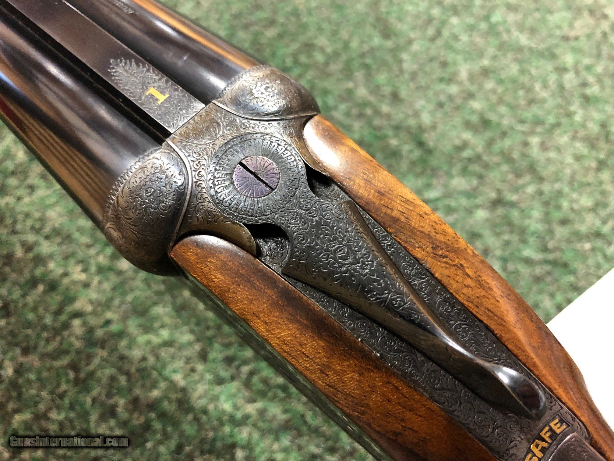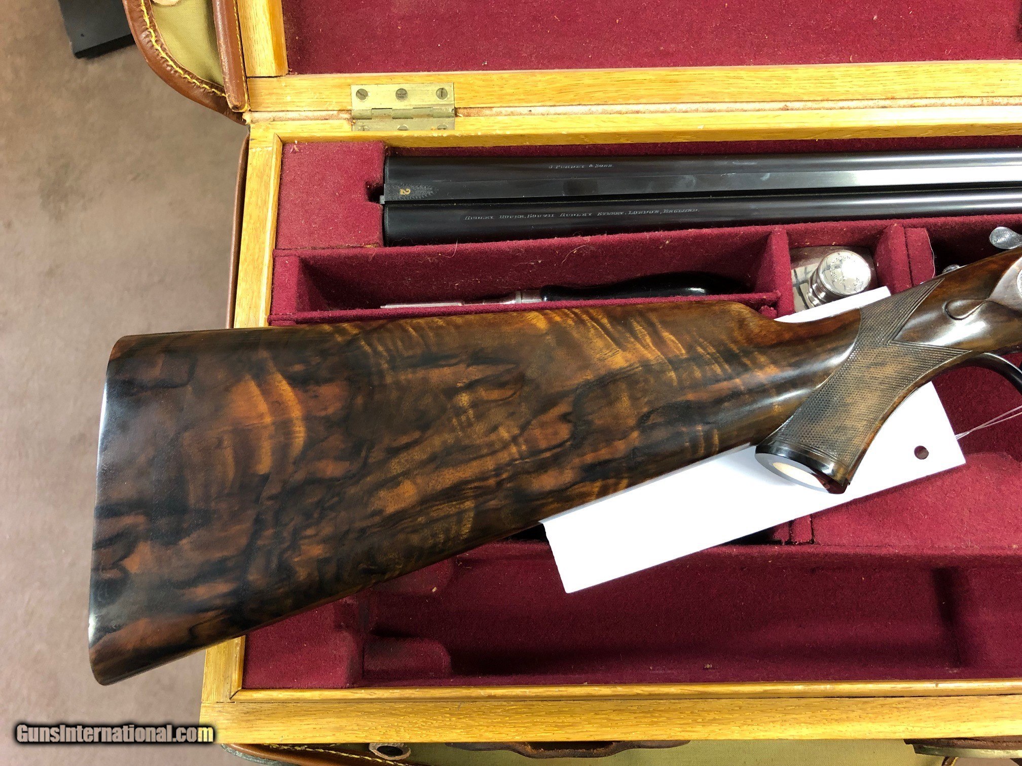 Description: SOLD Manufacturer: J.Purdey & Sons Model: Best Serial Number: 26337 Bore: 20bore Chambers: 2 3/4 Ejectors: Yes Condition: Good Metal Condition: Lots of case colour hardening Wood Condition: Very good Bore Condition: clean Barrels: 29" & 27". Original spec Barrel Type: Chopperlump Action: Side clipped fences Triggers: one Stock: It has been restocked with a highly figured piece Stock Drop: 1 3/8 & 1 3/4 Stock Cast: 1/4" Heel LOP: 14 5/8 Rib: Raised smooth Weight: 6lbs 12ozs Manufacture Date: May 1952 Chokes: Fixed Choke Left: 29" 3/4 & 27" Teagued Choke Right: 29" 3/4 & 27" Teagued Extras: Horn grip cap with gold oval Case: Oak & leather for both sets of barrels Item Location: Berkshire, UK |