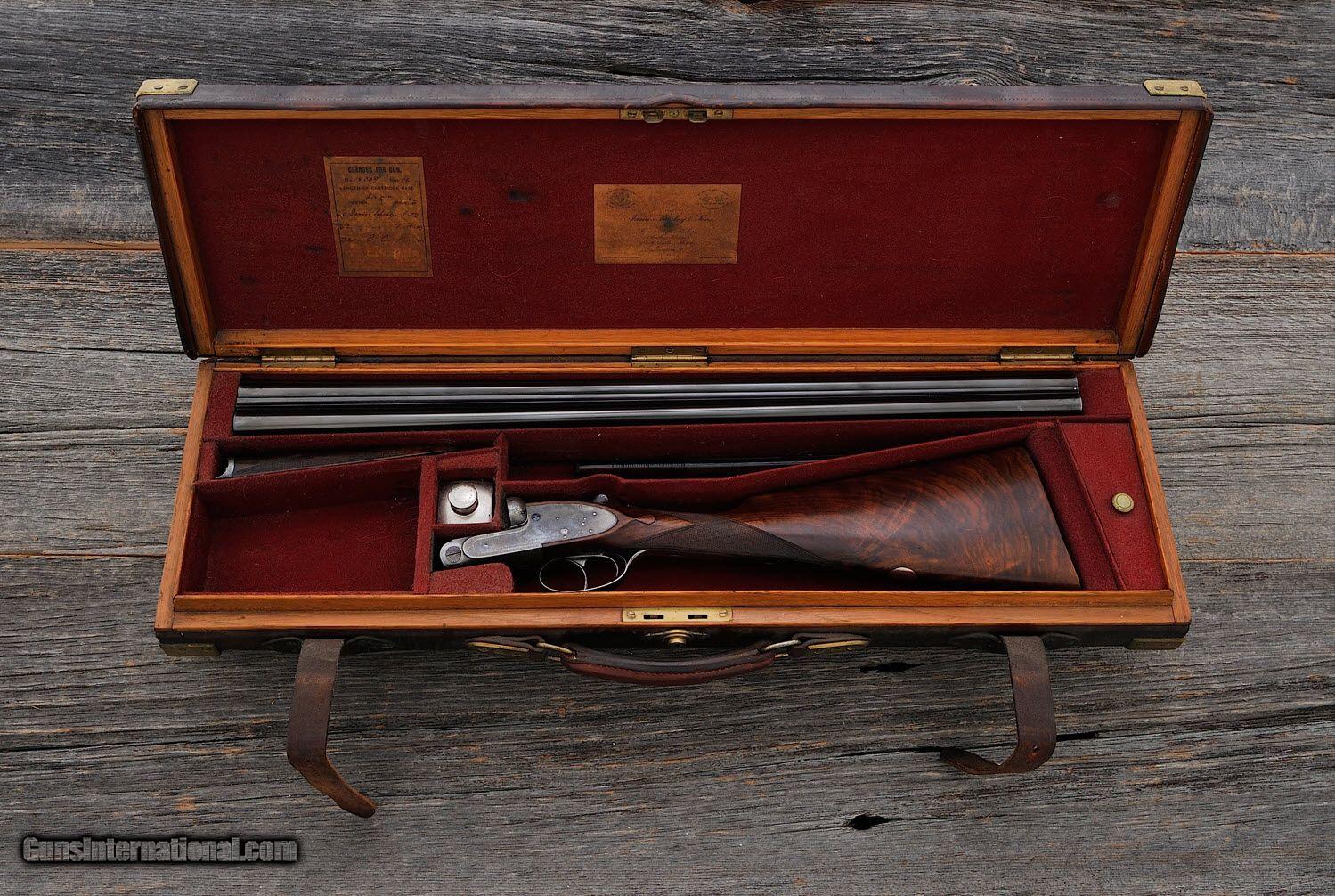 Description: J. Purdey & Sons - Best - 12 ga - Item Number: PUR18039 Shotgun type: SxS Action: Sidelock Ejectors: Yes Trigger: Double Grip: Straight Grip Forend: Checkered Lop: 14 1/2 " Type of butt: Checkered Wood Drop comb: 1 3/8 " Drop heel: 1 3/4 " Cast amount: 1/8 " Cast: Off Weight: 6 lbs, 10 oz Manufactured in: England Manufacture Year: 1903 Finish: Case Colored Overall condition: Good Stock condition: Good Metal condition: Good Stock: Original finish Metal: Original finish Type of Case: Oak & Leather Extra barrels: 0 Barrel info: Gauge: 12 ga Chamber: 2 3/4 " Length: 27 " Chokes: IC/M Rib type: Concave Comments : "Ideal example of a "Project Gun" and an opportunity to bring this James Purdey & Son Game Gun back to its former glory. Sold without warranty, it is loose on face". SG-75 SOLD |